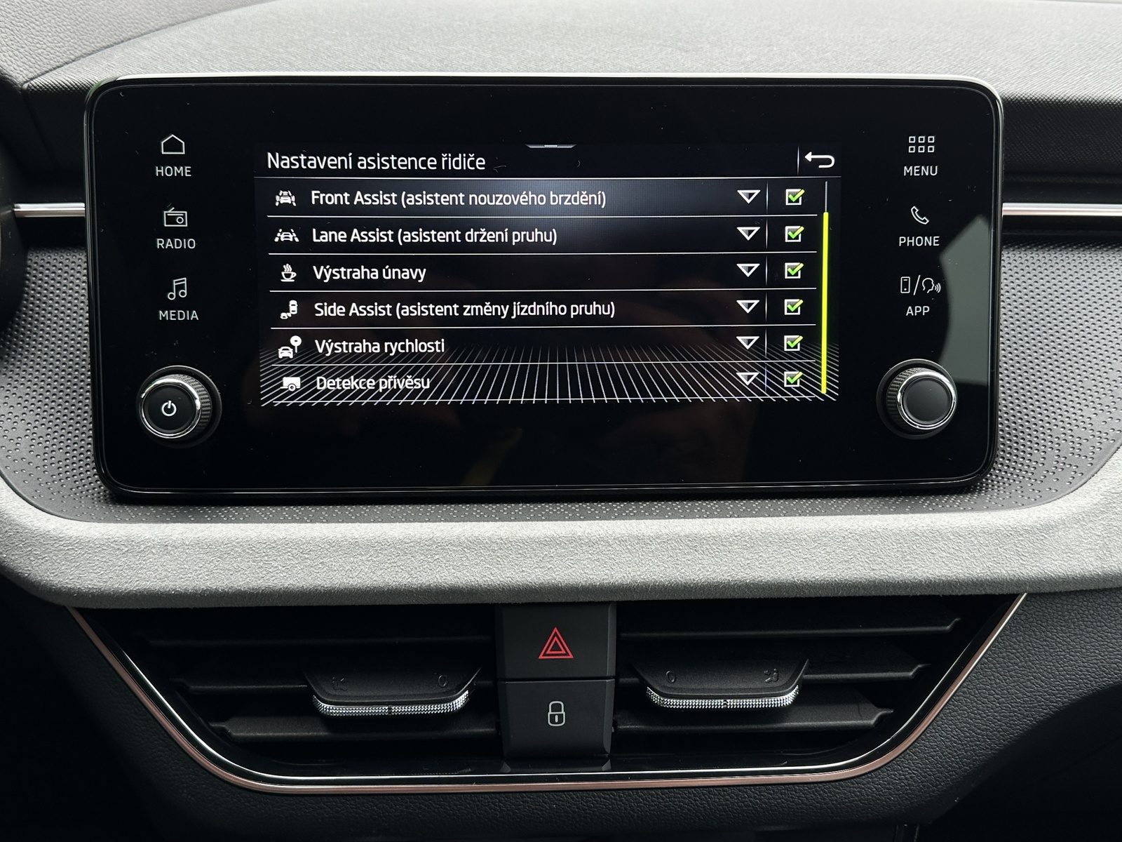 ABS, adaptivní tempomat, airbag, alarm, Ambientní LED osvětlení interiéru, Android Auto, Apple Car Play, Asistent pro odbočování, Asistent pro vedení vozu v jízdních pruzích, asistent rozjezdu do kopce, Asistent změny jízdního pruhu, automatická klimatizace, automatická převodovka, automatické svícení, autorádio, Bezdrátová nabíječka mobilních telefonů (Qi), bezklíčkové ovládání, bluetooth, centrální zamykání, dálkové centrální zamykání, deaktivace airbagu spolujezdce, dělená zadní sedadla, Denní svícení, Digitální příjem rádia (DAB), Digitální přístrojová deska, dvouzónová klimatizace, Elektrické dovírání zavazadlového prostoru, Elektrické tažné zařízení, Elektrochromatické vnitřní zpětné zrcátko, el. ovládání oken, el. ovládání zrcátek, el. ovládaný kufr, el. sklopná zrcátka, el. startér, ESP, hlídání mrtvého úhlu, imobilizér, isofix, LED denní svícení, LED světlomety plnohodnotné, litá kola, Malý kožený paket, mlhovky, Mobilní připojení, multifunkční volant, Multimediální systém bez navigace, nastavitelná sedadla, nastavitelný volant, nouzové brždění, originál autorádio, Originální autorádio, Pádla řazení na volantu, palubní počítač, parkovací kamera, parkovací senzory, Parkovací senzory přední, Parkovací senzory zadní, podélný posuv sedadel, posilovač řízení, protiprokluzový systém kol (ASR), Přístrojová deska s barevným displejem, rádio, Rozpoznávání dopravních značek, senzor stěračů, sledování jízdního pruhu, sledování únavy řidiče, Start/Stop systém, Systém nouzového zastavení, tažné zařízení, tempomat, tónovaná skla, USB, venkovní teploměr, Volba jízdního režimu, vyhřívaná sedadla, vyhřívaná zrcátka, vyhřívané čelní sklo, Vyhřívané trysky ostřikovačů skla, vyhřívaný volant, výsuvné opěrky hlav, výškově nastavitelná sedadla, výškově nastavitelné sedadlo řidiče, Zadní loketní opěrka, zadní stěrač, záruka, Zatmavená zadní skla, 6 x airbag