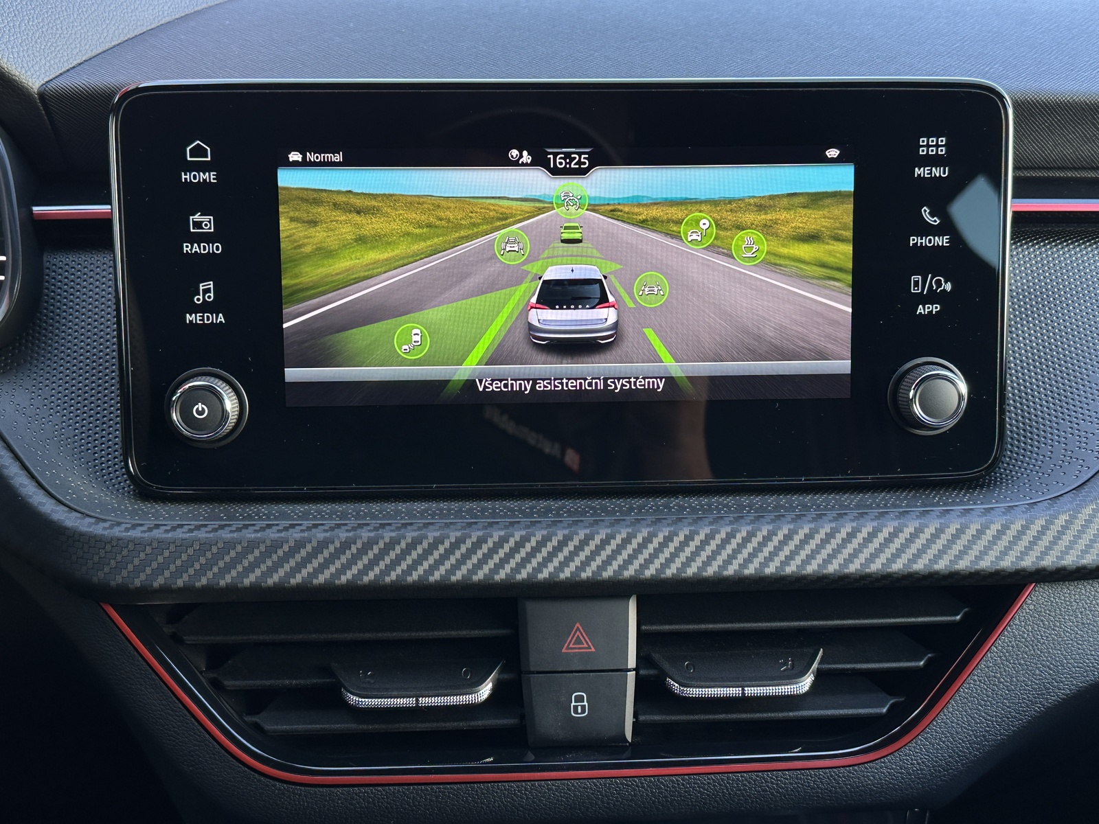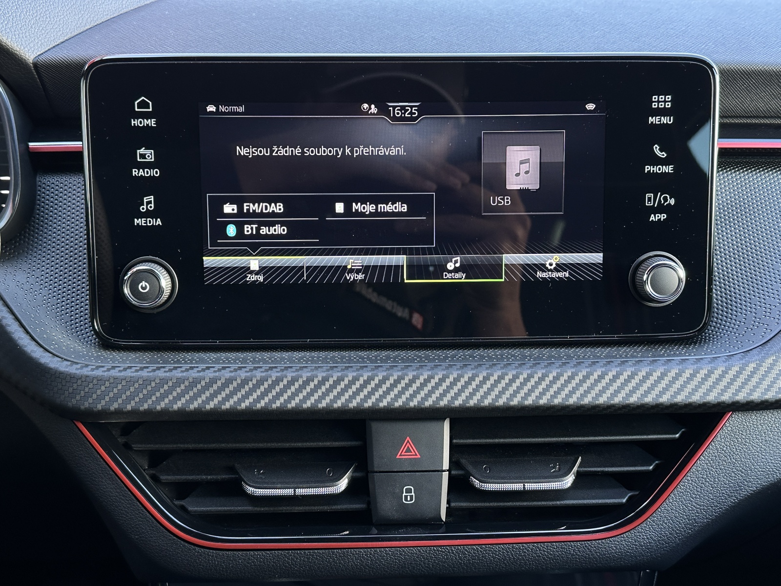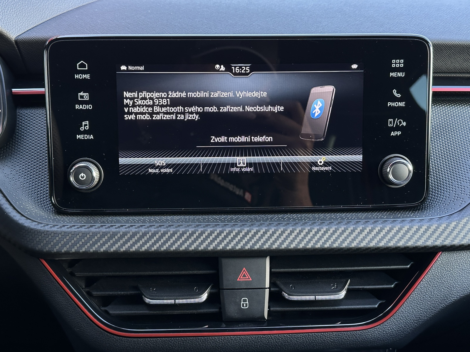 93/11208 Škoda Scala Monte Carlo 1.0TSi 85kW/116PS, 6st. Manuální převodovka, Tovární záruka Škoda Auto 5let nebo 100.000km, Výbava vozu: Paket City PREMIUM - (Zadní parkovací kamera, Parkovací senzory vpředu - PDC, KESSY s Alarmem - bezklíčové zamykání a startování včetně Alarmu, Volba jízdních režimů, Virtuální pedál - otevírání víka kufru pohybem nohy pod zavazadlovým prostorem, Virtual Cockpit, Automatické parkování - Park Assist), Asistovaná jízda 1.5 PLUS - (Adaptivní tempomat - ACC, Adaptivní vedení v jízdním pruhu - Lane Assist+, Hlídání mrtvého úhlu - Side Assist), Vyhřívané čelní sklo, Ocelové rezervní kolo, Kola z lehkých slitin ALU Škoda "URSA" 7Jx18" Černá/Leštěná, Matrix-LED přední světlomety, Panoramatická střecha, Interiér – sportovní Monte Carlo s černou stropnicí, Černě lakované doplňky karoserie, LED zadní světla s animovanými směrovkami, Vyhřívaný sportovní multifunkční kožený volant – pro DSG s pádly pod volantem, Sportovní kryty pedálů, Dekorativní prahové lišty, KESSY – bezklíčové odemykání a startování, Volba jízdních režimů, Zadní parkovací kamera, Parkovací senzory vpředu a vzadu – PDC, Mlhové světlomety, Elektricky sklopná vnější zrcátka s automatickým stmíváním, 2x USB-C vzadu, Dešťový senzor, Světelný senzor, Vnitřní zpětné zrcátko s automatickým stmíváním, Bezdrátové nabíjení pro Smartphone, Zadní loketní opěrka, Loketní opěrka s Jumbo Boxem vpředu, Dvouzónová automatická klimatizace Climatronic, Vyhřívaná přední sedadla, Bederní opěrky na předních sedadlech, Výškově nastavitelná sedadla řidiče a spolujezdce, Kožená hlavice řadicí páky a madlo ruční brzdy, Vyhřívané trysky ostřikovačů, Ukazatel hladiny kapaliny do ostřikovačů, Elektrické ovládání oken vpředu i vzadu, 12V zásuvka vpředu a vzadu, 2x USB-C, 8 reproduktorů, Infotainment Media 8" – Bluetooth, 4 reproduktory, DAB, Bezdrátový SmartLink, Front Assist – varování a brzdění při hrozící kolizi s vozidly, chodci a cyklisty, Rozpoznávání dopravních značek, Upozornění na únavu řidiče, Asistent rozjezdu do kopce, Virtual Cockpit , 6x airbag, 3x Isofix a Top Tether, Deaktivace airbagu spolujezdce, Nouzový volání SOS eCall+, Potah sedadel – látka, Sunset – zatmavená zadní okna, Servisní kniha + dokumentace Škoda Auto, Možnost odpočtu DPH 21%, Skladem - ihned k odběru.
