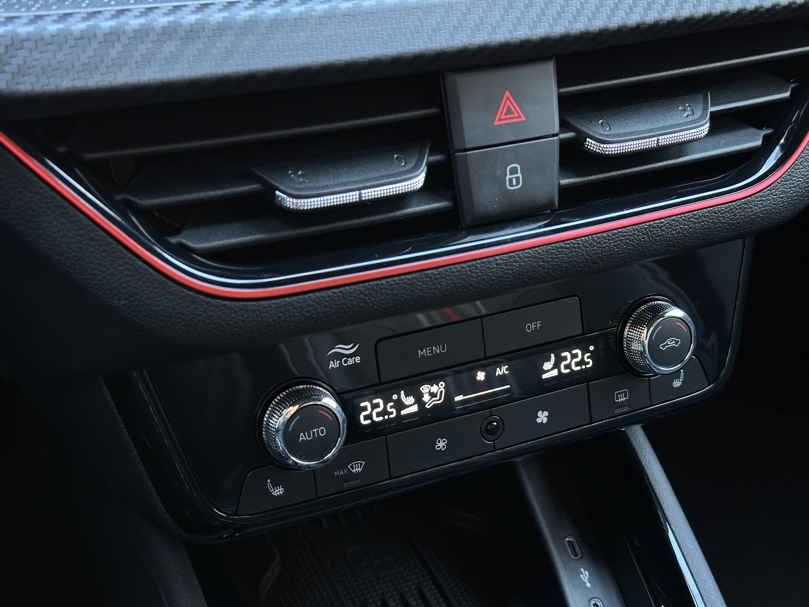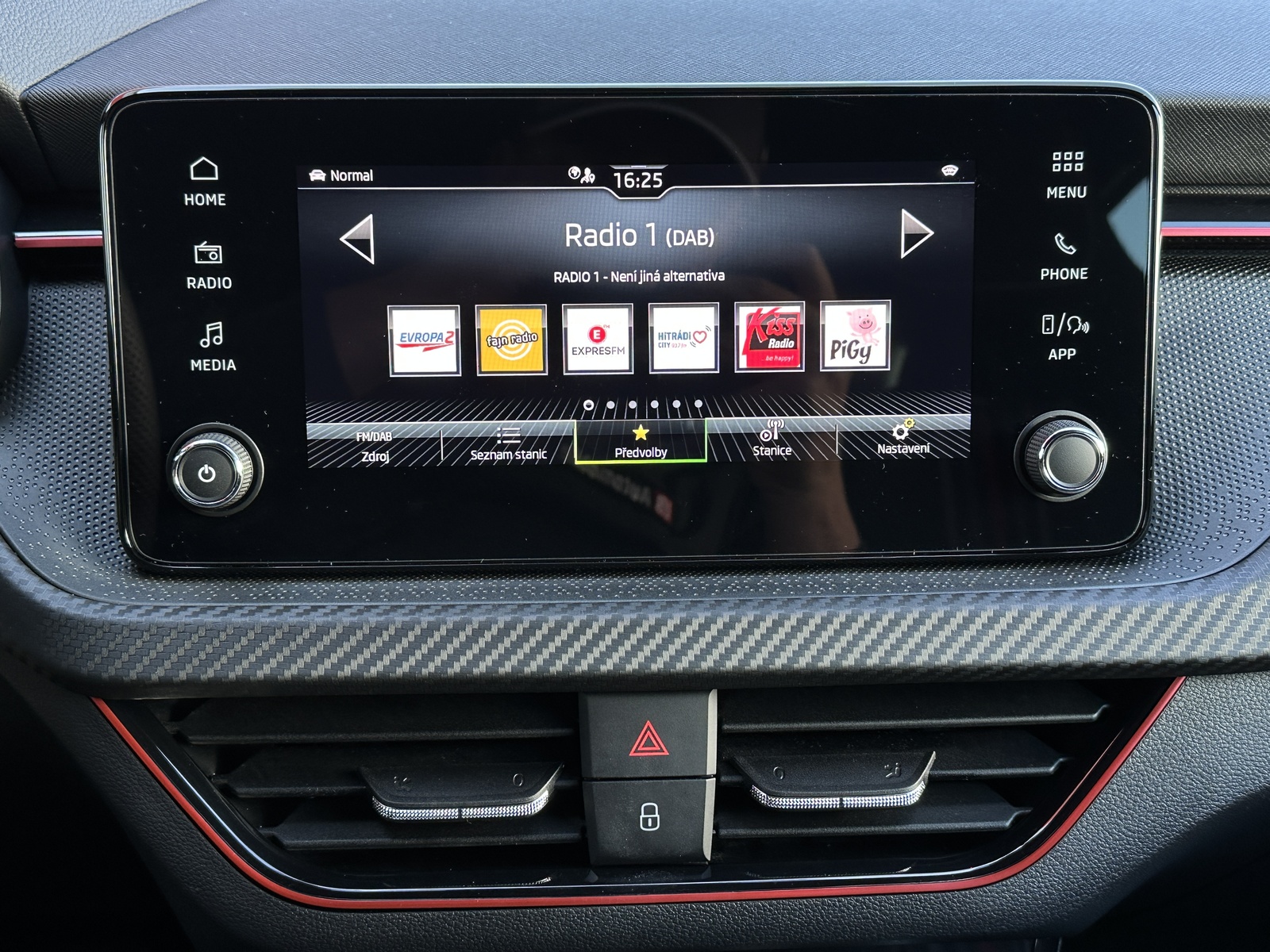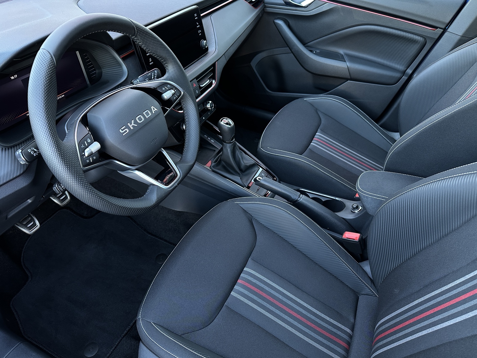 93/11208 Škoda Scala Monte Carlo 1.0TSi 85kW/116PS, 6st. Manuální převodovka, Tovární záruka Škoda Auto 5let nebo 100.000km, Výbava vozu: Paket City PREMIUM - (Zadní parkovací kamera, Parkovací senzory vpředu - PDC, KESSY s Alarmem - bezklíčové zamykání a startování včetně Alarmu, Volba jízdních režimů, Virtuální pedál - otevírání víka kufru pohybem nohy pod zavazadlovým prostorem, Virtual Cockpit, Automatické parkování - Park Assist), Asistovaná jízda 1.5 PLUS - (Adaptivní tempomat - ACC, Adaptivní vedení v jízdním pruhu - Lane Assist+, Hlídání mrtvého úhlu - Side Assist), Vyhřívané čelní sklo, Ocelové rezervní kolo, Kola z lehkých slitin ALU Škoda "URSA" 7Jx18" Černá/Leštěná, Matrix-LED přední světlomety, Panoramatická střecha, Interiér – sportovní Monte Carlo s černou stropnicí, Černě lakované doplňky karoserie, LED zadní světla s animovanými směrovkami, Vyhřívaný sportovní multifunkční kožený volant – pro DSG s pádly pod volantem, Sportovní kryty pedálů, Dekorativní prahové lišty, KESSY – bezklíčové odemykání a startování, Volba jízdních režimů, Zadní parkovací kamera, Parkovací senzory vpředu a vzadu – PDC, Mlhové světlomety, Elektricky sklopná vnější zrcátka s automatickým stmíváním, 2x USB-C vzadu, Dešťový senzor, Světelný senzor, Vnitřní zpětné zrcátko s automatickým stmíváním, Bezdrátové nabíjení pro Smartphone, Zadní loketní opěrka, Loketní opěrka s Jumbo Boxem vpředu, Dvouzónová automatická klimatizace Climatronic, Vyhřívaná přední sedadla, Bederní opěrky na předních sedadlech, Výškově nastavitelná sedadla řidiče a spolujezdce, Kožená hlavice řadicí páky a madlo ruční brzdy, Vyhřívané trysky ostřikovačů, Ukazatel hladiny kapaliny do ostřikovačů, Elektrické ovládání oken vpředu i vzadu, 12V zásuvka vpředu a vzadu, 2x USB-C, 8 reproduktorů, Infotainment Media 8" – Bluetooth, 4 reproduktory, DAB, Bezdrátový SmartLink, Front Assist – varování a brzdění při hrozící kolizi s vozidly, chodci a cyklisty, Rozpoznávání dopravních značek, Upozornění na únavu řidiče, Asistent rozjezdu do kopce, Virtual Cockpit , 6x airbag, 3x Isofix a Top Tether, Deaktivace airbagu spolujezdce, Nouzový volání SOS eCall+, Potah sedadel – látka, Sunset – zatmavená zadní okna, Servisní kniha + dokumentace Škoda Auto, Možnost odpočtu DPH 21%, Skladem - ihned k odběru.
