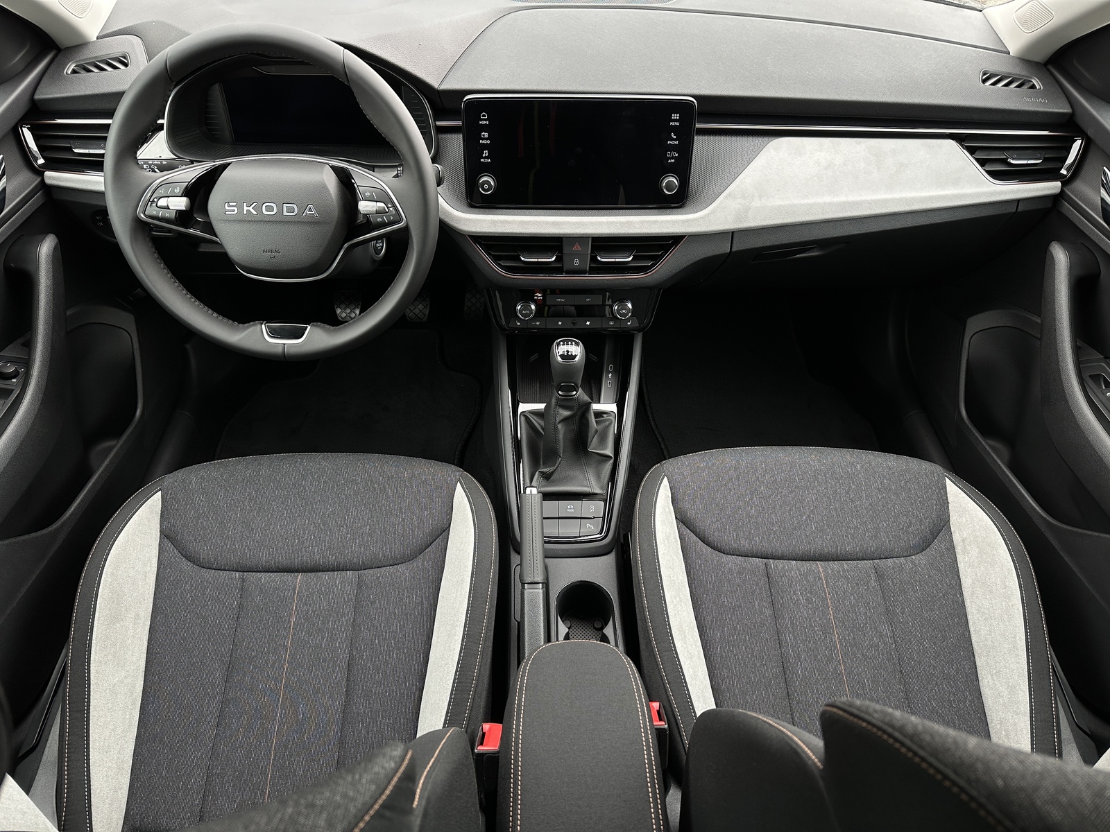 217/11214 Škoda Scala Premium 1.0TSi 85kW/116PS, 6st. Manuální převodovka, Tovární záruka Škoda Auto 5let/100.000km, Výbava vozu: Vyhřívané čelní sklo, Dvojitá podlaha v zavazadlovém prostoru, Kola z lehkých slitin ALU Škoda "VEGA AERO" 7Jx18 Černá/Leštěná, Parkovací kamera vzadu, Parkovací senzory vpředu i vzadu - PDC P/Z, Asistent hlídání mrtvého úhlu - Side Assist, Asistent udržování v jízdním pruhu - Lane Assist, Asistent varování a brzdění při hrozící kolizi s vozidly, chodci a cyklisty - Front Assist, Asistent rozpoznání únavy řidiče, Asistent rozjezdu do kopce, Rozpoznávání dopravních značek, Systém Start/Stop, Volba jízdního režimu, Bezklíčové zamykání a startování - KESSY, Tempomat s omezovačem rychlosti, Vyhřívaný multifunkční kožený volant pro DSG s pádly pod volantem - Výškově a podélně nastavitelný, Startování tlačítkem, Hlavice řadicí páky a madlo ruční brzdy z kůže, Bederní opěrky na předních sedadlech, Výškově nastavitelné sedadlo řidiče a spolujezdce, Dvouzónová automatická klimatizace - Climatronic, Vyhřívaná přední sedadla s oddělenou regulací, Loketní opěrka s Jumbo Boxem, Zadní loketní opěrka, Potah sedadel - Látka, Vnitřní zpětné zrcátko s automatickým stmíváním, Elektrické ovládání oken vpředu i vzadu, Zatmavená zadní okna - Sunset, Vnější zpětná zrcátka elektricky sklopná, nastavitelná a vyhřívaná s automatickým stmíváním na straně řidiče, Virtuální Cockpit 10", Infotainment, Bezdrátový Smartlink, Bluetooth, DAB, 8x Reproduktor, Bezdrátové nabíjení telefonu s chlazením, 2x USB-C a 12V zásuvka vpředu a v zavazadlovém prostoru, Ambientní LED osvětlení interiéru, LED přední světlomety, LED denní svícení, Top-LED zadní světlomety s animovanými ukazateli směru jízdy, Mlhové světlomety s přisvicováním do zatáčky, Světelný senzor, Dešťový senzor, Virtuální pedál - Otevírání víka kufru pohybem nohy pod zavazadlovým prostorem, Sada na opravu pneumatik, 3x Isofix a Top Tether, ABS, ESP, 6x Airbag, Deaktivace airbagu spolujezdce, Centrální zamykání s dálkovým ovládáním, Alarm, Nouzové volání SOS - eCall, Zatížení bržděného tažného zařízení - 1200kg, Zatížení nebržděného tažného zařízení - 600kg, Nový vůz ČR, Servisní kniha + dokumentace Škoda Auto, Možnost odpočtu DPH 21%, Skladem - ihned k odběru.
