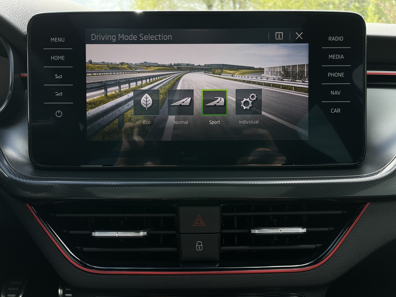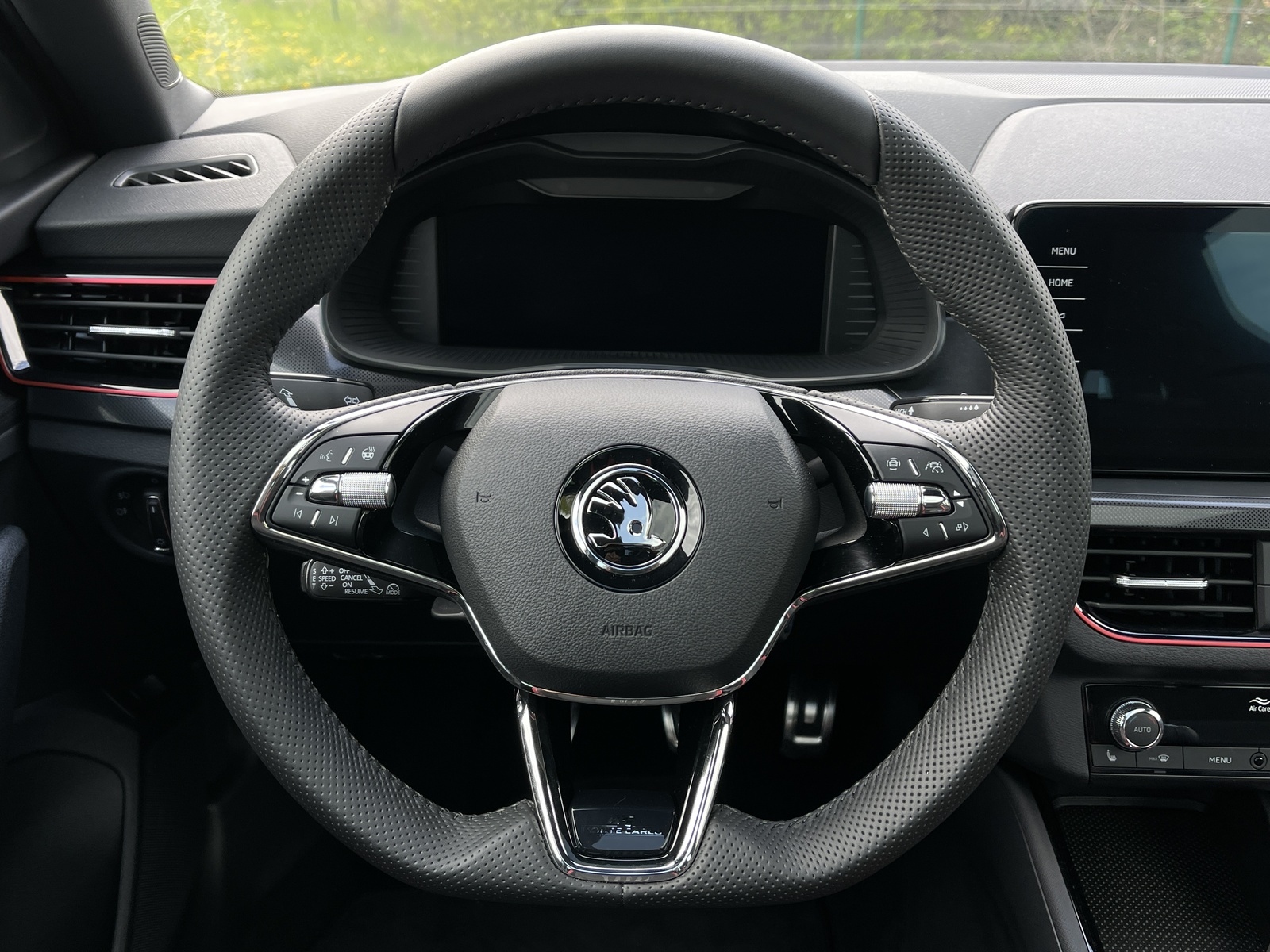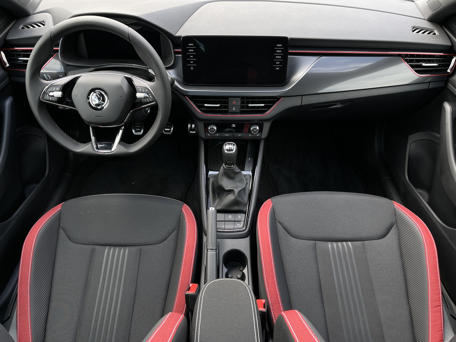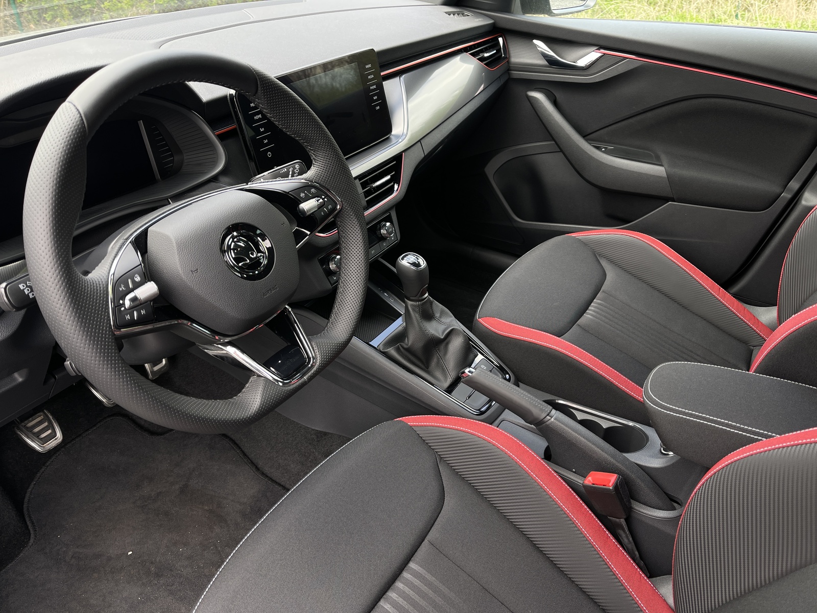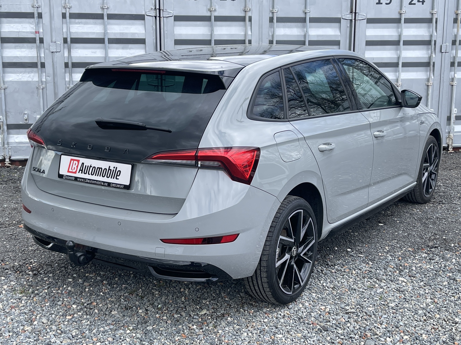 Škoda Scala 1.5TSi 110kW/150PS Monte Carlo, 6st. Manuální převodovka, Záruka na vozidlo 5let/100.000km od uvedení do provozu, Nadstandardní výbava: Paket Monte Carlo - (Sportovní multifunkční kožený volant, Parkovací senzory vpředu a vzadu, Parkovací kamera vzadu, Volba jízdního režimu, KESSY - bezklíčové odemykání a startování, Bi LED přední světlomety + Top LED zadní světla s animovaným ukazatelem směru), Paket Travel Assist s Navigací - ( Infotainment Amundsen 9,2" s navigací, digitální asistentka Laura, virtuální cockpit, adaptivní vedení v jízdním pruhu, rozpoznávání dopravních značek, adaptivní tempomat, vyhřívání volantu ) Paket komfort - (Adaptivní tempomat, Elektricky ovládané víko zavazadlového prostoru, Vyhřívání volantu, Středová loketní opěra vzadu), Paket Simply Clever - (Přihrádky pod předními sedadly, ochrana hran bočních dveří, zásuvka na 12V v zavazadlovém prostoru), Další nadstandardní výbava: Vyhřívané čelní sklo, Bezdrátový SmartLink, Rezervní kolo, Alu Kola "VEGA" 18" Monte Carlo Design, Tažné zařízení sklopné - elektricky odjistitelné, Dekor interiéru Black Dots s červeným orámováním, Asistent dálkových světel s dešťovým senzorem, Ambientní osvětlení interiéru - červené