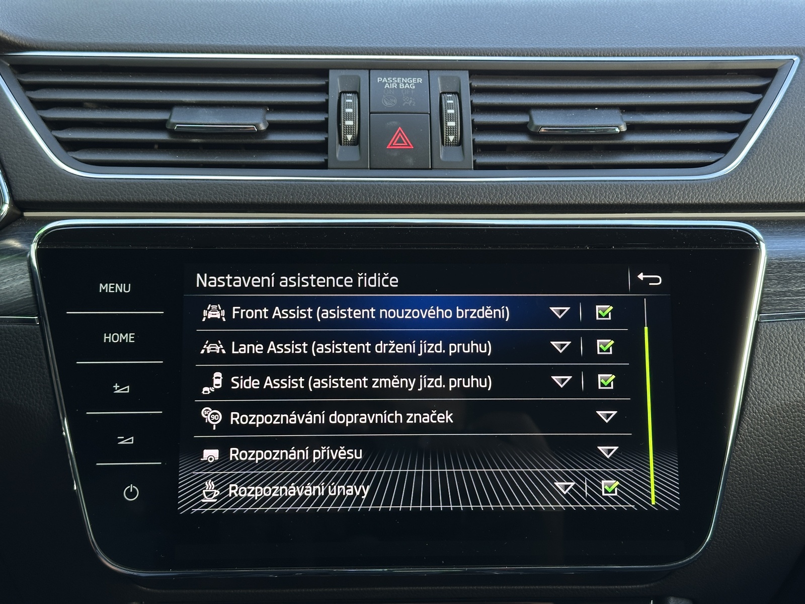 ABS, Adaptivní regulace podvozku, adaptivní tempomat, airbag, Ambientní LED osvětlení interiéru, Android Auto, Apple Car Play, Asistent pro jízdu v koloně, Asistent pro odbočování, Asistent pro vedení vozu v jízdních pruzích, asistent rozjezdu do kopce, Asistent udržování odstupu, Asistent změny jízdního pruhu, automatická klimatizace, automatická převodovka, Automatické přepínání dálkových světel, automatické svícení, autorádio, Bezdrátová nabíječka mobilních telefonů (Qi), bezklíčkové ovládání, bluetooth, centrální zamykání, dálkové centrální zamykání, deaktivace airbagu spolujezdce, dělená zadní sedadla, Denní svícení, Digitální příjem rádia (DAB), Digitální přístrojová deska, Dotykové ovládání palubního počítače, Elektrické dovírání zavazadlového prostoru, Elektrické tažné zařízení, Elektrochromatické vnitřní zpětné zrcátko, el. ovládání oken, el. ovládání zrcátek, el. ovládaný kufr, El. parkovací brzda, el. seřiditelná sedadla, El. seřiditelné sedadlo řidiče, el. sklopná zrcátka, el. startér, ESP, Hlasové ovládání palubního počítače, hlídání mrtvého úhlu, imobilizér, isofix, LED denní svícení, LED světlomety plnohodnotné, litá kola, Malý kožený paket, mlhovky, Mobilní připojení, multifunkční volant, nastavitelná sedadla, nastavitelný volant, natáčecí světlomety, navigační systém, nouzové brždění, originál autorádio, Originální autorádio, ostřikovače světlometů, Pádla řazení na volantu, palubní počítač, Pamět nastavení sedadla řidiče, parkovací asistent, parkovací kamera, parkovací senzory, Parkovací senzory přední, Parkovací senzory zadní, podélný posuv sedadel, posilovač řízení, protiprokluzový systém kol (ASR), Přístrojová deska s barevným displejem, rádio, regulace tuhosti podvozku, rezervní kolo, Rozpoznávání dopravních značek, satelitní navigace, senzor stěračů, senzor tlaku v pneumatikách, sledování jízdního pruhu, sledování únavy řidiče, Start/Stop systém, střešní nosič, Systém nouzového zastavení, tažné zařízení, tempomat, tónovaná skla, USB, venkovní teploměr, Volba jízdního režimu, vyhřívaná sedadla, Vyhřívaná zadní sedadla, vyhřívaná zrcátka, vyhřívané čelní sklo, Vyhřívané trysky ostřikovačů skla, vyhřívaný volant, výsuvné opěrky hlav, výškově nastavitelná sedadla, výškově nastavitelné sedadlo řidiče, Zadní loketní opěrka, zadní stěrač, záruka, Zatmavená zadní skla, 8 x airbag
