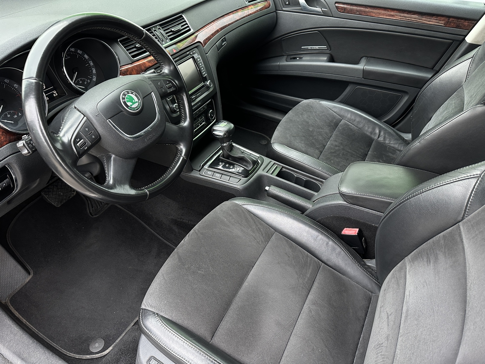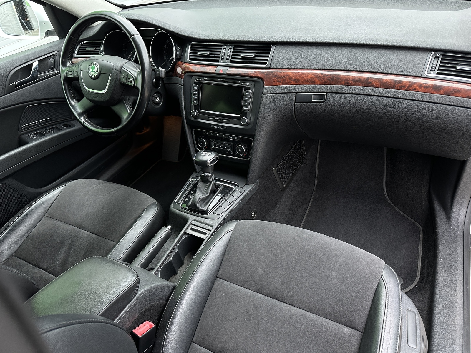 48/10996 Škoda Superb 2.0TDi 4x4 DSG Elegance 103kW/140PS, 6st. Automatická převodovka DSG, Pohon všech kol 4x4, Výbava vozu: Potah sedadel – Alcantara/Kůže, Elektrické nastavení sedadel pro obě přední sedadla s bederními opěrkami, sedadlo řidiče s pamětí, Vyhřívání předních a zadních sedadel, Vyhřívané čelní sklo, Navigační systém Columbus, Sound systém Škoda, Xenonové hlavní světlomety s automatickou regulací pro jízdu do zatáčky, Asistenční světlo s funkcí Coming Home, Kola z lehkých slitin ALU Škoda 7,5Jx18", Dekorační obložení – dekor dřeva, Sluneční roleta zadního okna a zadních dveří, Sunset – zatmavená zadní okna, Parkovací senzory vpředu a vzadu – PDC, Dvouzónová automatická klimatizace Climatronic, Elektronický program stability – ESP, Alarm, Senzor tlaku v pneumatikách, Vnější zpětná zrcátka s automatickým zatmavováním, elektricky sklopná, nastavitelná a vyhřívaná, El. sklopná vnější zpětná zrcátka, Vnitřní zpětné zrcátko s automatickým zatmavováním, Tempomat, Mlhové světlomety, Ostřikovače předních světlometů, Senzor světla a deště, Vyhřívané ostřikovače čelního skla, Multifunkční volant, Loketní opěrka vpředu, Zadní loketní opěrka, Hlavice řadicí páky a madlo ruční brzdy z kůže, Palubní počítač, Dálkové centrální zamykání, Isofix, Bluetooth, MP3, CD, SD, AUX, Rezervní ocelové kolo, Skladem - ihned k odběru.