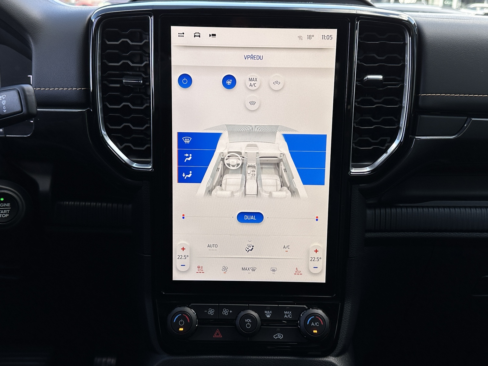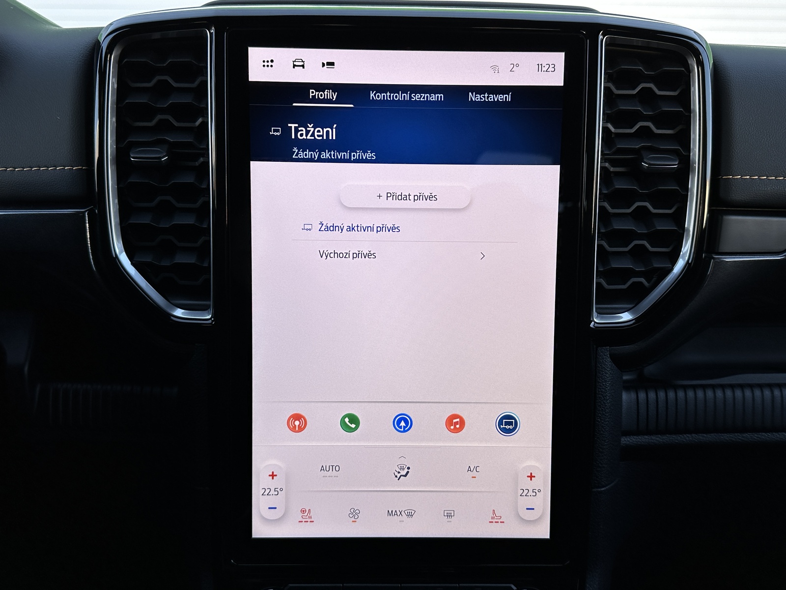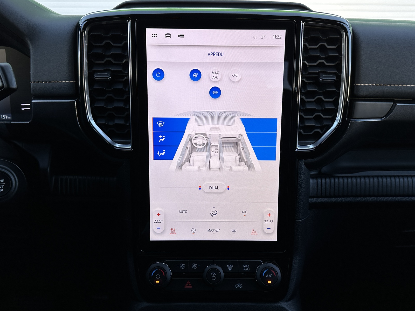 138/10845 Ford Ranger Double Cab Wildtrak 2.0EcoBlue Bi-Turbo 151kW/205PS, 10st. Automatická převodovka, Pohon všech kol 4x4, Tovární záruka Ford Protect 4roky/200.000km, Výbava vozu: Sada Technology Advanced - (360°stupňová kamera s rozděleným obrazem, adaptivní tempomat ACC s inteligentním asistentem rychlosti a funkcí Stop&Go, systém hlídání mrtvého úhlu s optickou signalizací ve vnějších zpětných zrcátkách - BLIS, varování před projíždějícími vozy při couvání z parkovacího místa CTA s aktivním brzděním, systém sledování bdělosti řidiče), Tažné zařízení pevné včetně 13pinové zásuvky - dostupné pouze s automatickou převodovkou, Sada Power Advanced - (podložka bezdrátového nabíjení mobilních telefonů, zásuvka ve 2. řadě a v korbě pro napájení spotřebičů 230 V / 400 W, spínače ovládané zevnitř kabiny pro připojení příslušenství - navijáku nebo světel), Sada Audio 106 - (SYNC 4A s 12" dotykovým displejem a konverzačním rozpoznáváním hlasu, navigační systém s online cloudovým připojením, rozšířený o aktuální informace o dopravě a bodech zájmů (předplatné Connected Nav je 1 rok od počátku záruky vozu), bezdrátové připojení Android Auto nebo Apple CarPlay, 10 prémiových reproduktorů B&O, příjem DAB - rozhlasové digitální vysílání), Elektrické ovládání zadních oken jedním stiskem, Elektricky ovládaný rolovací kryt hliníkový ve stříbrném provedení, 8x Airbag, Možnost deaktivace airbagu spolujezdce, ISOFIX i-Size ve druhé řadě sedadel pro Double Cab, Elektronický stabilizační systém ESP včetně protiblokovacího systému ABS, Asistent pro rozjezd do kopce a sjezd z kopce, Funkce stabilizace přívěsu, Varování při nouzovém brzdění, Elektronická automatická uzávěrka zadního diferenciálu, Asistenční systémy - (adaptivní tempomat ACC, Pre-Collision Assist (PCA) - předkolizní asistent snižuje riziko nehody s chodcem, cyklistou nebo jiným vozem, Automatická aktivace brzd po nárazu - snížení pravděpodobnosti dalších střetů, Funkce rozpoznávání dopravních značek omezujících rychlost, Systém udržování v jízdním pruhu, Asistent vyhýbacího manévru), Zadní parkovací kamera, Zadní parkovací senzory s funkcí brzdění při couvání, Přední parkovací senzory, Sada Winter - (vyhřívaná přední sedadla, vyhřívaný volant obštý vinylem), FordPass Connect - (vestavěný modem s připojením 4G/LTE, vzdálené ovládání vozidla pomocí mobilní aplikace FordPass, online aktualizace softwaru vozidla OTA včetně mapových podkladů - pouze v kombinaci s vestavěným navigačním systémem, možnost rozšířené konektivity díky předplatným FordPass - např. služba pomoci při odcizení vozidla Ford Secure, dopravní informace Local Hazard Information a další, eCall - tlačítko SOS pro automatické i vyžádané nouzové volání), 8" digitální přístrojový panel, Automatická dvouzónová klimatizace s výdechy pro druhou řadu pro Double Cab, Sektorové osvětlení 360 - 4 zóny okolo vozu, Sada Off-Road Security - (Off-Road asistence řidiče na obrazovce SYNC 4A - kromě XL a XLT, ochrana pod motorem a rozvodovkou včetně krytu palivové nádrže, elektronicky ovládaná mechanická uzávěrka diferenciálu zadní nápravy), Terrain Management System - volitelné jízdní režimy, e-4WD - přiřaditelný pohon všech kol manuálně volený (4L/4H), navíc s možností volby stálého pohonu všech kol (4A), Volič automatické převodovky e-Shifter, Elektronická parkovací brzda, Elektrické ovládání předních oken jedním stiskem, Elektrické ovládání zadních oken, Stěrače s dešťovým senzorem včetně akustické fólie čelního skla, Vyhřívané čelní sklo, Vyhřívané zadní sklo, Obvodový alarm s prostorovým senzorem a senzorem náklonu včetně záložní baterie pro napájení klaksonu, Systém KeyFree - vstup do vozu a startování bez použití klíče, Dva sklopné klíče s dálkovým ovládáním centrálního zamykání, Ford Easy Fuel - bezzátkový systém doplňování paliva, Kůže Micro Rib - kombinované čalounění sedadel kůže/vinyl v černé Ebony, Vyhřívaná přední sedadla, Sedadlo řidiče elektricky nastavitelné v 8 směrech, Sedadlo spolujezdce manuálně nastavitelné ve 4 směrech, Středová loketní opěrka pro přední sedadla, Vyhřívaný volant, Hlavice řadicí páky obšitá kůží, Loketní opěrka čalouněná vinylem, Výplně dveří čalouněné vinylem, Stropní konzola se schránkou na brýle a lampičkami na čtení, Čalounění stropu tmavé, Ambientní interiérové osvětlení, Vnitřní zpětné zrcátko s automatickým zatmíváním, USB vpředu a vzadu, 12V zásuvka vpředu a vzadu, Elektronický zámek korby, Osvětlení korby, Vnitřní úchytná oka korby, Podélné ližiny korby, Ochranná vana nákladového prostoru, Wildtrak exteriérová sada - (lakovaná vnější zpětná zrcátka, část předního nárazníku a zadní nárazník v antracitové barvě, lakované kliky dveří v barvě karoserie), Přední lapače nečistot, Zadní lapače nečistot, Schůdek do nákladového prostoru vlevo a vpravo, Střešní podélné ližiny, Aerodynamický ochranný rám za kabinou, Zadní tmavě tónovaná skla Privacy, Elektricky ovládaná, vyhřívaná a sklopná vnější zrcátka s osvětlením nástupního prostoru, Denní svícení, Automatické přepínání dálkových světel, Přední LED světlomety s LED denním svícením, Přední LED mlhové světlomety, Zadní LED světlomety, Systém Stop-Start, Kola z lehkých slitin D2UFA 18" x 7.5" - pneumatiky 255/65 R18 All-season, 18" hliníkové rezervní kolo, Monitoring tlaku v pneumatikách, Nový vůz s registrací, Servisní kniha + dokumentace Ford, Možnost odpočtu DPH 21%, Skladem - ihned k odběru.
