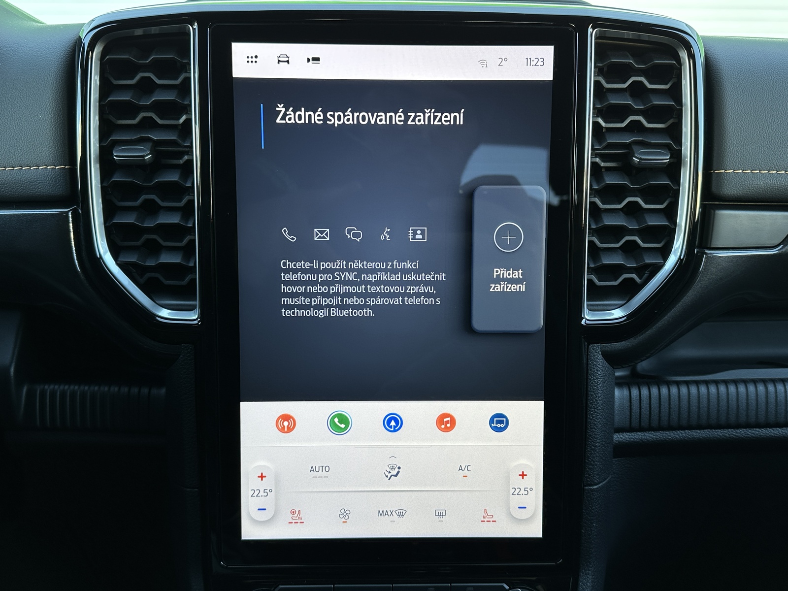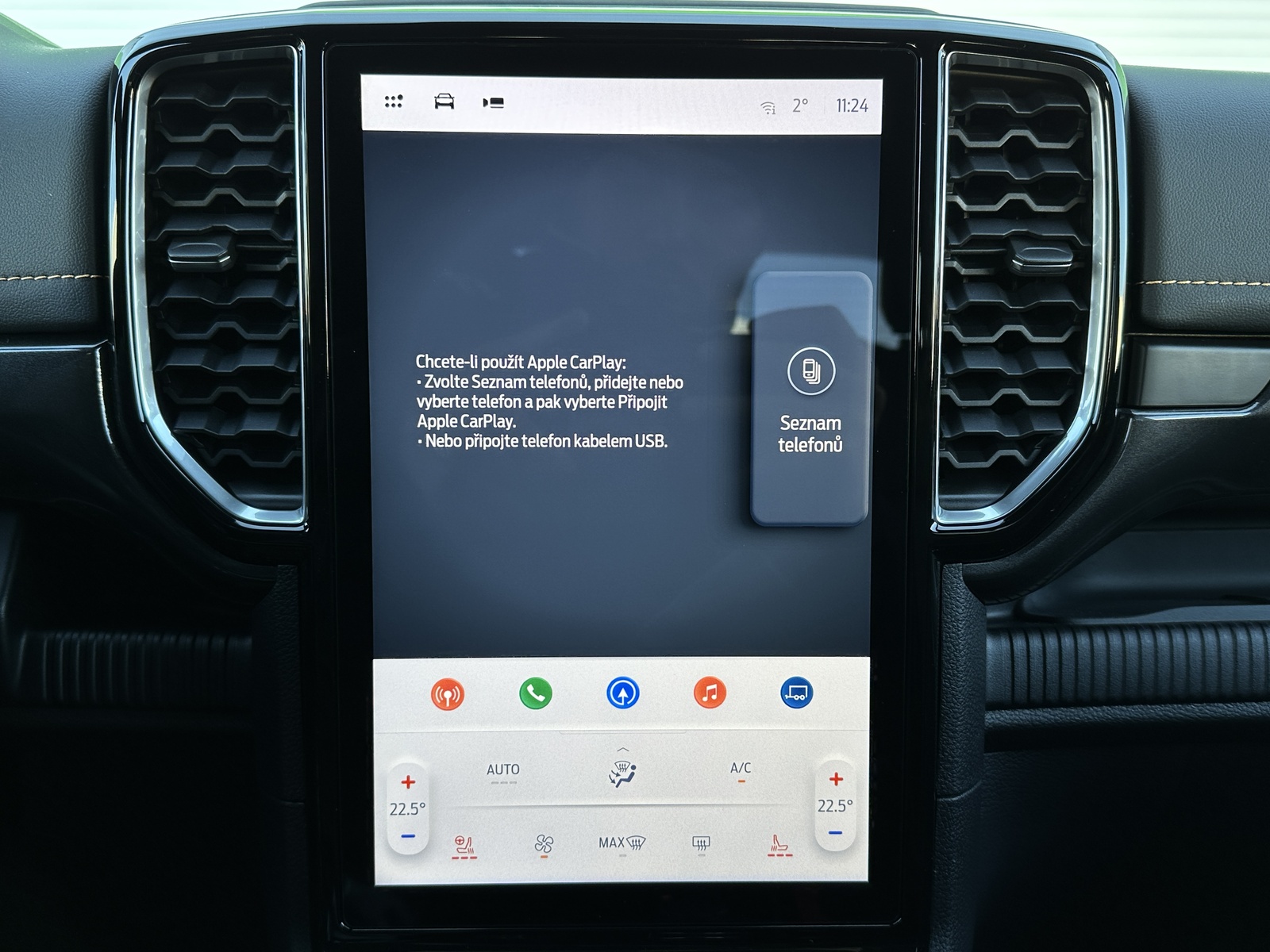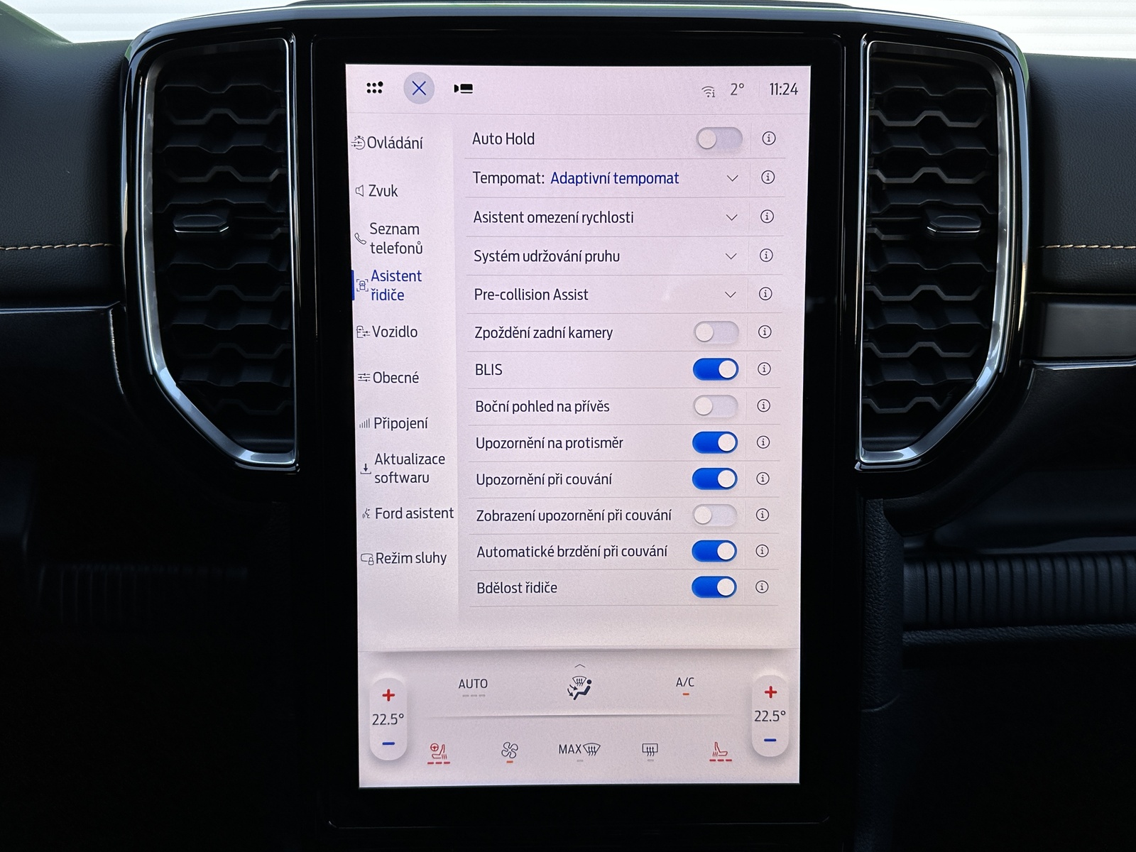 138/10845 Ford Ranger Double Cab Wildtrak 2.0EcoBlue Bi-Turbo 151kW/205PS, 10st. Automatická převodovka, Pohon všech kol 4x4, Tovární záruka Ford Protect 4roky/200.000km, Výbava vozu: Sada Technology Advanced - (360°stupňová kamera s rozděleným obrazem, adaptivní tempomat ACC s inteligentním asistentem rychlosti a funkcí Stop&Go, systém hlídání mrtvého úhlu s optickou signalizací ve vnějších zpětných zrcátkách - BLIS, varování před projíždějícími vozy při couvání z parkovacího místa CTA s aktivním brzděním, systém sledování bdělosti řidiče), Tažné zařízení pevné včetně 13pinové zásuvky - dostupné pouze s automatickou převodovkou, Sada Power Advanced - (podložka bezdrátového nabíjení mobilních telefonů, zásuvka ve 2. řadě a v korbě pro napájení spotřebičů 230 V / 400 W, spínače ovládané zevnitř kabiny pro připojení příslušenství - navijáku nebo světel), Sada Audio 106 - (SYNC 4A s 12" dotykovým displejem a konverzačním rozpoznáváním hlasu, navigační systém s online cloudovým připojením, rozšířený o aktuální informace o dopravě a bodech zájmů (předplatné Connected Nav je 1 rok od počátku záruky vozu), bezdrátové připojení Android Auto nebo Apple CarPlay, 10 prémiových reproduktorů B&O, příjem DAB - rozhlasové digitální vysílání), Elektrické ovládání zadních oken jedním stiskem, Elektricky ovládaný rolovací kryt hliníkový ve stříbrném provedení, 8x Airbag, Možnost deaktivace airbagu spolujezdce, ISOFIX i-Size ve druhé řadě sedadel pro Double Cab, Elektronický stabilizační systém ESP včetně protiblokovacího systému ABS, Asistent pro rozjezd do kopce a sjezd z kopce, Funkce stabilizace přívěsu, Varování při nouzovém brzdění, Elektronická automatická uzávěrka zadního diferenciálu, Asistenční systémy - (adaptivní tempomat ACC, Pre-Collision Assist (PCA) - předkolizní asistent snižuje riziko nehody s chodcem, cyklistou nebo jiným vozem, Automatická aktivace brzd po nárazu - snížení pravděpodobnosti dalších střetů, Funkce rozpoznávání dopravních značek omezujících rychlost, Systém udržování v jízdním pruhu, Asistent vyhýbacího manévru), Zadní parkovací kamera, Zadní parkovací senzory s funkcí brzdění při couvání, Přední parkovací senzory, Sada Winter - (vyhřívaná přední sedadla, vyhřívaný volant obštý vinylem), FordPass Connect - (vestavěný modem s připojením 4G/LTE, vzdálené ovládání vozidla pomocí mobilní aplikace FordPass, online aktualizace softwaru vozidla OTA včetně mapových podkladů - pouze v kombinaci s vestavěným navigačním systémem, možnost rozšířené konektivity díky předplatným FordPass - např. služba pomoci při odcizení vozidla Ford Secure, dopravní informace Local Hazard Information a další, eCall - tlačítko SOS pro automatické i vyžádané nouzové volání), 8" digitální přístrojový panel, Automatická dvouzónová klimatizace s výdechy pro druhou řadu pro Double Cab, Sektorové osvětlení 360 - 4 zóny okolo vozu, Sada Off-Road Security - (Off-Road asistence řidiče na obrazovce SYNC 4A - kromě XL a XLT, ochrana pod motorem a rozvodovkou včetně krytu palivové nádrže, elektronicky ovládaná mechanická uzávěrka diferenciálu zadní nápravy), Terrain Management System - volitelné jízdní režimy, e-4WD - přiřaditelný pohon všech kol manuálně volený (4L/4H), navíc s možností volby stálého pohonu všech kol (4A), Volič automatické převodovky e-Shifter, Elektronická parkovací brzda, Elektrické ovládání předních oken jedním stiskem, Elektrické ovládání zadních oken, Stěrače s dešťovým senzorem včetně akustické fólie čelního skla, Vyhřívané čelní sklo, Vyhřívané zadní sklo, Obvodový alarm s prostorovým senzorem a senzorem náklonu včetně záložní baterie pro napájení klaksonu, Systém KeyFree - vstup do vozu a startování bez použití klíče, Dva sklopné klíče s dálkovým ovládáním centrálního zamykání, Ford Easy Fuel - bezzátkový systém doplňování paliva, Kůže Micro Rib - kombinované čalounění sedadel kůže/vinyl v černé Ebony, Vyhřívaná přední sedadla, Sedadlo řidiče elektricky nastavitelné v 8 směrech, Sedadlo spolujezdce manuálně nastavitelné ve 4 směrech, Středová loketní opěrka pro přední sedadla, Vyhřívaný volant, Hlavice řadicí páky obšitá kůží, Loketní opěrka čalouněná vinylem, Výplně dveří čalouněné vinylem, Stropní konzola se schránkou na brýle a lampičkami na čtení, Čalounění stropu tmavé, Ambientní interiérové osvětlení, Vnitřní zpětné zrcátko s automatickým zatmíváním, USB vpředu a vzadu, 12V zásuvka vpředu a vzadu, Elektronický zámek korby, Osvětlení korby, Vnitřní úchytná oka korby, Podélné ližiny korby, Ochranná vana nákladového prostoru, Wildtrak exteriérová sada - (lakovaná vnější zpětná zrcátka, část předního nárazníku a zadní nárazník v antracitové barvě, lakované kliky dveří v barvě karoserie), Přední lapače nečistot, Zadní lapače nečistot, Schůdek do nákladového prostoru vlevo a vpravo, Střešní podélné ližiny, Aerodynamický ochranný rám za kabinou, Zadní tmavě tónovaná skla Privacy, Elektricky ovládaná, vyhřívaná a sklopná vnější zrcátka s osvětlením nástupního prostoru, Denní svícení, Automatické přepínání dálkových světel, Přední LED světlomety s LED denním svícením, Přední LED mlhové světlomety, Zadní LED světlomety, Systém Stop-Start, Kola z lehkých slitin D2UFA 18" x 7.5" - pneumatiky 255/65 R18 All-season, 18" hliníkové rezervní kolo, Monitoring tlaku v pneumatikách, Nový vůz s registrací, Servisní kniha + dokumentace Ford, Možnost odpočtu DPH 21%, Skladem - ihned k odběru.