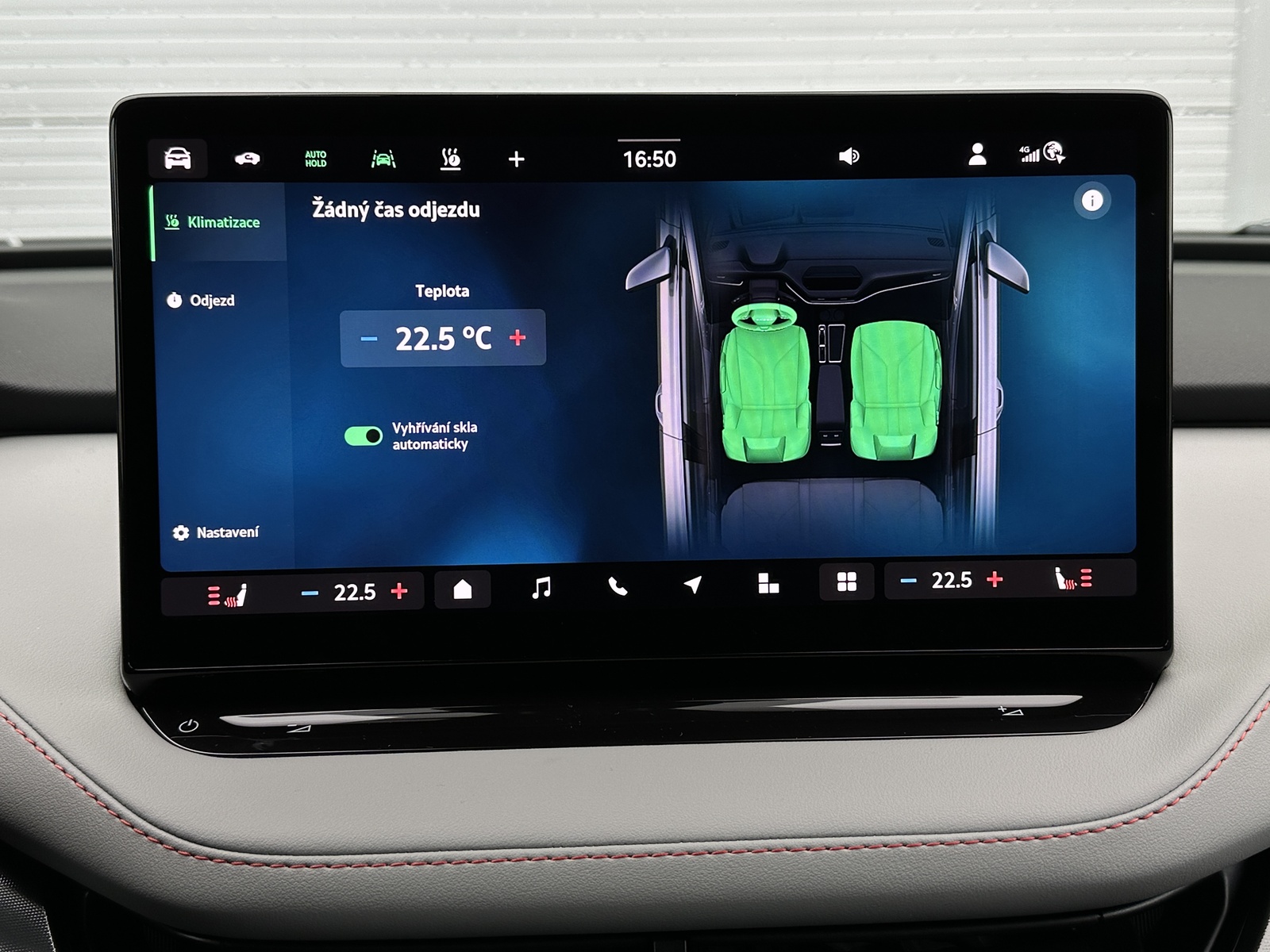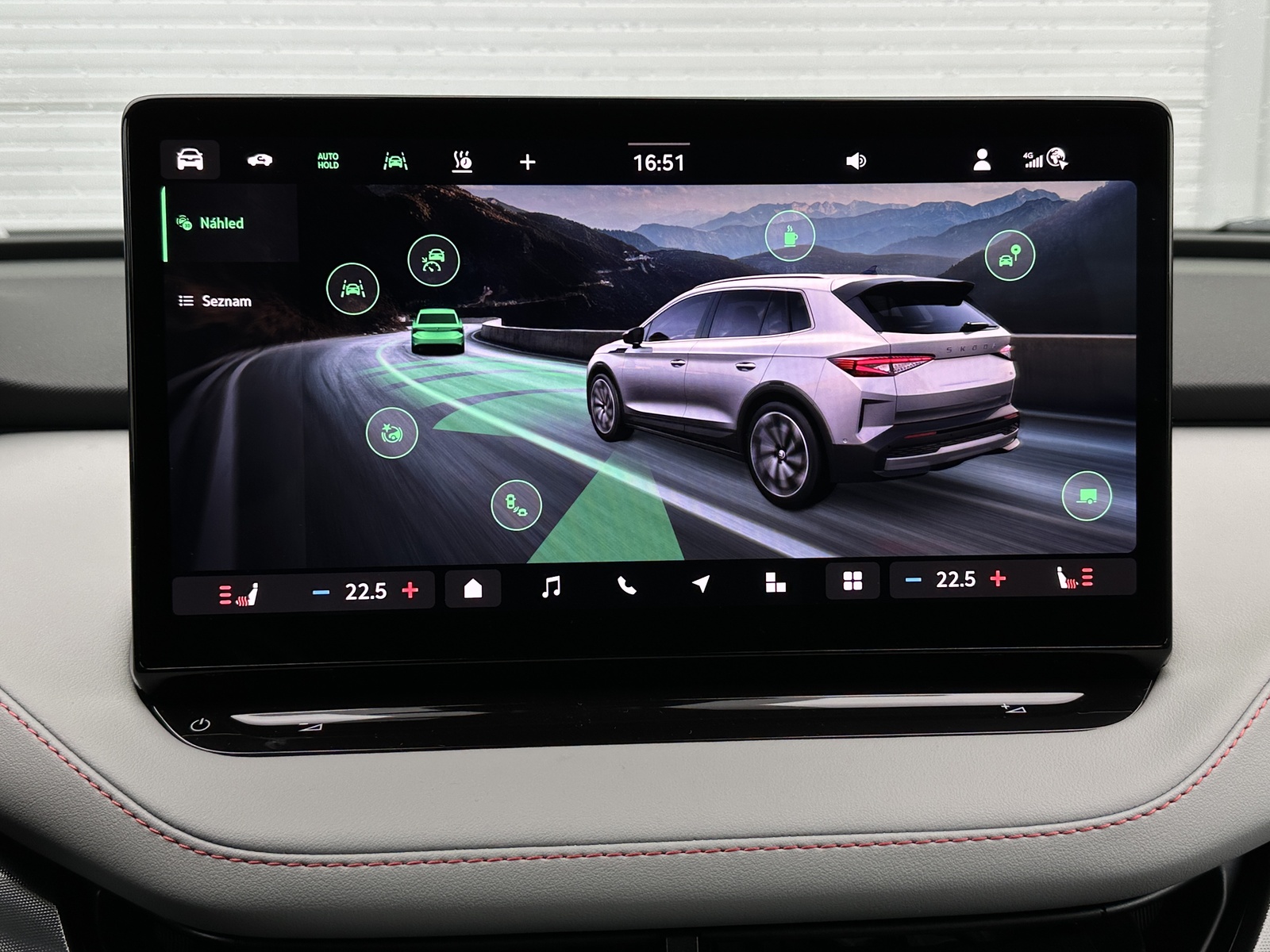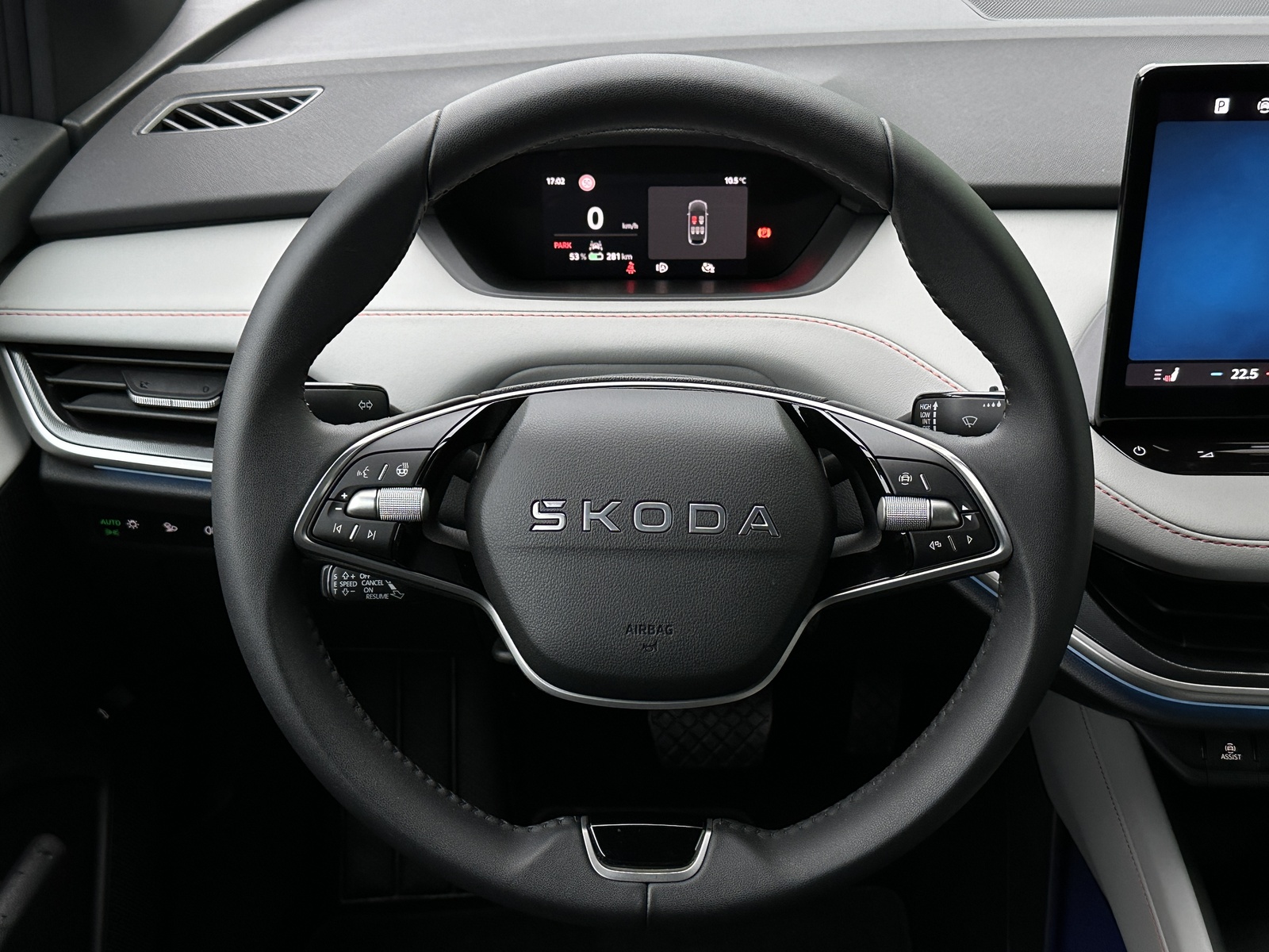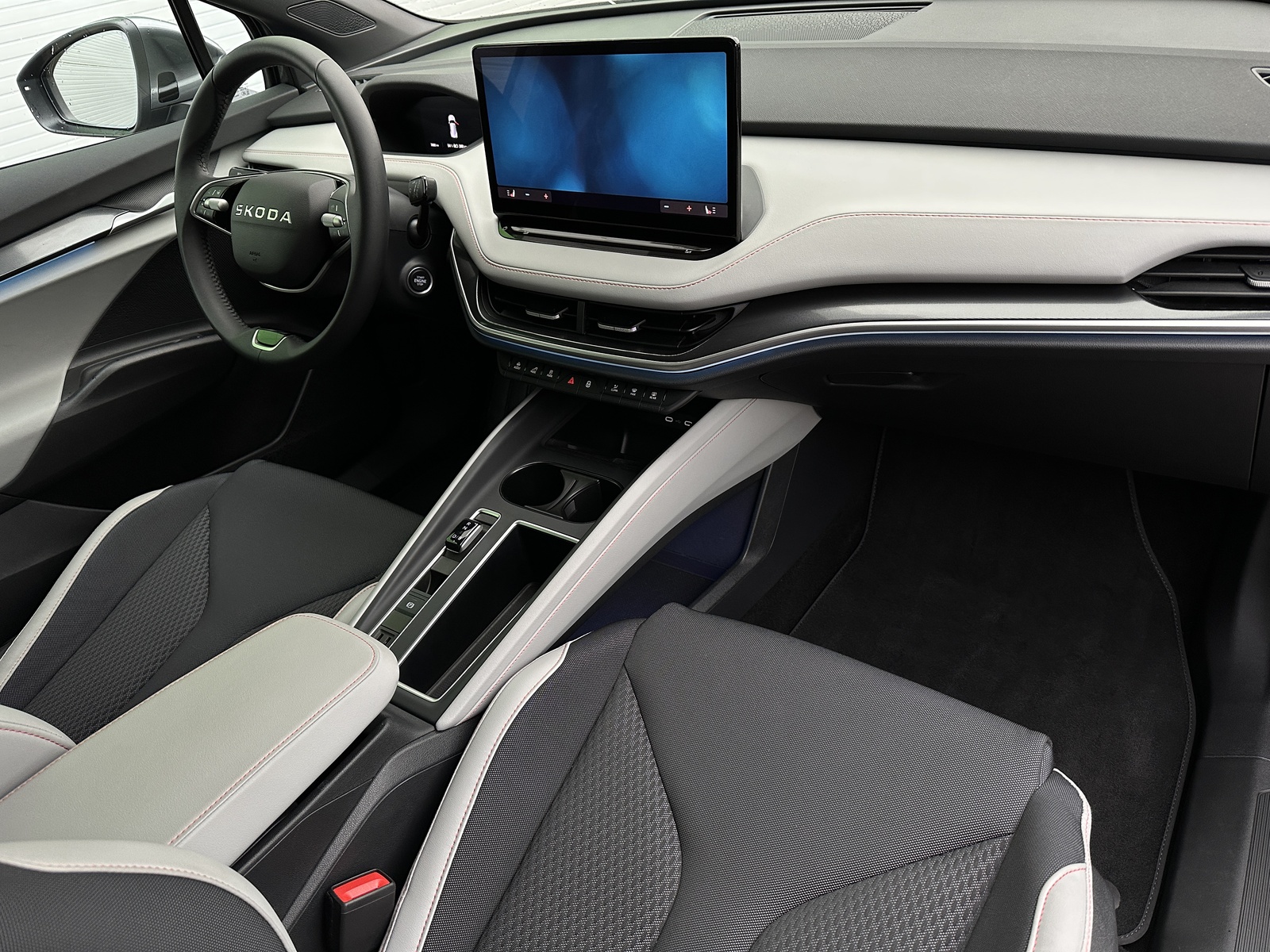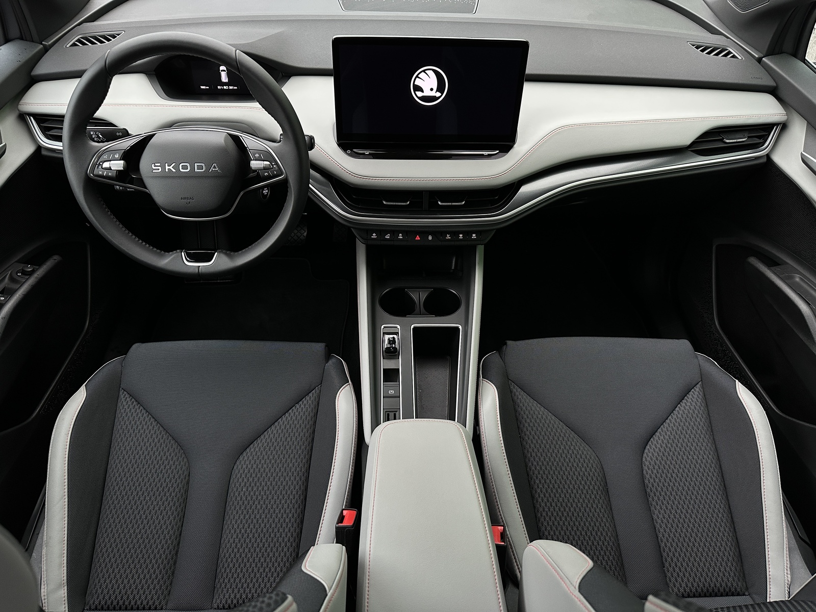 266/10791 Škoda Elroq iV 85 Premium 210kW/286PS, Tovární záruka Škoda Auto 5let/100.000km, Výbava vozu: Paket PREMIUM – (Asistovaná jízda 1.5 PLUS – (Prediktivní tempomat, Adaptivní vedení v jízdním pruhu - Lane Assist+), KESSY s alarmem, Bezdrátové nabíjení pro Smartphone, Akustická přední boční skla, Sunset - zatmavená zadní okna, Elektrická dětská pojistka, USB-C vzadu, Matrix-LED světlomety s funkcí pro špatné počasí, Top LED zadní světla, Virtuální pedál - otevírání víka kufru pohybem nohy pod zavazadlovým prostorem, Boční airbagy vzadu, Paket KLIMA PLUS – (Třízónová automatická klimatizace Climatronic, Vyhřívání sedadel vpředu i vzadu, Vyhřívané čelní sklo), Tepelné čerpadlo – pouze pro model 85), Tažné zařízení sklopné - el. odjistitelné, Kola z lehkých slitin ALU Škoda "VEGA AERO" 8Jx20" vpředu, 9Jx20" vzadu, Interiér Lodge - Látka/kůže, Ambiente LED osvětlení,Volba jízdního režimu, Vyhřívaná přední sedadla, Multifunkční vyhřívaný kožený volant, Infotainment s navigací 13", Zadní loketní opěrka s držákem nápojů, Deštník ve dveřích řidiče, Příprava pro tažné zařízení, Světelný a dešťový senzor, Elektrická okna vpředu i vzadu, Výškově nastavitelná přední sedadla s bederní opěrkou, Automatické stmívání vnitřního zpětného zrcátka, Vnější zpětná zrcátka elektricky nastavitelná a sklopná - vyhřívaná, Elektronická parkovací brzda, LED světlomety, LED zadní světla, Zadní parkovací kamera, Parkovací senzory vpředu i vzadu, Front Assist – varování a brzdění při hrozící kolizi s vozidly, chodci a cyklisty, Asistent pro průjezd křižovatkou, Prediktivní tempomat, Antikolizní asistent, Asistent udržování jízdního pruhu – Lane Assist, Asistent sledování mrtvého úhlu – Side Assist, Rozpoznávání dopravních značek s dohledem nad rychlostí ISA, Rozpoznání únavy, 7x airbag, Proaktivní ochrana cestujících, 2x i-Size a 2x Top Tether vzadu, 1x i-Size pro spolujezdce, Startování tlačítkem, centrální zamykání s dálkovým ovládáním, 2x USB-C vpředu, 12V zásuvka v zavazadlovém prostoru, Virtual Cockpit, Přední loketní opěrka, Kontrola tlaku v pneumatikách, Nabíjecí kabel Mode 3 Typ 2 (16 A), Bluetooth, Smartlink, 8 reproduktorů, Nouzové volání SOS – eCall, Digitální asistentka Laura, Zánovní vůz, Servisní kniha + dokumentace Škoda Auto, Možnost odpočtu DPH 21%, Skladem - ihned k odběru.