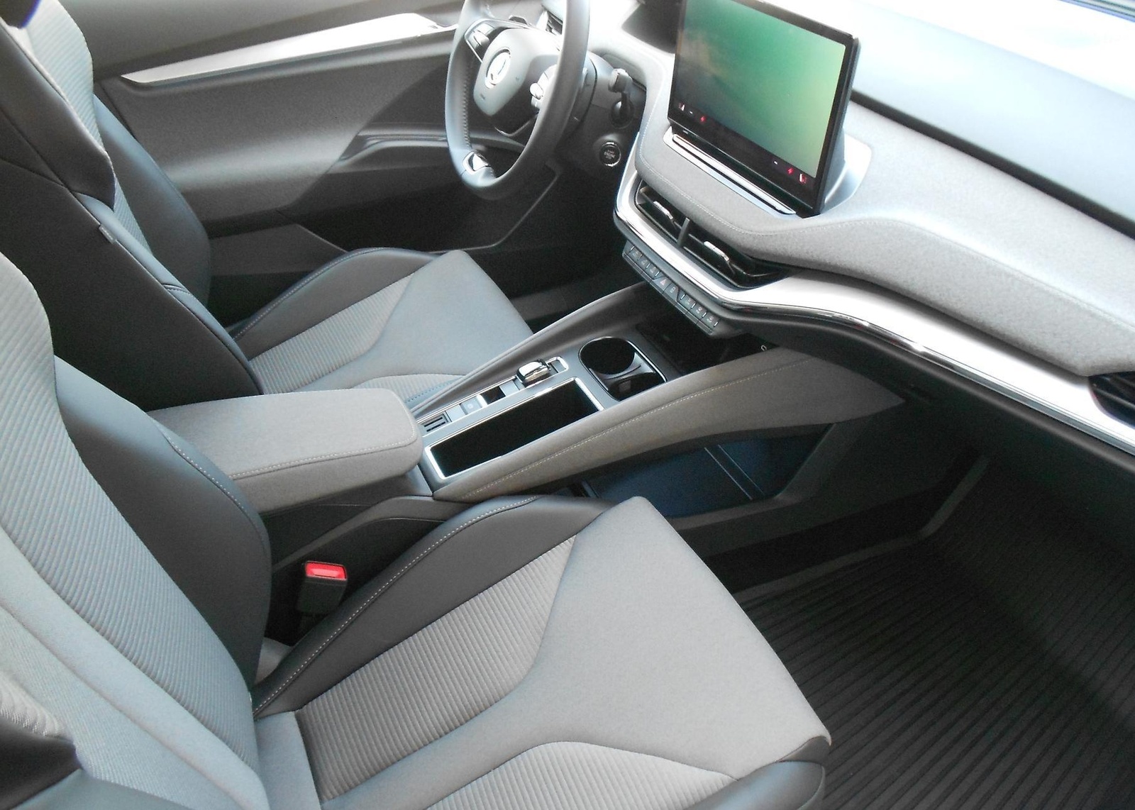 306/11045 Škoda Enyaq iV 50 Tour 125kW/170PS, Automatická převodovka, Tovární záruka Škoda Auto 5let/100.000km, Výbava vozu: Tažné zařízení sklopné - el. odjistitelné, Kola z lehké slitiny Proteus 8Jx19" stříbrná, Interiér Loft - potah sedadel - látka, Ambientní LED osvětlení, Střešní nosič, LED přední světlomety, LED zadní světla, Rozpoznávání dopravních značek, Rozpoznání únavy řidiče, Parkovací kamera vzadu - KAMERA, Parkovací senzory vpředu a vzadu - PDC P/Z, 7x airbag, 2x ISOFIX a 2x Top Tether vzadu, Front Assist - s upozorněním a zabržděním při hrozící kolizi s vozidly, chodci a cyklisty, Výstražná světla při prudkém brzdění, Lane Assist - Asistent udržování jízdního pruhu, Asistovaná jízda 1.0 - (Adaptivní tempomat ACC, Side Assist - Hlídání mrtvého úhlu, Asistent při jízdě v koloně), KESSY - bezklíčové zamykání a startování, 2x USB-C 12V zásuvka v zavazadlovém prostoru, Virtuální kokpit 5,3", Loketní opěrka vpředu Jumbo Box, Loketní opěrka vzadu s držákem nápojů, Příprava pro tažné zařízení, Kontrola tlaku v pneumatikách, Propojovací kabel Mennekes, 11 kW AC nabíjení, DC rychlé nabíjení z 10 na 80% za 25 minut, Family paket - (Rolety zadních oken, 230V zásuvka + 2x USB-C vzadu, Odkládací přihrádka pro zadní sedadla), Světelný a dešťový senzor, Automatické stmívání pro vnitřní zpětné zrcátko, Multifunkční vyhřívaný kožený volant, Sluneční clony s make-up zrcátky u řidiče a spolujezdce, Pádla řazení pod volantem, Vnější zpětná zrcátka, el. stavitelná a sklopná - vyhřívaná, Elektrické ovládání oken vpředu a vzadu, Třízónová automatická klimatizace Climatronic, Elektronická parkovací brzda s funkcí Auto Hold, Výškově nastavitelná přední sedadla s bederními opěrami, Sunset - zatmavená zadní okna, Vyhřívaná přední sedadla, Infotainment 13" - Bluetooth, Web rádio, Digitální asistentka Laura, 8 reproduktorů, Bezdrátové nabíjení telefonu, Navigace, Smartlink - zrcadlení aplikací z telefonu na Infotainment vozidla, Tísňové volání SOS eCall+, Servisní kniha + dokumentace Škoda Auto, Koupeno NOVÉ ČR, Možnost odpočtu DPH 21%, Skladem - ihned k odběru.