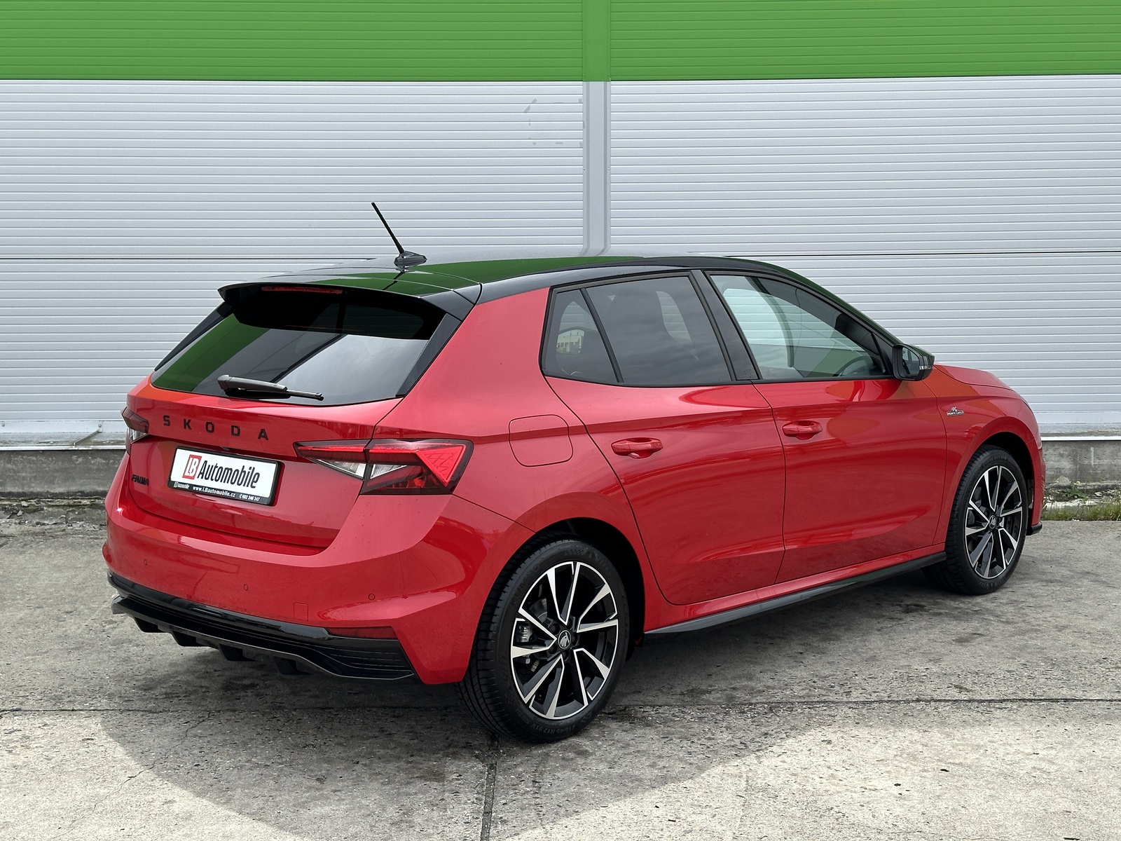 346/10902 Škoda Fabia Monte Carlo 1.0TSi 85kW/116PS, 6.st Manuální převodovka, Tovární záruka Škoda Auto 5let/100.000km, Výbava vozu: Paket Asistovaná jízda 1.5 PLUS - (Adaptivní tempomat - ACC, Asistent hlídání mrtvého úhlu - Side Assist, Adaptivní asistent pro udržování jízdního pruhu – Lane Assist+), Vyhřívané čelní sklo, Kola z lehkých slitin ALU Škoda "PROCYON" 7Jx17" Černá/Leštěná, Parkovací kamera vzadu, Parkovací senzory přední a zadní - PDC P/Z, Asistent varování a brzdění při hrozící kolizi s vozidly, chodci a cyklisty - Front Assist, Asistent rozpoznání únavy řidiče, Asistent rozjezdu do kopce, Rozpoznávání dopravních značek, Systém Start/Stop, Volba jízdního režimu, Bezklíčové odemykání a startování - KESSY, Dvouzónová automatická klimatizace - Climatronic, Vyhřívaný multifunkční kožený volant pro DSG s pádly pod volantem - výškově a podélně nastavitelný, Kožená hlavice řadicí páky a madlo ruční brzdy, Sportovní vyhřívaná přední sedadla s oddělenou regulací, Bederní opěrky na předních sedadlech, Výškově nastavitelné sedadlo řidiče a spolujezdce, Loketní opěrka s Jumbo Boxem, Zadní loketní opěrka, Potahy sedadel - látka, Automaticky zatmavovací vnitřní zpětné zrcátko, Elektrické ovládání oken vpředu i vzadu, Zatmavená zadní okna - Sunset, Vnější zpětná zrcátka elektricky sklopná, nastavitelná a vyhřívaná, Infotainment Bolero 8", Bezdrátový Smartlink, Bluetooth, Virtuální Cockpit, DAB, 6x reproduktor, Bezdrátové nabíjení telefonu, 2x USB-C pro cestující vzadu, Ambientní LED osvětlení interiéru, Bi-LED Přední světlomety, Asistent dálkových světel, Mlhová světla, LED Zadní světla, Senzor světla a deště, Sportovní kryty pedálů, Dekorativní prahové lišty, Sportovní exteriérové doplňky, Bezpečnostní šrouby kol, Sada na opravu pneumatik, Centrální zamykání s dálkovým ovládáním, 3x Isofix a Top Tether – 1x vpředu, 2x vzadu, ABS, ESP, 6x Airbag, Deaktivace airbagu spolujezdce, Nouzové volání SOS - eCall, Nový vůz skladem s registrací 16. 07. 2025, Servisní kniha + dokumentace Škoda Auto, Možnost odpočtu DPH 21%, Termín odběru a předání od 17. 01. 2026.