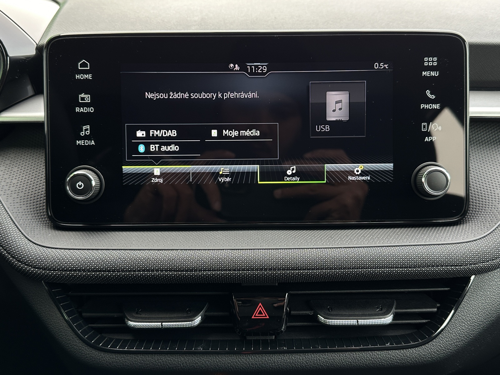 ABS, airbag, Android Auto, Apple Car Play, Asistent pro vedení vozu v jízdních pruzích, asistent rozjezdu do kopce, automatické svícení, autorádio, bluetooth, centrální zamykání, dálkové centrální zamykání, deaktivace airbagu spolujezdce, dělená zadní sedadla, Denní svícení, Digitální příjem rádia (DAB), Digitální přístrojová deska, Dotykové ovládání palubního počítače, Elektrochromatické vnitřní zpětné zrcátko, el. ovládání oken, el. ovládání zrcátek, el. startér, ESP, imobilizér, isofix, LED denní svícení, LED světlomety plnohodnotné, litá kola, Malý kožený paket, manuální klimatizace, manuální převodovka, mlhovky, Mobilní připojení, multifunkční volant, Multimediální systém bez navigace, nastavitelná sedadla, nastavitelný volant, nouzové brždění, originál autorádio, Originální autorádio, palubní počítač, parkovací kamera, parkovací senzory, Parkovací senzory zadní, podélný posuv sedadel, posilovač řízení, protiprokluzový systém kol (ASR), Přístrojová deska s barevným displejem, rádio, Rozpoznávání dopravních značek, senzor stěračů, senzor tlaku v pneumatikách, sledování jízdního pruhu, sledování únavy řidiče, Start/Stop systém, Systém nouzového zastavení, tempomat, tónovaná skla, USB, venkovní teploměr, vyhřívaná sedadla, vyhřívaná zrcátka, výsuvné opěrky hlav, výškově nastavitelná sedadla, výškově nastavitelné sedadlo řidiče, zadní stěrač, záruka, 6 x airbag