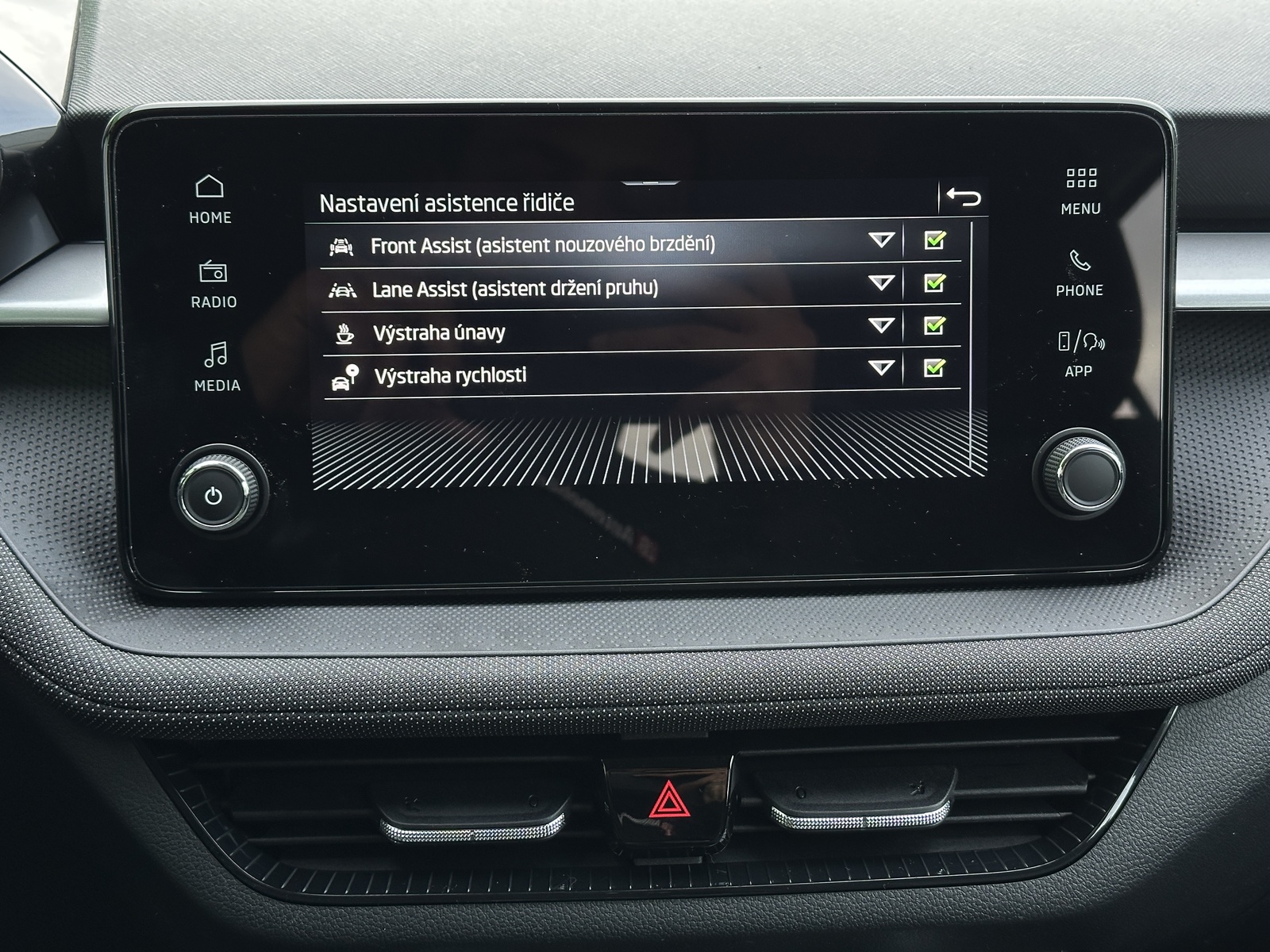 ABS, airbag, Android Auto, Apple Car Play, Asistent pro vedení vozu v jízdních pruzích, asistent rozjezdu do kopce, automatická klimatizace, automatické svícení, autorádio, bluetooth, centrální zamykání, dálkové centrální zamykání, deaktivace airbagu spolujezdce, dělená zadní sedadla, Denní svícení, Digitální příjem rádia (DAB), Digitální přístrojová deska, Dotykové ovládání palubního počítače, dvouzónová klimatizace, Elektrochromatické vnitřní zpětné zrcátko, el. ovládání oken, el. ovládání zrcátek, el. startér, ESP, imobilizér, isofix, LED denní svícení, LED světlomety plnohodnotné, litá kola, Malý kožený paket, manuální převodovka, mlhovky, Mobilní připojení, multifunkční volant, Multimediální systém bez navigace, nastavitelná sedadla, nastavitelný volant, nouzové brždění, originál autorádio, Originální autorádio, palubní počítač, parkovací kamera, Parkovací senzory zadní, podélný posuv sedadel, posilovač řízení, protiprokluzový systém kol (ASR), Přístrojová deska s barevným displejem, rádio, Rozpoznávání dopravních značek, senzor stěračů, senzor tlaku v pneumatikách, sledování jízdního pruhu, sledování únavy řidiče, Start/Stop systém, Systém nouzového zastavení, tempomat, tónovaná skla, USB, venkovní teploměr, vnitřní teploměr, vyhřívaná sedadla, vyhřívaná zrcátka, výsuvné opěrky hlav, výškově nastavitelná sedadla, výškově nastavitelné sedadlo řidiče, zadní stěrač, záruka, 6 x airbag