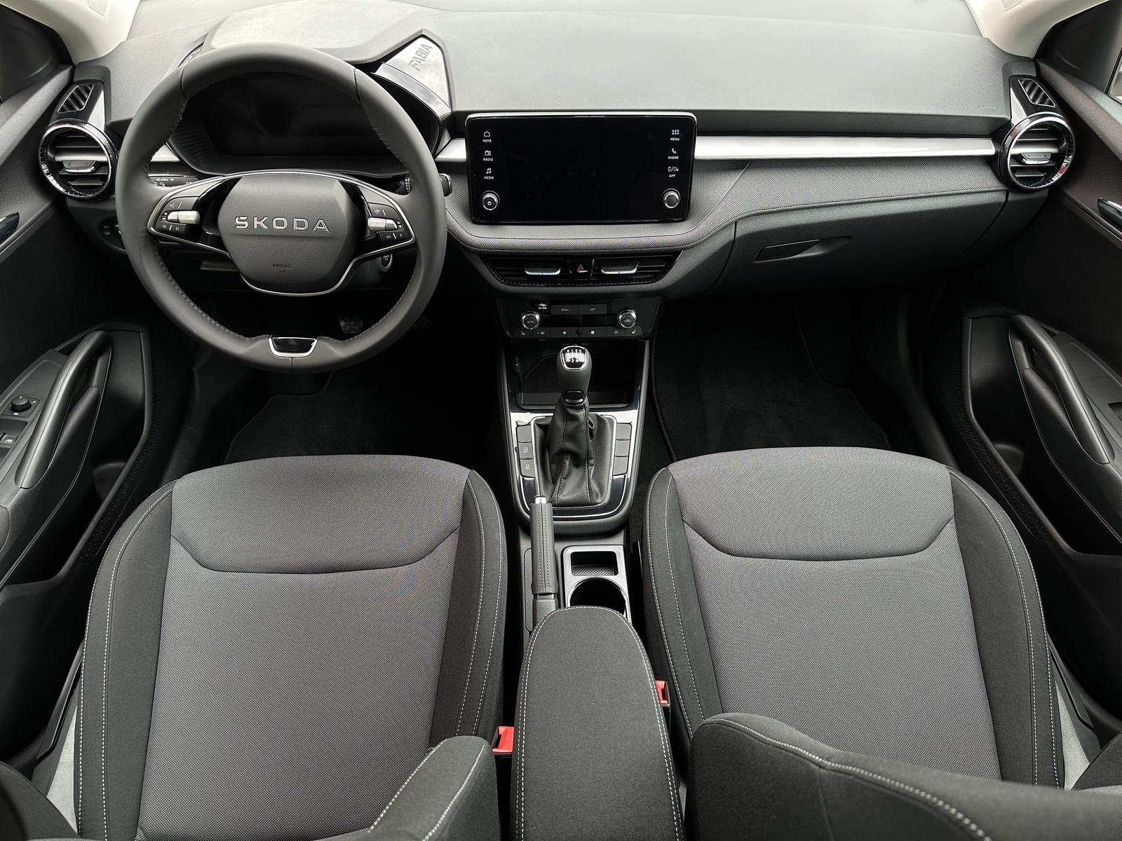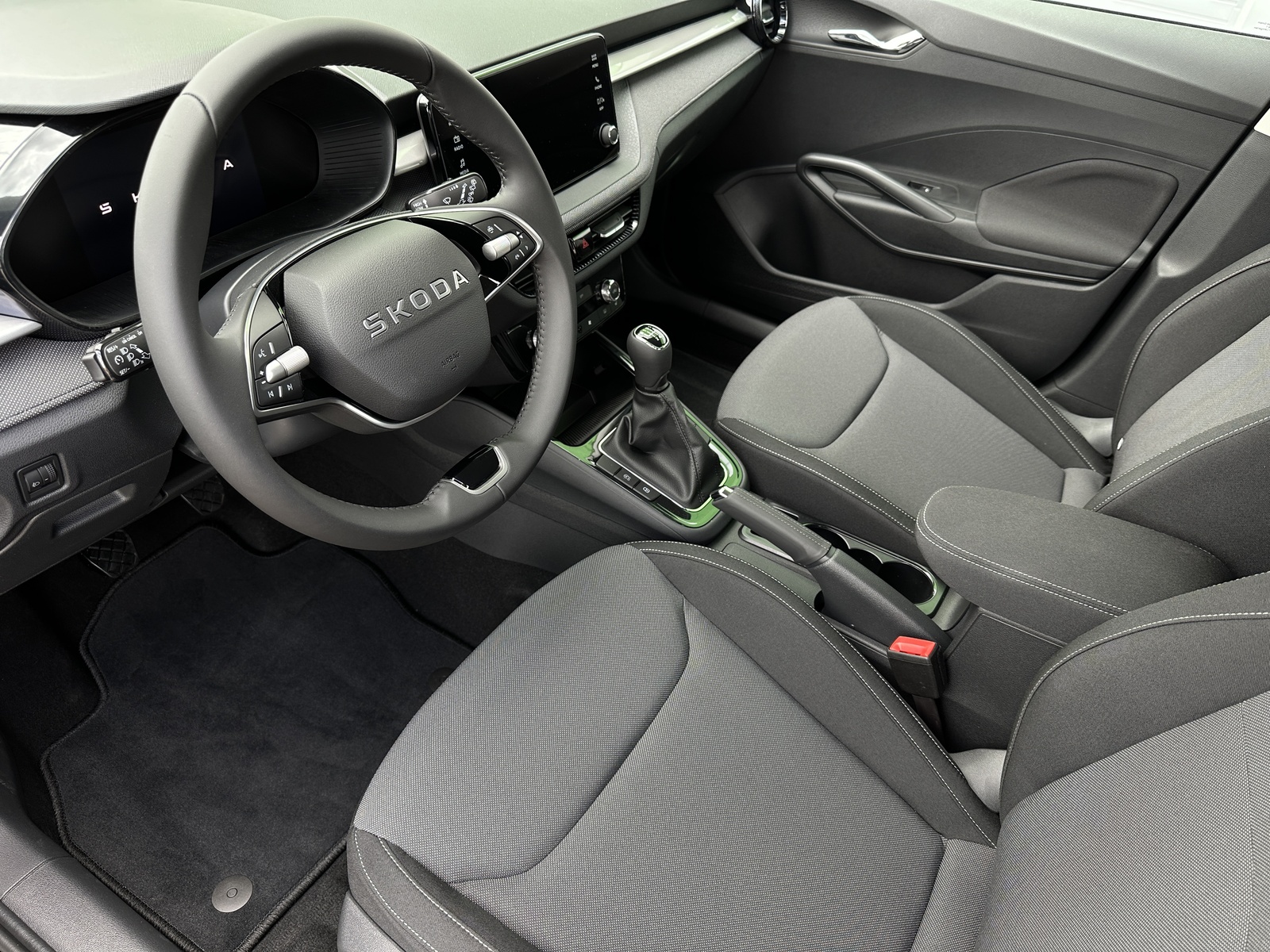 293/11143 Škoda Fabia Selection 1.0TSi 70kW/95PS, 5st. Manuální převodovka, Tovární záruka Škoda Auto 5let/100.000km, Výbava vozu: Tažné zařízení odnímatelné, Paket Interiér PLUS - (Dvouzónová automatická klimatizace - Climatronic, Bezdrátový Smartlink, 6x reproduktor), Dvojitá podlaha v zavazadlovém prostoru, Parkovací senzory vzadu – PDC/Z, Asistent vedení v jízdním pruhu - Lane Assist, Asistent varování a brzdění při hrozící kolizi s vozidly, chodci a cyklisty - Front Assist, Asistent rozpoznání únavy řidiče, Asistent rozjezdu do kopce, Rozpoznávání dopravních značek, Systém Start/Stop, Tempomat s omezovačem rychlosti, Startování tlačítkem, Multifunkční kožený volant pro DSG s pádly pod volantem - výškově a podélně nastavitelný, Kožená hlavice řadicí páky a madlo ruční brzdy, Bederní opěrky na předních sedadlech, Výškově nastavitelné sedadlo řidiče a spolujezdce, Vyhřívaná přední sedadla s oddělenou regulací, Přední loketní opěrka, Tříbodové automatické bezpečnostní pásy vzadu, Potah sedadel – látka, Vnitřní zpětné zrcátko s automatickým stmíváním, Elektrické ovládání oken vpředu i vzadu, Vnější zpětná zrcátka elektricky nastavitelná a vyhřívaná, Virtuální Cockpit, Infotainment Media 8", Bluetooth, DAB, 2x USB-C vpředu, LED hlavní světlomety, Regulace sklonu světlometů, Mlhová světla, Světelný senzor, Zadní stěrač s ostřikovačem, Centrální zamykání s dálkovým ovládáním, Kontrola tlaku v pneumatikách, Sada na opravu pneumatik, Ocelový ráfek s kryty kol Škoda Calisto 5,5Jx15", ABS, ESP, 6x Airbag, Deaktivace airbagu spolujezdce, Nouzové volání SOS - eCall, Zatížení bržděného tažného zařízení - 1000kg, Zatížení nebržděného tažného zařízení - 570kg, NOVÝ VŮZ, Servisní kniha + dokumentace Škoda Auto, Možnost odpočtu DPH 21%, Skladem - ihned k odběru.