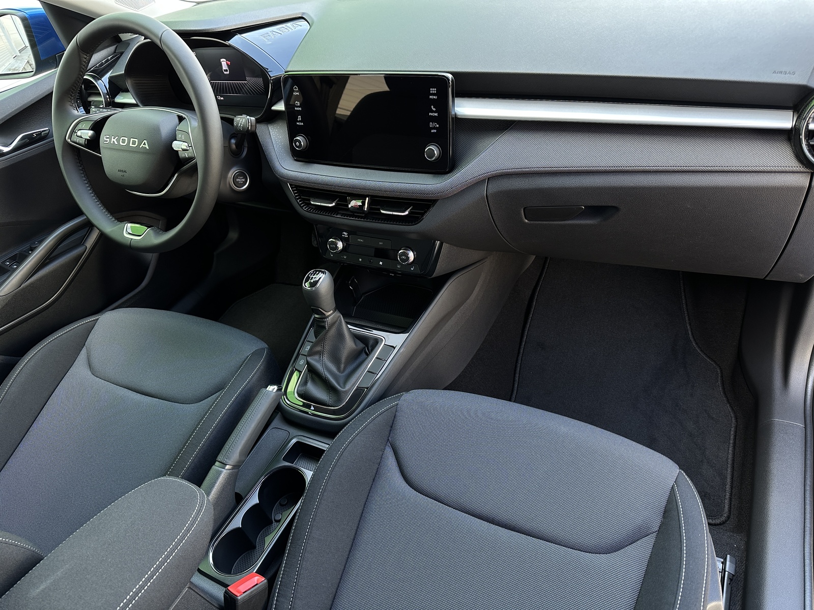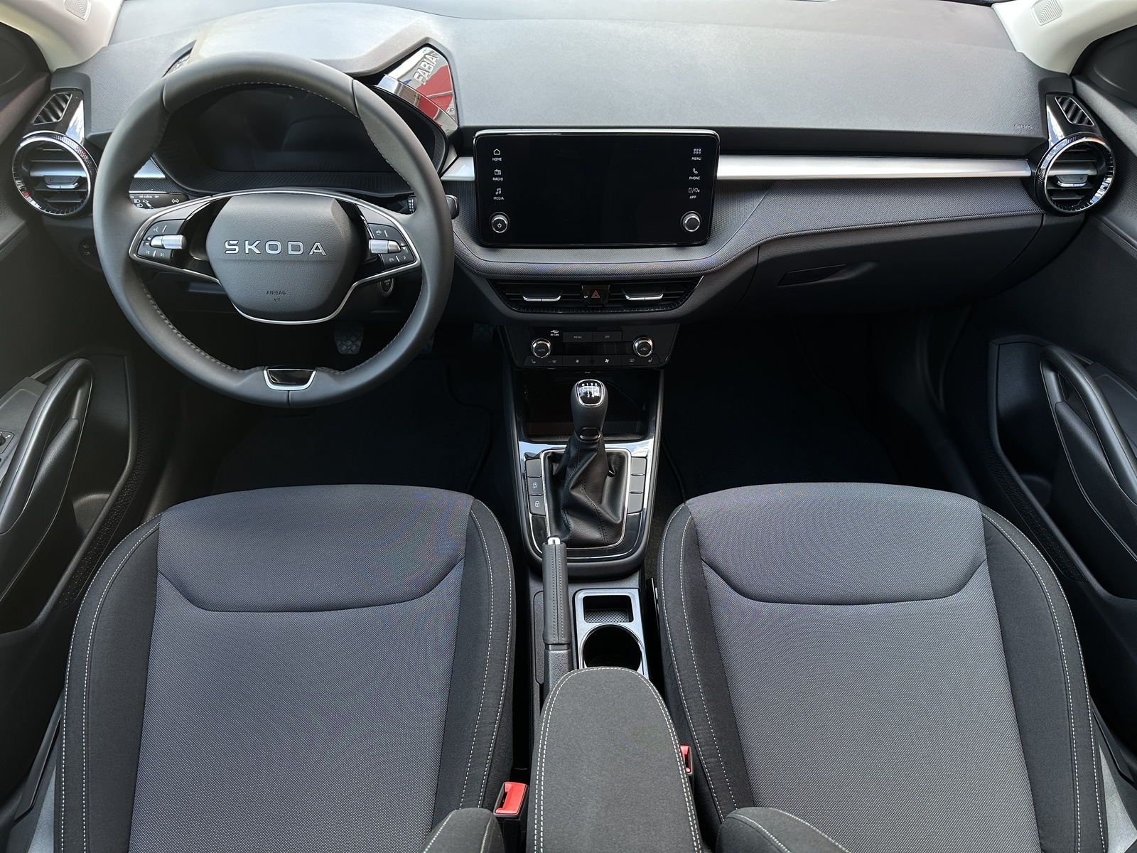 289/11221 Škoda Fabia 1.0TSi 70 kW/95 PS, 5st. Manuální převodovka, Tovární záruka Škoda Auto 5let/100.000km, Výbava vozu: Paket Interiér PLUS - (Dvouzónová automatická klimatizace - Climatronic, Bezdrátový SmartLink, 6x Reproduktor), Kola z lehkých slitin ALU Škoda "ROTARE AERO" 5,5Jx15" Černá, Parkovací kamera vzadu, Parkovací senzory vzadu - PDC/Z, Asistent udržování v jízdním pruhu - Lane Assist, Asistent varování a brzdění při hrozící kolizi s vozidly, chodci a cyklisty - Front Assist, Asistent rozpoznání únavy řidiče, Asistent rozjezdu do kopce, Rozpoznávání dopravních značek, Systém Start/Stop, Tempomat s omezovačem rychlosti, Multifunkční kožený volant pro DSG s pádly pod volantem - Výškově a podélně nastavitelný, Startování tlačítkem, Hlavice řadicí páky a madlo ruční brzdy z kůže, Bederní opěrky na předních sedadlech, Výškově nastavitelné sedadlo řidiče a spolujezdce, Vyhřívaná přední sedadla s oddělenou regulací, Přední loketní opěrka, Tříbodové automatické bezpečnostní pásy vzadu, Potah sedadel - Látka, Vnitřní zpětné zrcátko s automatickým stmíváním, Elektrické ovládání oken vpředu i vzadu, Vnější zpětná zrcátka elektricky nastavitelná a vyhřívaná, Virtuální Cockpit 8", Infotainment Media 8", Bluetooth, DAB, 2x USB-C vpředu, LED přední světlomety, Světelný senzor, Zadní stěrač s ostřikovačem a stupňovitě nastavitelným intervalem stírání, Osvětlení zavazadlového prostoru, Kontrola tlaku v pneumatikách, Sada na opravu pneumatik, ABS, ESP, 6x Airbag, Deaktivace airbagu spolujezdce, Centrální zamykání s dálkovým ovládáním, Zatížení bržděného tažného zařízení - 1.000 kg, Zatížení nebržděného tažného zařízení - 570 kg, Nový vůz ČR, Servisní kniha + dokumentace Škoda Auto, Možnost odpočtu DPH 21%, Skladem - ihned k odběru.