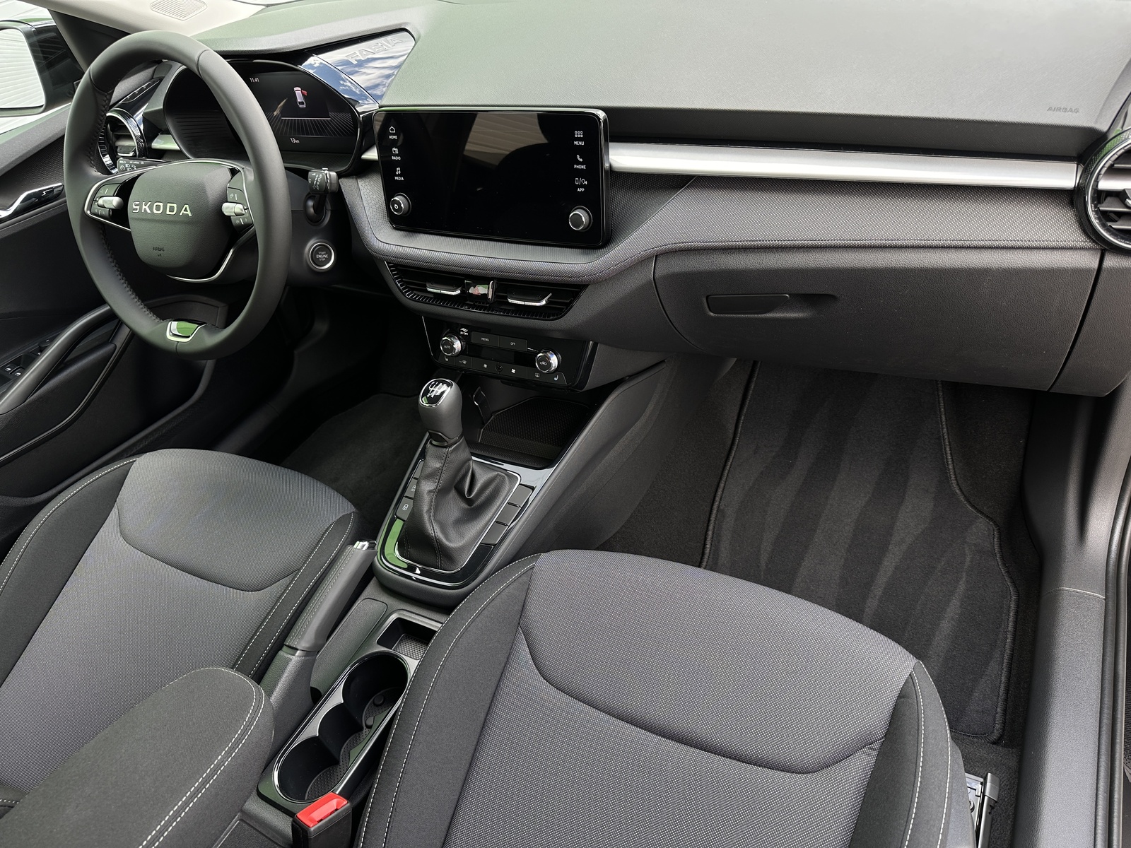 292/11222 Škoda Fabia 1.0TSi 70 kW/95 PS, 5st. Manuální převodovka, Tovární záruka Škoda Auto 5let/100.000km, Výbava vozu: Paket Interiér PLUS - (Dvouzónová automatická klimatizace - Climatronic, Bezdrátový SmartLink, 6x Reproduktor), Kola z lehkých slitin ALU Škoda "ROTARE AERO" 5,5Jx15" Černá, Parkovací kamera vzadu, Parkovací senzory vzadu - PDC/Z, Asistent udržování v jízdním pruhu - Lane Assist, Asistent varování a brzdění při hrozící kolizi s vozidly, chodci a cyklisty - Front Assist, Asistent rozpoznání únavy řidiče, Asistent rozjezdu do kopce, Rozpoznávání dopravních značek, Systém Start/Stop, Tempomat s omezovačem rychlosti, Multifunkční kožený volant pro DSG s pádly pod volantem - Výškově a podélně nastavitelný, Startování tlačítkem, Hlavice řadicí páky a madlo ruční brzdy z kůže, Bederní opěrky na předních sedadlech, Výškově nastavitelné sedadlo řidiče a spolujezdce, Vyhřívaná přední sedadla s oddělenou regulací, Přední loketní opěrka, Tříbodové automatické bezpečnostní pásy vzadu, Potah sedadel - Látka, Vnitřní zpětné zrcátko s automatickým stmíváním, Elektrické ovládání oken vpředu i vzadu, Vnější zpětná zrcátka elektricky nastavitelná a vyhřívaná, Virtuální Cockpit 8", Infotainment Media 8", Bluetooth, DAB, 2x USB-C vpředu, LED přední světlomety, Světelný senzor, Zadní stěrač s ostřikovačem a stupňovitě nastavitelným intervalem stírání, Osvětlení zavazadlového prostoru, Kontrola tlaku v pneumatikách, Sada na opravu pneumatik, ABS, ESP, 6x Airbag, Deaktivace airbagu spolujezdce, Centrální zamykání s dálkovým ovládáním, Zatížení bržděného tažného zařízení - 1.000 kg, Zatížení nebržděného tažného zařízení - 570 kg, Nový vůz ČR, Servisní kniha + dokumentace Škoda Auto, Možnost odpočtu DPH 21%, Skladem - ihned k odběru.