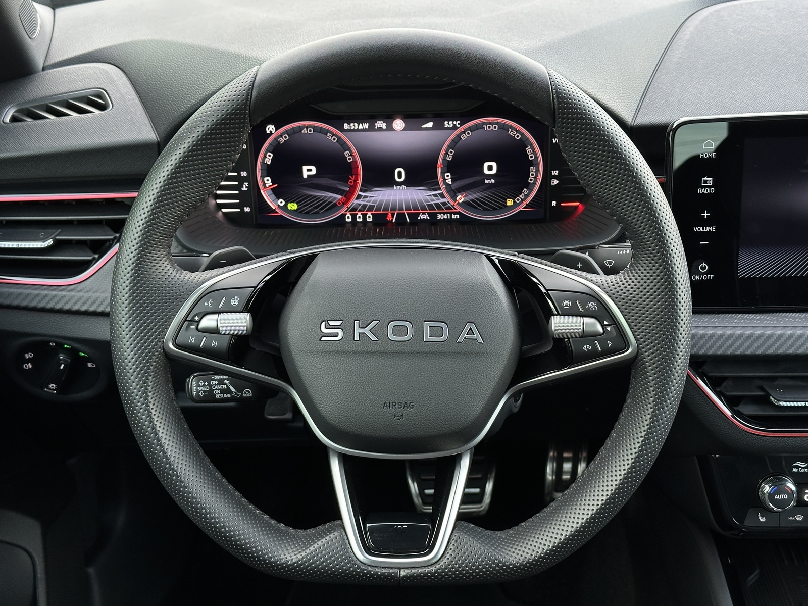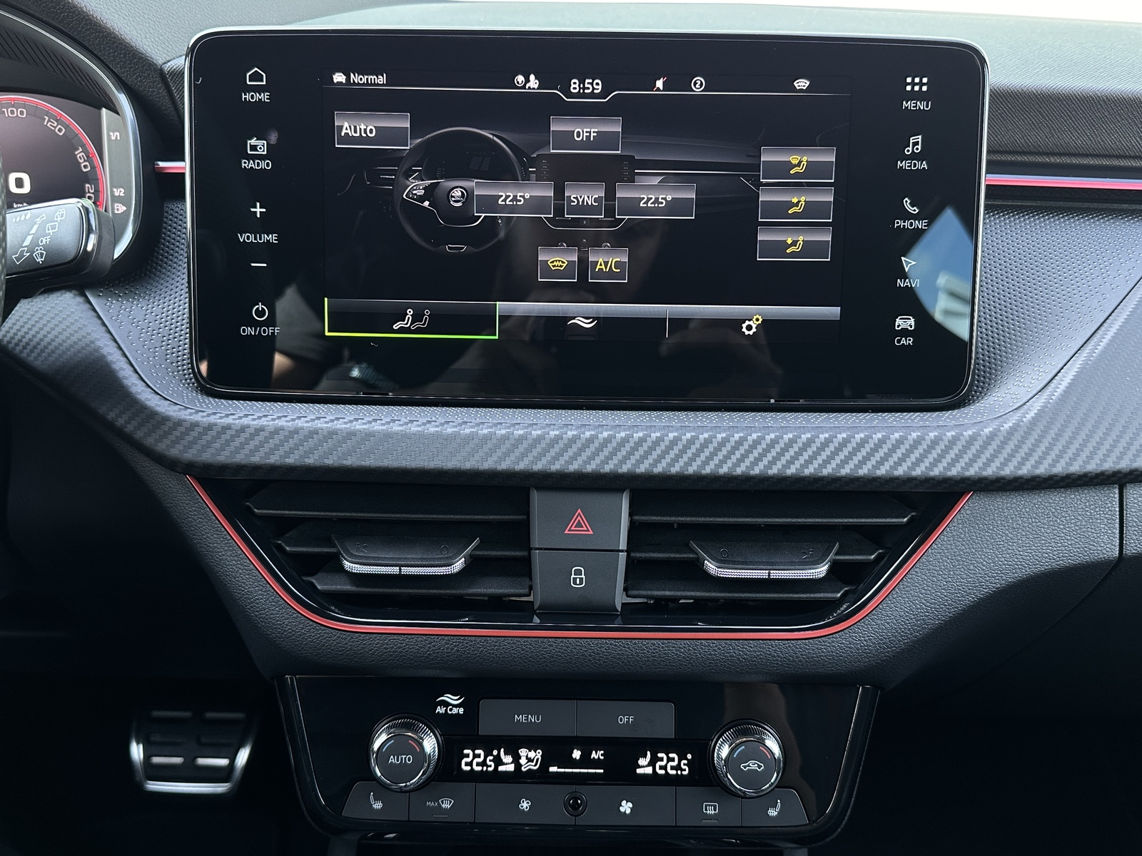 22/10837 Škoda Kamiq Monte Carlo 1.5TSi 110kW/150PS, 7st. Automatická převodovka DSG, Tovární záruka Škoda Auto 5let/100.000km, Výbava vozu: Asistovaná jízda 1.5 PLUS - (Adaptivní tempomat - ACC, Adaptivní vedení v jízdním pruhu - Lane Assist+, Hlídání mrtvého úhlu - Side Assist), Paket NAVI - (Infotainment Amundsen s Navigací, Webradio, Virtuální Cockpit, Digitální asistentka Laura), Tažné zařízení sklopné - el. odjistitelné, Ocelové rezervní kolo, Kola z lehkých slitin ALU Škoda "URSA" 7Jx18" Černá/Leštěná, Vyhřívané čelní sklo, Matrix-LED přední světlomety, Panoramatická střecha, Interiér – sportovní Monte Carlo s černou stropnicí, Černě lakované doplňky karoserie, LED zadní světla s animovanými směrovkami, Vyhřívaný sportovní multifunkční kožený volant – pro DSG s pádly pod volantem, Sportovní kryty pedálů, Dekorativní prahové lišty, KESSY – bezklíčové odemykání a startování, Volba jízdních režimů, Zadní parkovací kamera , Parkovací senzory vpředu a vzadu – PDC, Mlhové světlomety, Elektricky sklopná vnější zrcátka s automatickým stmíváním, 2x USB-C vzadu, Dešťový senzor, Světelný senzor, Vnitřní zpětné zrcátko s automatickým stmíváním, Bezdrátové nabíjení pro Smartphone, Zadní loketní opěrka, Loketní opěrka s Jumbo Boxem vpředu, Dvouzónová automatická klimatizace Climatronic, Vyhřívaná přední sedadla, Bederní opěrky na předních sedadlech, Výškově nastavitelná sedadla řidiče a spolujezdce, Kožená hlavice řadicí páky a madlo ruční brzdy, Vyhřívané trysky ostřikovačů, Elektrické ovládání oken vpředu i vzadu, 12V zásuvka vpředu a vzadu, 2x USB-C, 8 reproduktorů, Bluetooth, 4 reproduktory, DAB, Bezdrátový Smartlink, Front Assist – varování a brzdění při hrozící kolizi s vozidly, chodci a cyklisty, Rozpoznávání dopravních značek, Upozornění na únavu řidiče, Asistent rozjezdu do kopce, Virtual Cockpit , 6x airbag, 3x Isofix a Top Tether, Deaktivace airbagu spolujezdce, Nouzový volání SOS eCall+, Potah sedadel – látka, Sunset – zatmavená zadní okna, Servisní kniha + dokumentace Škoda Auto, Možnost odpočtu DPH 21%, Skladem - ihned k odběru.
