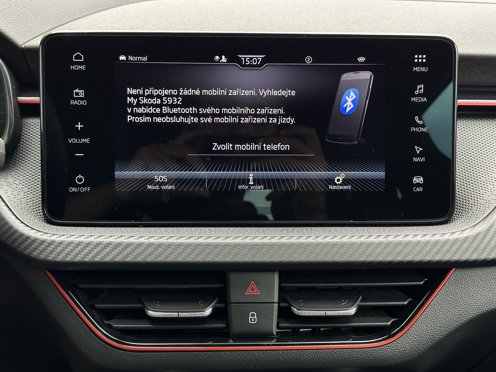 152/10842 Škoda Kamiq Monte Carlo 1.5TSi 110kW/150PS, 7st. Automatická převodovka DSG, Tovární záruka Škoda Auto 5let/100.000km, Výbava vozu: Asistovaná jízda 1.5 PLUS - (Adaptivní tempomat - ACC, Adaptivní vedení v jízdním pruhu - Lane Assist+, Hlídání mrtvého úhlu - Side Assist), Paket NAVI - (Infotainment Amundsen s Navigací, Webradio, Virtuální Cockpit, Digitální asistentka Laura), Tažné zařízení sklopné - el. odjistitelné, Ocelové rezervní kolo, Kola z lehkých slitin ALU Škoda "URSA" 7Jx18" Černá/Leštěná, Vyhřívané čelní sklo, Matrix-LED přední světlomety, Panoramatická střecha, Interiér – sportovní Monte Carlo s černou stropnicí, Černě lakované doplňky karoserie, LED zadní světla s animovanými směrovkami, Vyhřívaný sportovní multifunkční kožený volant – pro DSG s pádly pod volantem, Sportovní kryty pedálů, Dekorativní prahové lišty, KESSY – bezklíčové odemykání a startování, Volba jízdních režimů, Zadní parkovací kamera , Parkovací senzory vpředu a vzadu – PDC, Mlhové světlomety, Elektricky sklopná vnější zrcátka s automatickým stmíváním, 2x USB-C vzadu, Dešťový senzor, Světelný senzor, Vnitřní zpětné zrcátko s automatickým stmíváním, Bezdrátové nabíjení pro Smartphone, Zadní loketní opěrka, Loketní opěrka s Jumbo Boxem vpředu, Dvouzónová automatická klimatizace Climatronic, Vyhřívaná přední sedadla, Bederní opěrky na předních sedadlech, Výškově nastavitelná sedadla řidiče a spolujezdce, Kožená hlavice řadicí páky a madlo ruční brzdy, Vyhřívané trysky ostřikovačů, Elektrické ovládání oken vpředu i vzadu, 12V zásuvka vpředu a vzadu, 2x USB-C, 8 reproduktorů, Bluetooth, 4 reproduktory, DAB, Bezdrátový Smartlink, Front Assist – varování a brzdění při hrozící kolizi s vozidly, chodci a cyklisty, Rozpoznávání dopravních značek, Upozornění na únavu řidiče, Asistent rozjezdu do kopce, Virtual Cockpit , 6x airbag, 3x Isofix a Top Tether, Deaktivace airbagu spolujezdce, Nouzový volání SOS eCall+, Potah sedadel – látka, Sunset – zatmavená zadní okna, Servisní kniha + dokumentace Škoda Auto, Možnost odpočtu DPH 21%, Skladem - ihned k odběru.