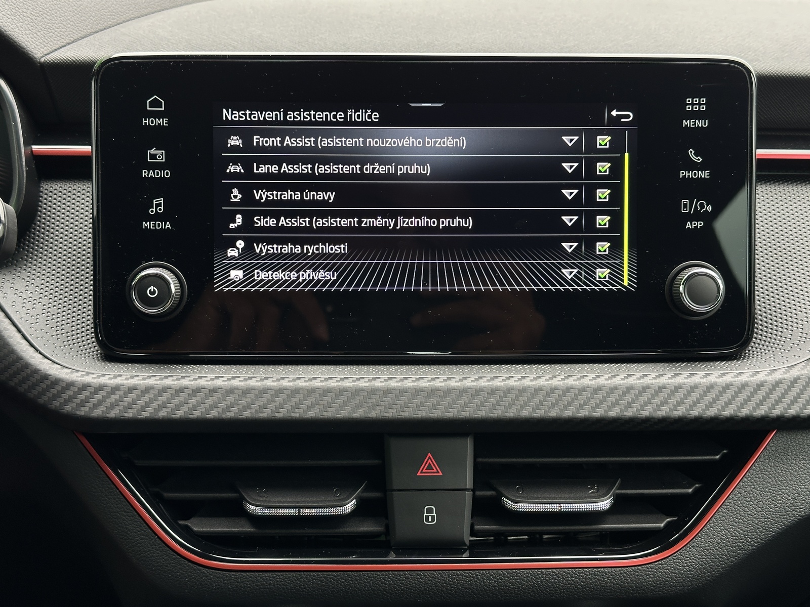 ABS, adaptivní tempomat, airbag, Ambientní LED osvětlení interiéru, Android Auto, Apple Car Play, Asistent pro vedení vozu v jízdních pruzích, asistent rozjezdu do kopce, Asistent udržování odstupu, Asistent změny jízdního pruhu, automatická klimatizace, automatické svícení, autorádio, bezklíčkové ovládání, bluetooth, centrální zamykání, dálkové centrální zamykání, deaktivace airbagu spolujezdce, Denní svícení, Digitální příjem rádia (DAB), Digitální přístrojová deska, Dotykové ovládání palubního počítače, dvouzónová klimatizace, Elektrické tažné zařízení, Elektrochromatické vnitřní zpětné zrcátko, el. ovládání oken, el. ovládání zrcátek, el. sklopná zrcátka, el. startér, ESP, hlídání mrtvého úhlu, imobilizér, isofix, katalyzátor, LED denní svícení, litá kola, Malý kožený paket, manuální převodovka, mlhovky, Mobilní připojení, multifunkční volant, Multimediální systém bez navigace, nastavitelná sedadla, nastavitelný volant, nouzové brždění, originál autorádio, Originální autorádio, otáčkoměr, Pádla řazení na volantu, palubní počítač, panoramatická střecha, parkovací kamera, parkovací senzory, Parkovací senzory přední, Parkovací senzory zadní, podélný posuv sedadel, posilovač řízení, protiprokluzový systém kol (ASR), přídavná světla, Přístrojová deska s barevným displejem, rádio, Rozpoznávání dopravních značek, senzor opotřebení brzd. destiček, senzor tlaku v pneumatikách, sledování jízdního pruhu, sledování únavy řidiče, sportovní sedadla, Start/Stop systém, střešní nosič, Systém nouzového zastavení, tažné zařízení, tónovaná skla, USB, venkovní teploměr, Volba jízdního režimu, vyhřívaná sedadla, vyhřívaná zrcátka, vyhřívané čelní sklo, vyhřívaný volant, výsuvné opěrky hlav, výškově nastavitelná sedadla, výškově nastavitelné sedadlo řidiče, Zadní loketní opěrka, zadní mlhovka, zadní stěrač, záruka, Zatmavená zadní skla, závěsné zařízení v TP, 6 x airbag