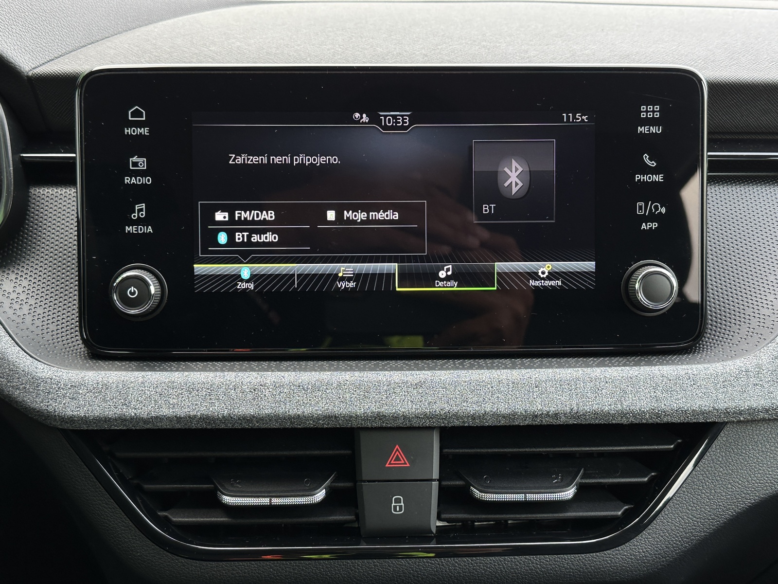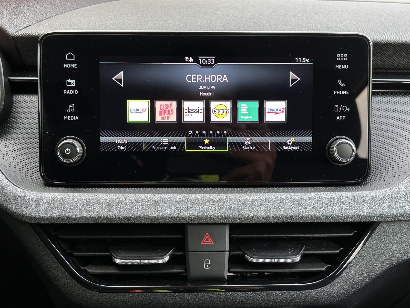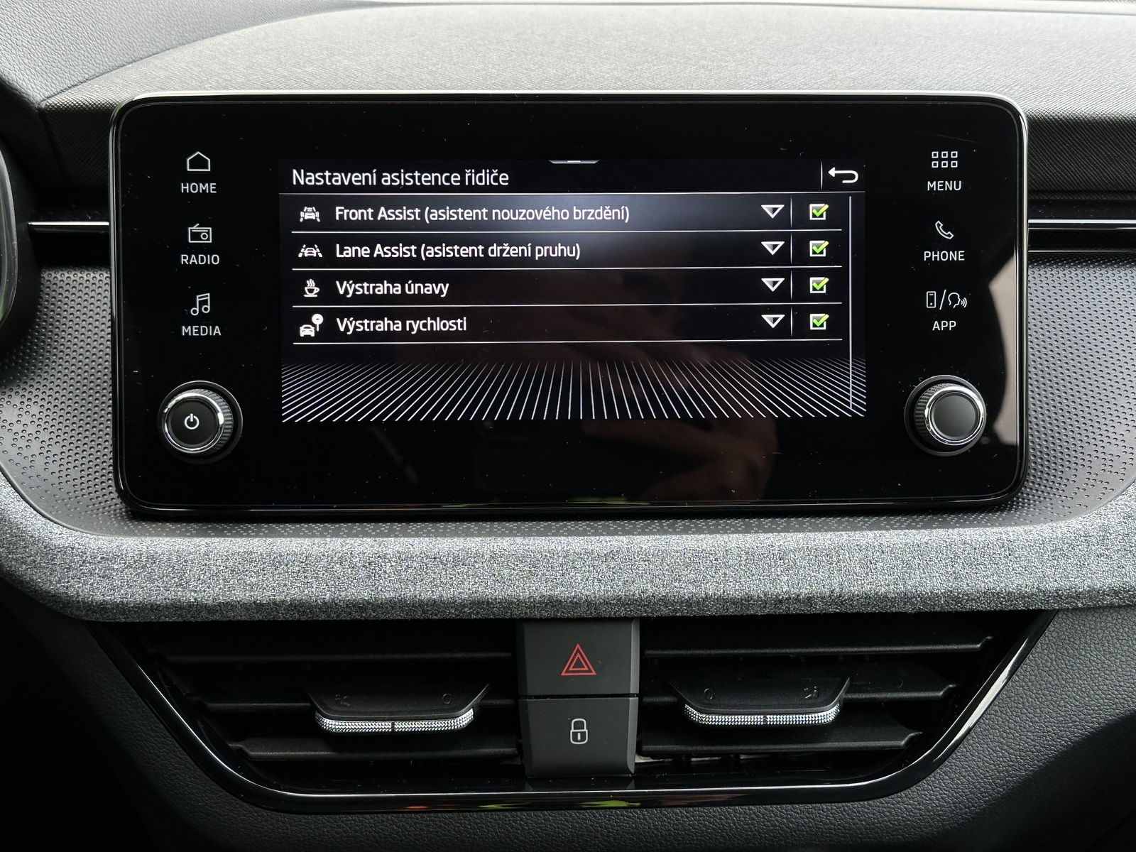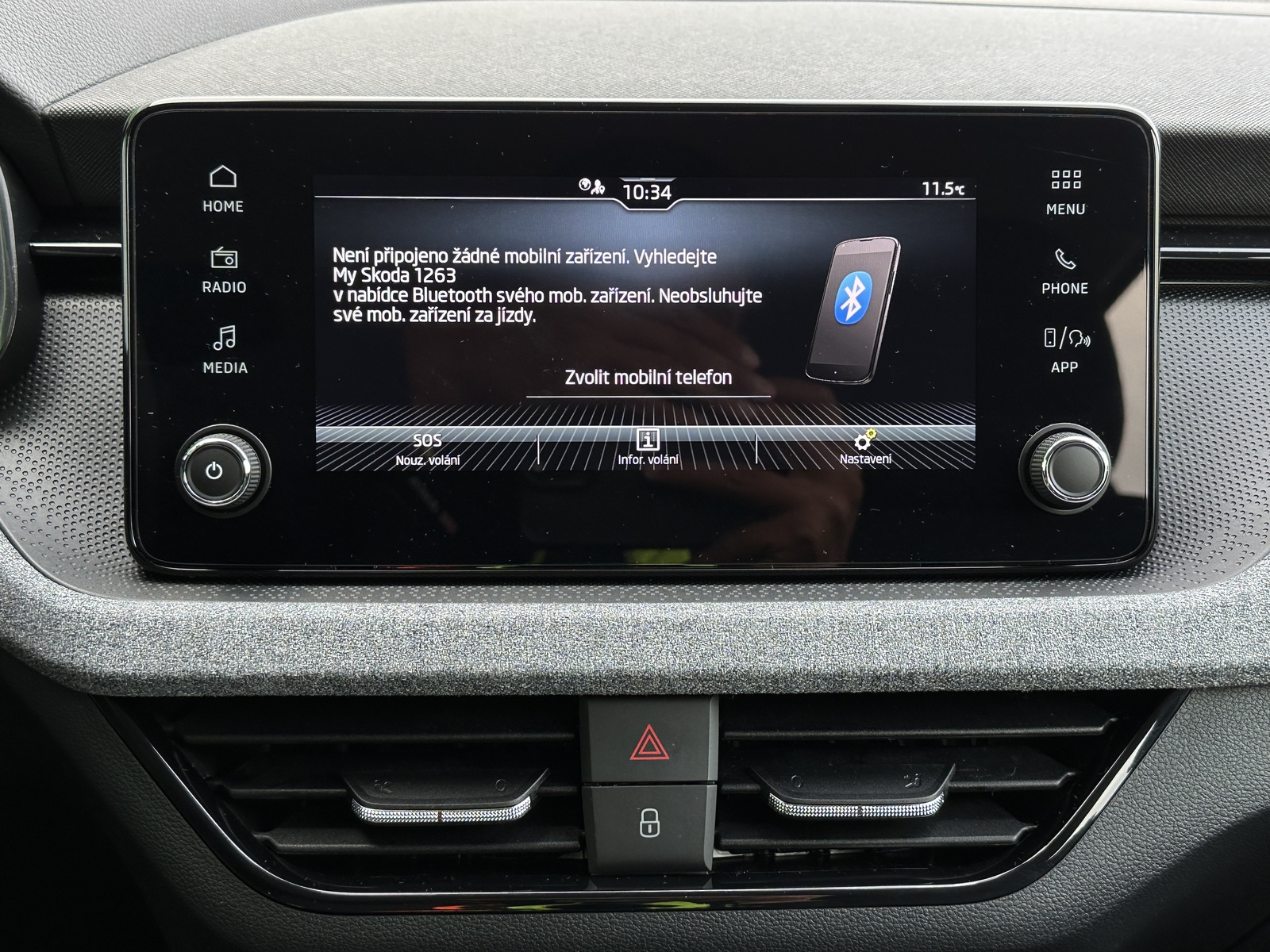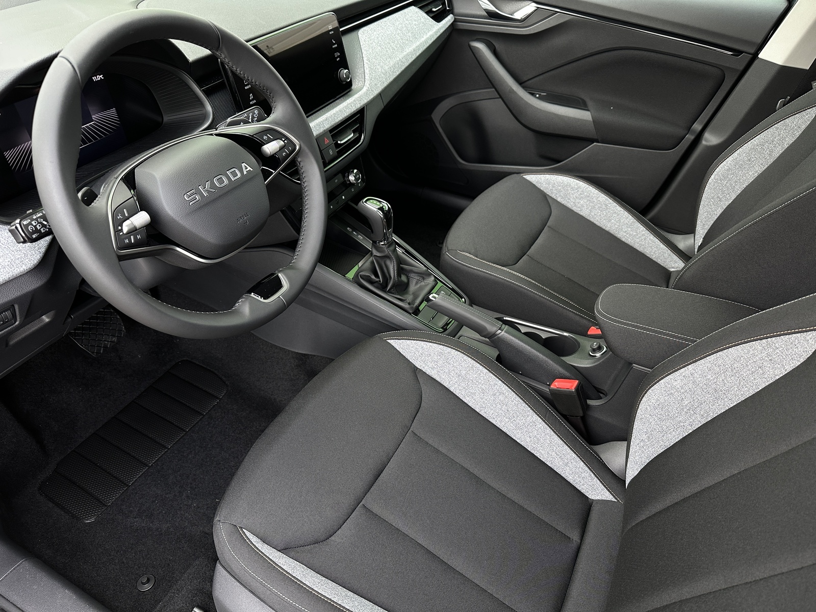 87/10853 Škoda Kamiq 1.0TSi 85kW/116PS, 7st. Automatická převodovka DSG, Tovární záruka Škoda Auto 5let/100.000km, Výbava vozu: Paket Interiér PLUS - (Dvouzónová automatická klimatizace - Climatronic, Bezdrátový Smartlink, 8x reproduktor, 2x USB-C vzadu), Dvojitá podlaha v zavazadlovém prostoru, Kola z lehkých slitin ALU Škoda "MONTADO" 6Jx16" Černá/Leštěná, Interiér Loft – černá/šedá, Potah sedadel – látka, LED světlomety s LED denním svícením, Upozornění na únavu řidiče, LED zadní světla, Asistent rozjezdu do kopce, Přední mlhové světlomety, Tempomat, Front Assist – varování a brzdění při hrozící kolizi s vozidly, chodci a cyklisty, 6x airbag, Deaktivace airbagu spolujezdce, Asistent udržování jízdního pruhu – Lane Assist, 3x ISOFIX a Top Tether – 1x vpředu, 2x vzadu, Zadní parkovací senzory – PDC, Rozpoznávání dopravních značek, Virtual Cockpit Mini 8", Startování tlačítkem a centrální zamykání s dálkovým ovládáním, Senzor světla, Loketní opěrka, Vnější zpětná zrcátka elektricky nastavitelná a vyhřívaná, Elektrická okna vpředu i vzadu, 2x USB-C, Deštník ve dveřích řidiče, Sada na opravu pneumatik, Multifunkční kožený volant, Hlavice řadicí páky a madlo ruční brzdy z kůže, Vyhřívaná přední sedadla, Výškově nastavitelné sedadlo řidiče i spolujezdce, Bederní opěrky na předních sedadlech, Infotainment Media 8" – (Bluetooth, 4 reproduktory, DAB), Nouzové volání SOS eCall+, Zadní parkovací kamera, 2x USB-C vzadu, Bezdrátový SmartLink, 8 reproduktorů, Nový vůz ČR, Servisní kniha + dokumentace Škoda Auto, Možnost odpočtu DPH 21%, Skladem - ihned k odběru.