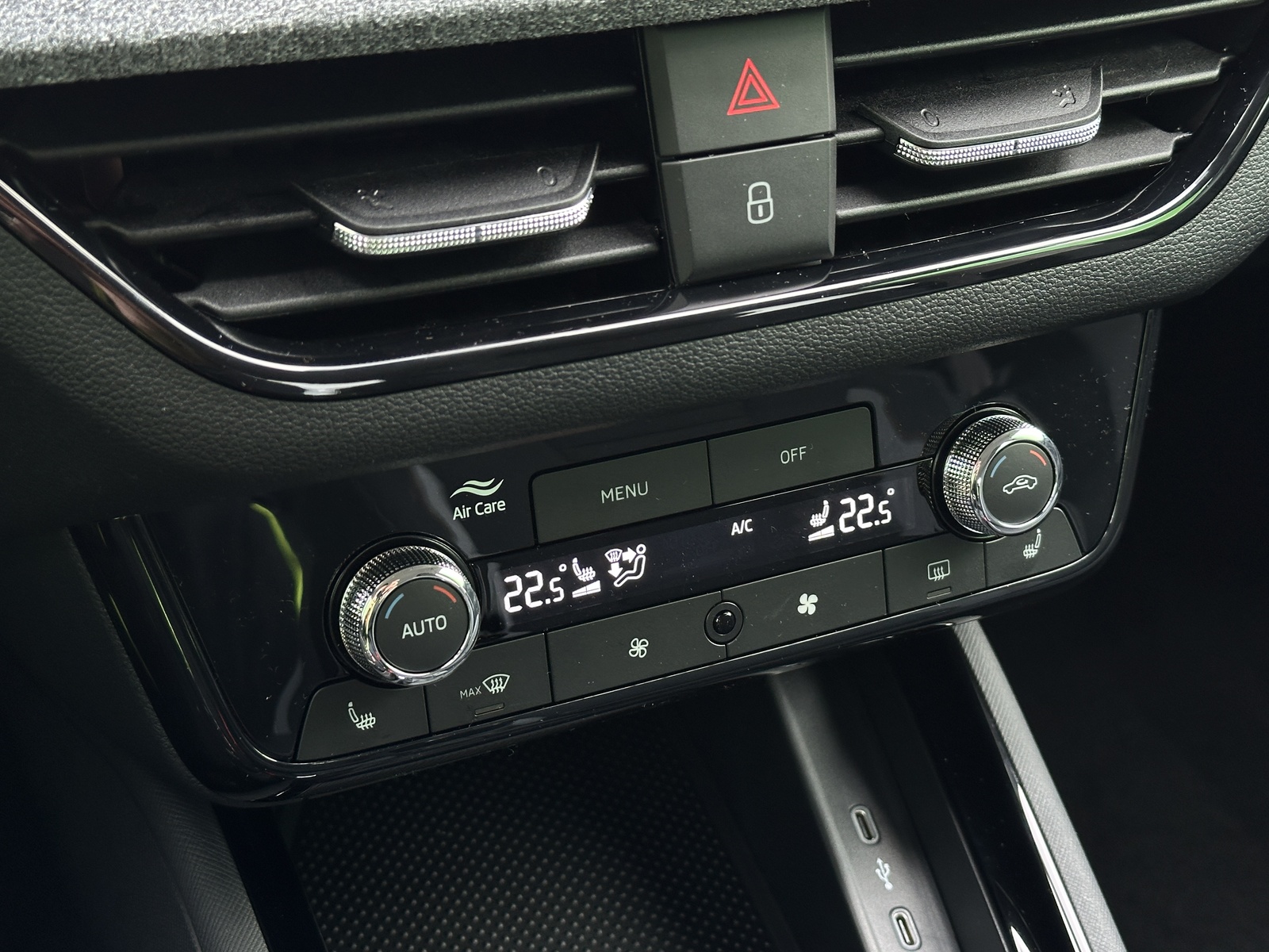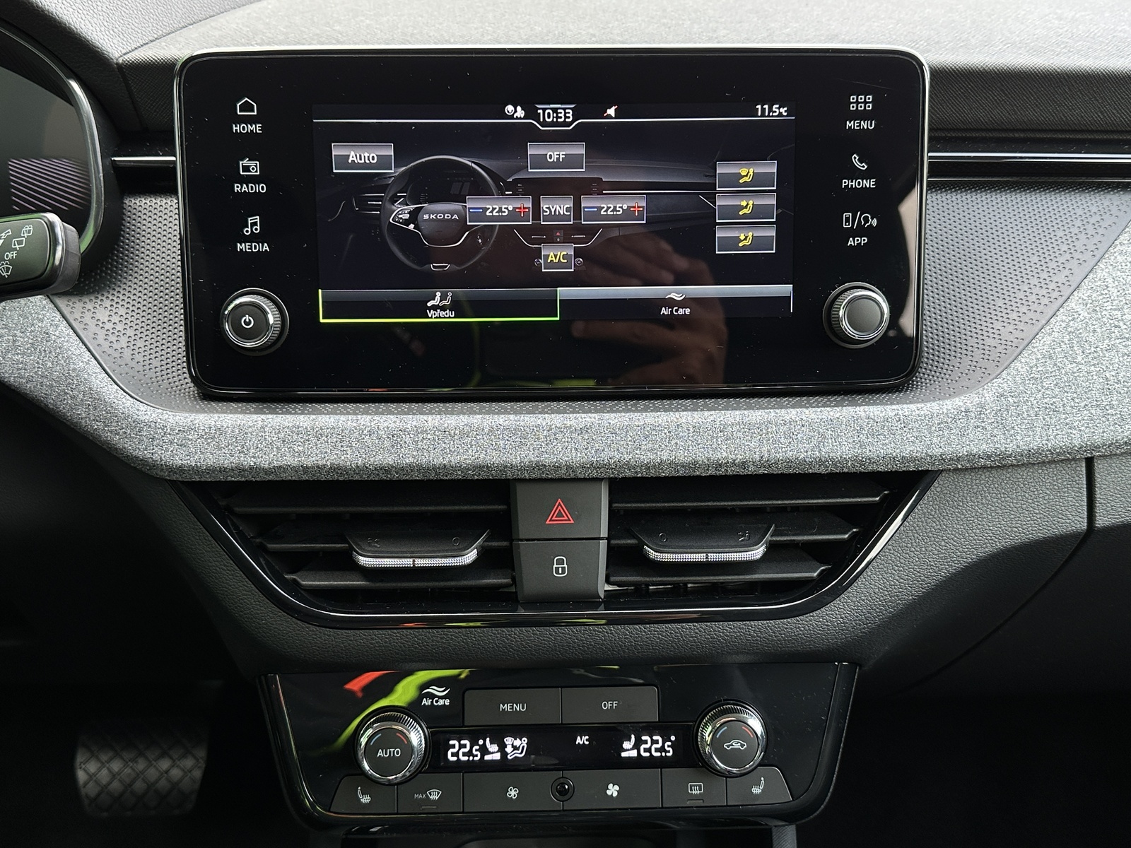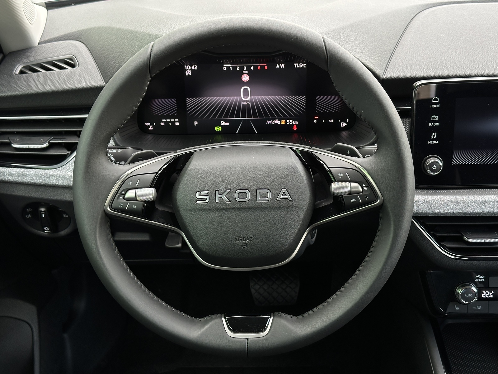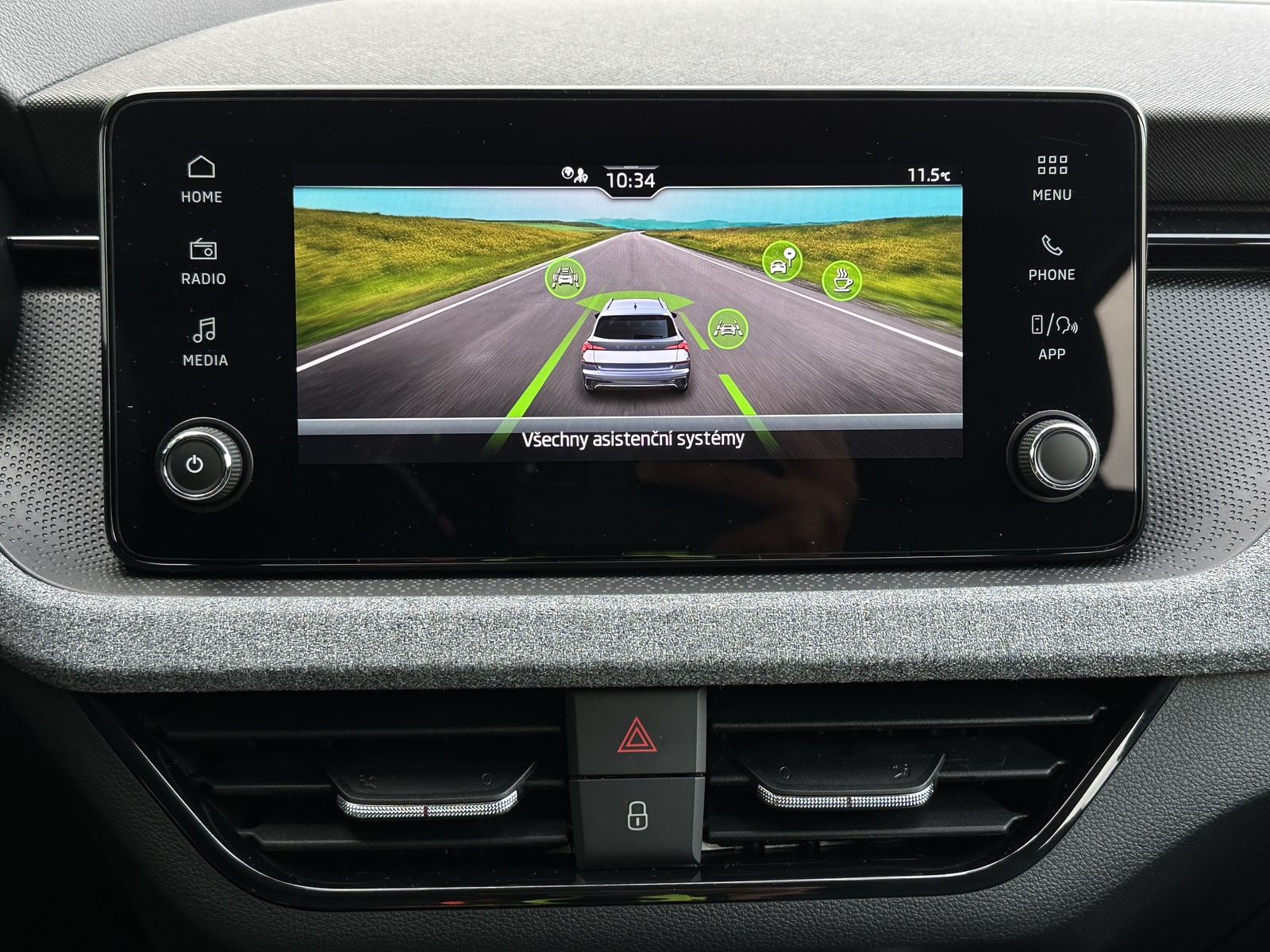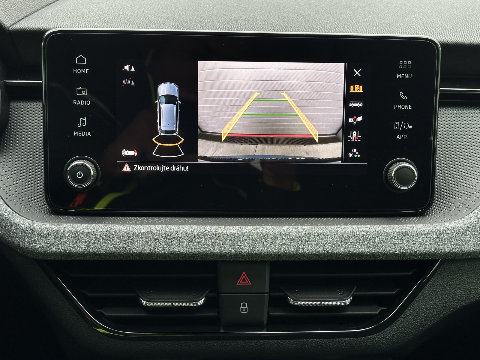 87/10853 Škoda Kamiq 1.0TSi 85kW/116PS, 7st. Automatická převodovka DSG, Tovární záruka Škoda Auto 5let/100.000km, Výbava vozu: Paket Interiér PLUS - (Dvouzónová automatická klimatizace - Climatronic, Bezdrátový Smartlink, 8x reproduktor, 2x USB-C vzadu), Dvojitá podlaha v zavazadlovém prostoru, Kola z lehkých slitin ALU Škoda "MONTADO" 6Jx16" Černá/Leštěná, Interiér Loft – černá/šedá, Potah sedadel – látka, LED světlomety s LED denním svícením, Upozornění na únavu řidiče, LED zadní světla, Asistent rozjezdu do kopce, Přední mlhové světlomety, Tempomat, Front Assist – varování a brzdění při hrozící kolizi s vozidly, chodci a cyklisty, 6x airbag, Deaktivace airbagu spolujezdce, Asistent udržování jízdního pruhu – Lane Assist, 3x ISOFIX a Top Tether – 1x vpředu, 2x vzadu, Zadní parkovací senzory – PDC, Rozpoznávání dopravních značek, Virtual Cockpit Mini 8", Startování tlačítkem a centrální zamykání s dálkovým ovládáním, Senzor světla, Loketní opěrka, Vnější zpětná zrcátka elektricky nastavitelná a vyhřívaná, Elektrická okna vpředu i vzadu, 2x USB-C, Deštník ve dveřích řidiče, Sada na opravu pneumatik, Multifunkční kožený volant, Hlavice řadicí páky a madlo ruční brzdy z kůže, Vyhřívaná přední sedadla, Výškově nastavitelné sedadlo řidiče i spolujezdce, Bederní opěrky na předních sedadlech, Infotainment Media 8" – (Bluetooth, 4 reproduktory, DAB), Nouzové volání SOS eCall+, Zadní parkovací kamera, 2x USB-C vzadu, Bezdrátový SmartLink, 8 reproduktorů, Nový vůz ČR, Servisní kniha + dokumentace Škoda Auto, Možnost odpočtu DPH 21%, Skladem - ihned k odběru.