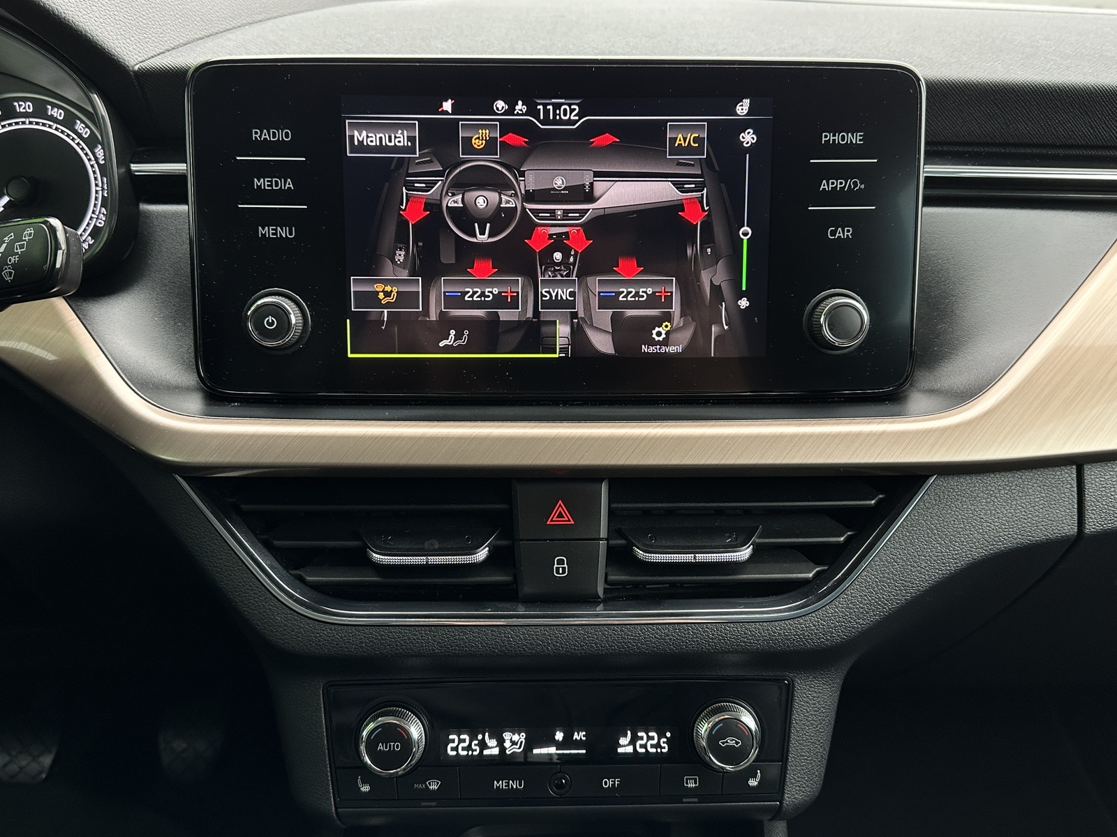 331/10855 Škoda Kamiq Style Comfort 1.0TSi 85kW/116PS, 6st. Manuální převodovka, Výbava vozu: Paket Comfort - (El. otvírání zavazadlového prostoru, Loketní opěrka vzadu, Vyhřívání sedadel vpředu a vzadu, Vyhřívaný kožený volant), Kola z lehkých slitin ALU Škoda "BRAGA" 6,5Jx17", Příprava pro tažné zařízení, Front Assist - Asistent s varováním a brzděním v případě hrozící srážky s vozidly, chodci a cyklisty, 12V zásuvka v zavazadlovém prostoru, tříbodové bezpečnostní pásy vzadu, asistent rozjezdu do kopce, přední sedadla s nastavitelnou bederní opěrkou, Bluetooth, Sunset - tónovaná zadní okna, Elektronický stabilizační program - ESP, Kontrola tlaku v pneumatikách, Lane Assist - Asistent vedení v jízdním pruhu, Jumbo Box s nastavitelnou loketní opěrkou, Výškově nastavitelná přední sedadla, 12V zásuvka vpředu, Maxi DOT, Start/Stop systém, Zadní stěrač, Tempomat, tónované čelní sklo, USB, Zadní parkovací kamera, Dvouzónová automatická klimatizace Climatronic, Elektrická okna vpředu i vzadu, Bi-LED přední světlomety, Smartlink - zrcadlení aplikací z telefonu do Infotainmentu vozidla, Dešťový senzor, Zadní parkovací senzory - PDC/Z, Infotainment Bolero 8", Vyhřívané trysky ostřikovačů čelního skla, Vnitřní zpětné zrcátko s automatickým stmíváním, Elektricky vyhřívaná a sklopná vnější zpětná zrcátka, Vyhřívaná přední sedadla, 6x Airbag, KESSY - bezklíčové odemykání a startování, Mlhové světlomety, Top LED zadní světlomety s animovanými směrovkami, Střešní nosiče - stříbrné, Kožená hlavice řadicí páky, Multifunkční kožený volant, Servisní kniha + dokumentace Škoda Auto, Možnost odpočtu DPH 21%, Skladem - ihned k odběru.