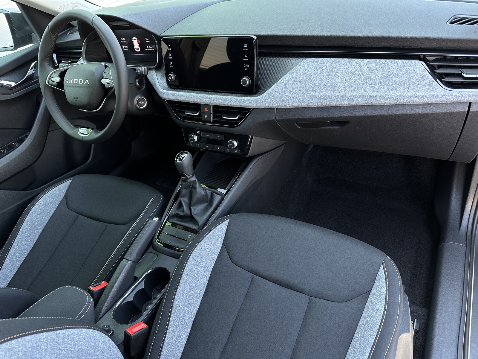 299/10951 Škoda Kamiq 1.0TSi 85kW/116PS, 6st. Manuální převodovka, Tovární záruka Škoda Auto 5let/100.000km, Výbava vozu: Paket Interiér PLUS - (Dvouzónová automatická klimatizace - Climatronic, Bezdrátový Smartlink, 8x reproduktor, 2x USB-C vzadu), Dvojitá podlaha v zavazadlovém prostoru, Interiér Loft – černá/šedá, Potah sedadel – látka, LED světlomety s LED denním svícením, Upozornění na únavu řidiče, LED zadní světla, Asistent rozjezdu do kopce, Přední mlhové světlomety, Tempomat, Front Assist – varování a brzdění při hrozící kolizi s vozidly, chodci a cyklisty, 6x airbag, Deaktivace airbagu spolujezdce, Asistent udržování jízdního pruhu – Lane Assist, 3x ISOFIX a Top Tether – 1x vpředu, 2x vzadu, Zadní parkovací senzory – PDC, Rozpoznávání dopravních značek, Virtual Cockpit Mini 8", Startování tlačítkem a centrální zamykání s dálkovým ovládáním, Senzor světla, Loketní opěrka, Vnější zpětná zrcátka elektricky nastavitelná a vyhřívaná, Elektrická okna vpředu i vzadu, 2x USB-C, Deštník ve dveřích řidiče, Sada na opravu pneumatik, Multifunkční kožený volant, Hlavice řadicí páky a madlo ruční brzdy z kůže, Vyhřívaná přední sedadla, Výškově nastavitelné sedadlo řidiče i spolujezdce, Bederní opěrky na předních sedadlech, Infotainment Media 8" – (Bluetooth, 4 reproduktory, DAB), Nouzové volání SOS eCall+, Kola z lehkých slitin ALU Škoda "NYOTA" 6Jx16", Zadní parkovací kamera, 2x USB-C vzadu, Bezdrátový SmartLink, 8 reproduktorů, Nový vůz ČR, Servisní kniha + dokumentace Škoda Auto, Možnost odpočtu DPH 21%, Skladem - ihned k odběru.