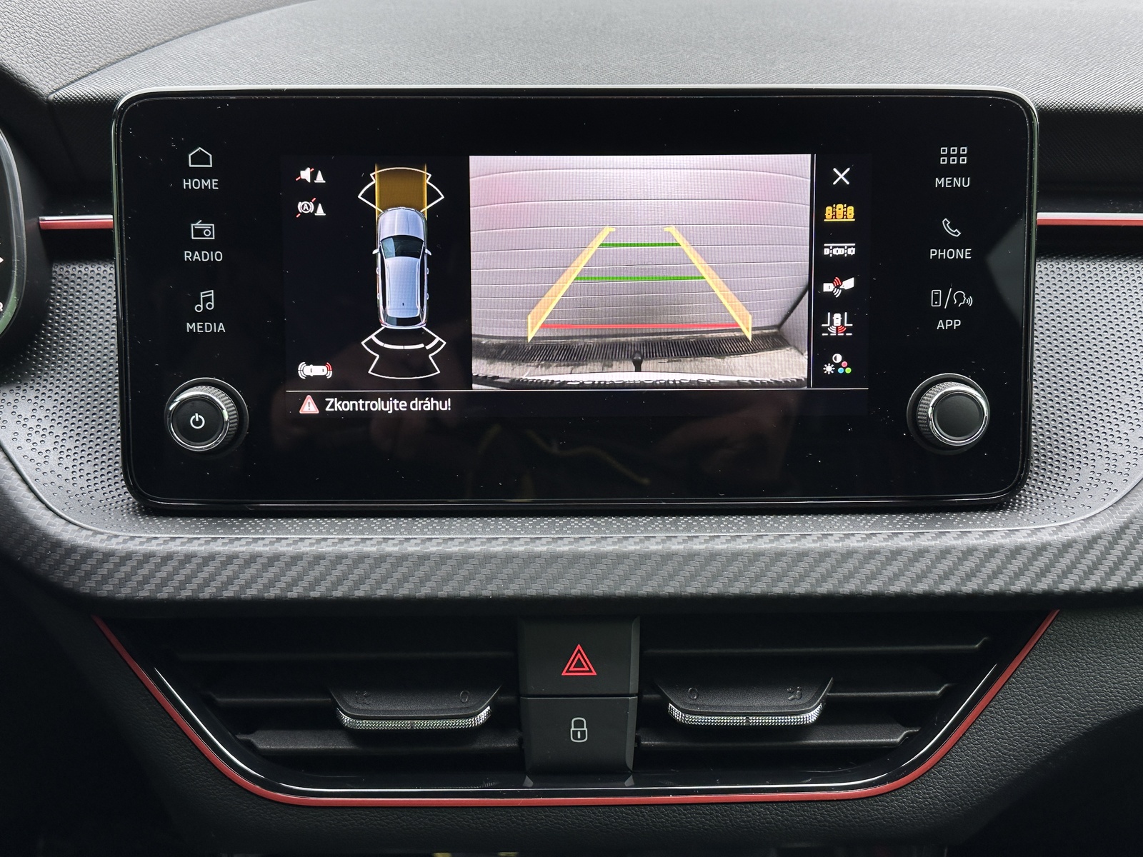 371/11056 Škoda Kamiq Monte Carlo 1.0TSi 85kW/116PS, 7.st Automatická převodovka, Tovární záruka Škoda Auto 5let/100.000km, Výbava vozu: Tažné zařízení sklopné - el. odjistitelné, Vyhřívané čelní sklo, Dvojitá podlaha v zavazadlovém prostoru, Ocelové rezervní kolo, Kola z lehkých slitin ALU Škoda "URSA" 7Jx18" Černá/Leštěná, Panoramatická střecha, Parkovací kamera vzadu, Parkovací senzory vpředu a vzadu - PDC P/Z, Asistent udržování v jízdním pruhu - Lane Assist, Asistent varování a brzdění při hrozící kolizi s vozidly, chodci a cyklisty - Front Assist, Asistent rozpoznání únavy řidiče, Asistent rozjezdu do kopce, Rozpoznávání dopravních značek, Systém Start/Stop, Volba jízdního režimu, Bezklíčové odemykání a startování - KESSY, Tempomat s omezovačem rychlosti, Vyhřívaný multifunkční kožený volant pro DSG s pádly pod volantem - výškově a podélně nastavitelný, Kožená hlavice řadicí páky a madlo ruční brzdy, Sportovní přední sedadla, Bederní opěrky na předních sedadlech, Výškově nastavitelné sedadlo řidiče a spolujezdce, Dvouzónová automatická klimatizace - Climatronic, Vyhřívaná přední sedadla s oddělenou regulací, Loketní opěrka s Jumbo Boxem, Zadní loketní opěrka, Sportovní interiér Monte Carlo s černou stropnicí, Potah sedadel – látka, Vnitřní zpětné zrcátko s automatickým stmíváním, Elektrické ovládání oken vpředu i vzadu, Zatmavená zadní okna - Sunset, Vnější zpětná zrcátka elektricky sklopná, nastavitelná a vyhřívaná, Virtuální Cockpit, Infotainment Media 8", Bezdrátový Smartlink, Bluetooth, DAB, 8x Reproduktor, Bezdrátové nabíjení telefonu, 2x USB-C a 12V zásuvka předu i vzadu, Ambientní LED osvětlení interiéru, Matrix-LED přední světlomety, Mlhové světlomety, LED zadní světla s animovanými ukazateli směru jízdy, Senzor světla a deště, Kontrola tlaku v pneumatikách, Sportovní kryty pedálů, Dekorativní prahové lišty, Černě lakované doplňky karoserie, 3x Isofix a Top Tether, ABS, ESP, 6x Airbag, Deaktivace airbagu spolujezdce, Centrální zamykání s dálkovým ovládáním, Alarm, Nouzové volání SOS - eCall, Zatížení nebržděného tažného zařízení - 610kg, Zatížení bržděného tažného zařízení - 1200kg, Nový vůz s registrací 25. 11. 2025. Servisní kniha + dokumentace Škoda Auto, Možnost odpočtu DPH 21%, Termín odběru a předání od 21. 05. 2026.