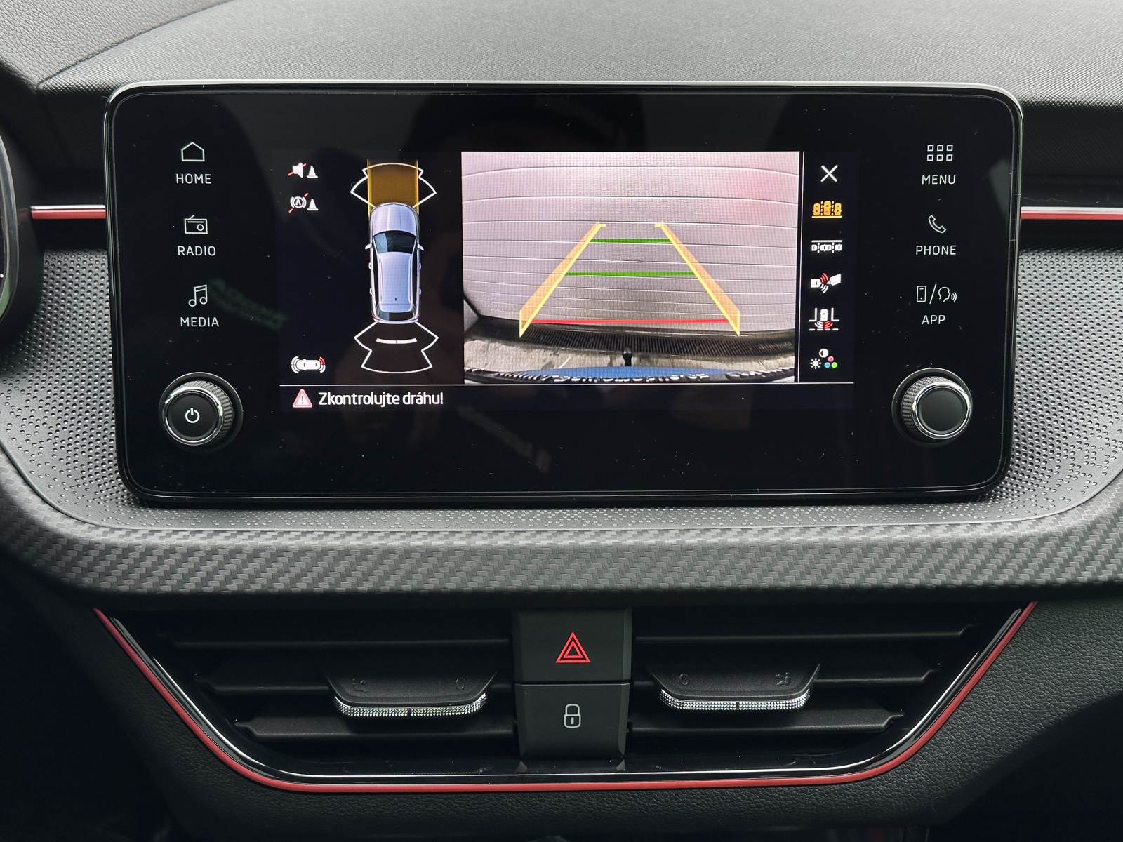 381/11058 Škoda Kamiq Monte Carlo 1.0TSi 85kW/116PS, 7.st Automatická převodovka, Tovární záruka Škoda Auto 5let/100.000km, Výbava vozu: Tažné zařízení sklopné - el. odjistitelné, Vyhřívané čelní sklo, Dvojitá podlaha v zavazadlovém prostoru, Ocelové rezervní kolo, Kola z lehkých slitin ALU Škoda "URSA" 7Jx18" Černá/Leštěná, Panoramatická střecha, Parkovací kamera vzadu, Parkovací senzory vpředu a vzadu - PDC P/Z, Asistent udržování v jízdním pruhu - Lane Assist, Asistent varování a brzdění při hrozící kolizi s vozidly, chodci a cyklisty - Front Assist, Asistent rozpoznání únavy řidiče, Asistent rozjezdu do kopce, Rozpoznávání dopravních značek, Systém Start/Stop, Volba jízdního režimu, Bezklíčové odemykání a startování - KESSY, Tempomat s omezovačem rychlosti, Vyhřívaný multifunkční kožený volant pro DSG s pádly pod volantem - výškově a podélně nastavitelný, Kožená hlavice řadicí páky a madlo ruční brzdy, Sportovní přední sedadla, Bederní opěrky na předních sedadlech, Výškově nastavitelné sedadlo řidiče a spolujezdce, Dvouzónová automatická klimatizace - Climatronic, Vyhřívaná přední sedadla s oddělenou regulací, Loketní opěrka s Jumbo Boxem, Zadní loketní opěrka, Sportovní interiér Monte Carlo s černou stropnicí, Potah sedadel – látka, Vnitřní zpětné zrcátko s automatickým stmíváním, Elektrické ovládání oken vpředu i vzadu, Zatmavená zadní okna - Sunset, Vnější zpětná zrcátka elektricky sklopná, nastavitelná a vyhřívaná, Virtuální Cockpit, Infotainment Media 8", Bezdrátový Smartlink, Bluetooth, DAB, 8x Reproduktor, Bezdrátové nabíjení telefonu, 2x USB-C a 12V zásuvka předu i vzadu, Ambientní LED osvětlení interiéru, Matrix-LED přední světlomety, Mlhové světlomety, LED zadní světla s animovanými ukazateli směru jízdy, Senzor světla a deště, Kontrola tlaku v pneumatikách, Sportovní kryty pedálů, Dekorativní prahové lišty, Černě lakované doplňky karoserie, 3x Isofix a Top Tether, ABS, ESP, 6x Airbag, Deaktivace airbagu spolujezdce, Centrální zamykání s dálkovým ovládáním, Alarm, Nouzové volání SOS - eCall, Zatížení nebržděného tažného zařízení - 610kg, Zatížení bržděného tažného zařízení - 1200kg, Nový vůz s registrací 25. 11. 2025. Servisní kniha + dokumentace Škoda Auto, Možnost odpočtu DPH 21%, Termín odběru a předání od 19. 05. 2026.
