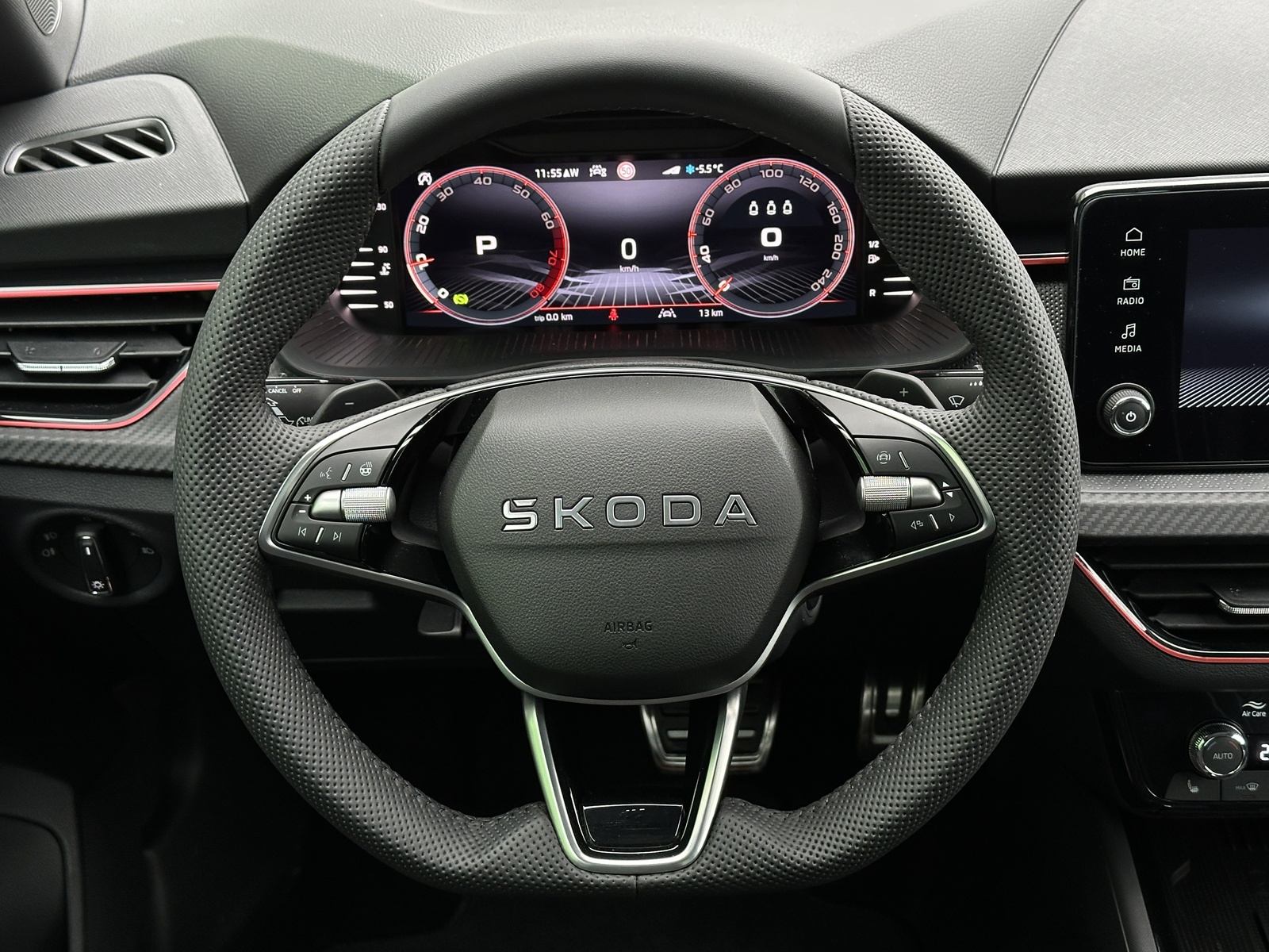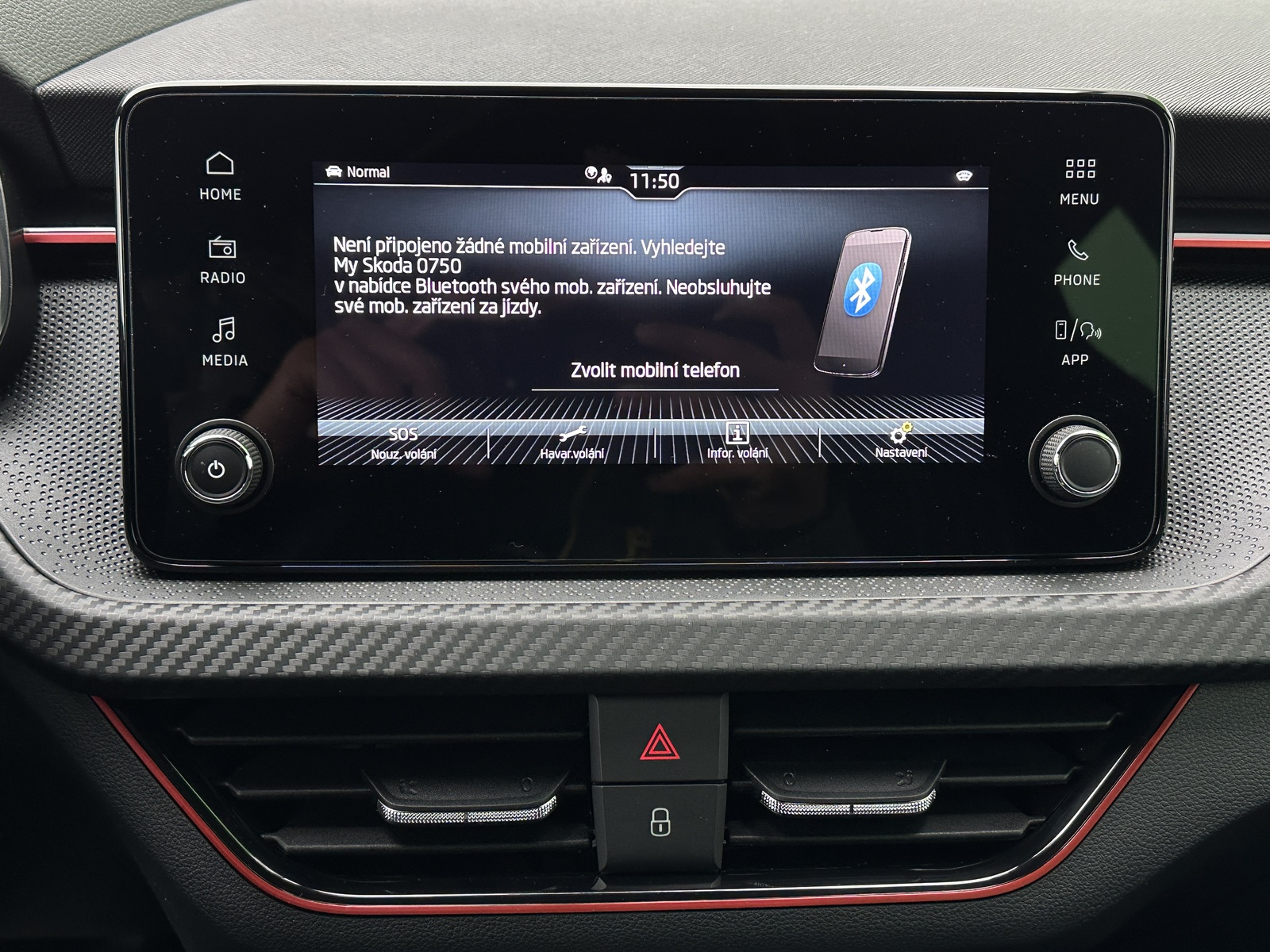 383/11060 Škoda Kamiq Monte Carlo 1.0TSi 85kW/116PS, 7.st Automatická převodovka, Tovární záruka Škoda Auto 5let/100.000km, Výbava vozu: Tažné zařízení sklopné - el. odjistitelné, Vyhřívané čelní sklo, Dvojitá podlaha v zavazadlovém prostoru, Ocelové rezervní kolo, Kola z lehkých slitin ALU Škoda "URSA" 7Jx18" Černá/Leštěná, Panoramatická střecha, Parkovací kamera vzadu, Parkovací senzory vpředu a vzadu - PDC P/Z, Asistent udržování v jízdním pruhu - Lane Assist, Asistent varování a brzdění při hrozící kolizi s vozidly, chodci a cyklisty - Front Assist, Asistent rozpoznání únavy řidiče, Asistent rozjezdu do kopce, Rozpoznávání dopravních značek, Systém Start/Stop, Volba jízdního režimu, Bezklíčové odemykání a startování - KESSY, Tempomat s omezovačem rychlosti, Vyhřívaný multifunkční kožený volant pro DSG s pádly pod volantem - výškově a podélně nastavitelný, Kožená hlavice řadicí páky a madlo ruční brzdy, Sportovní přední sedadla, Bederní opěrky na předních sedadlech, Výškově nastavitelné sedadlo řidiče a spolujezdce, Dvouzónová automatická klimatizace - Climatronic, Vyhřívaná přední sedadla s oddělenou regulací, Loketní opěrka s Jumbo Boxem, Zadní loketní opěrka, Sportovní interiér Monte Carlo s černou stropnicí, Potah sedadel – látka, Vnitřní zpětné zrcátko s automatickým stmíváním, Elektrické ovládání oken vpředu i vzadu, Zatmavená zadní okna - Sunset, Vnější zpětná zrcátka elektricky sklopná, nastavitelná a vyhřívaná, Virtuální Cockpit, Infotainment Media 8", Bezdrátový Smartlink, Bluetooth, DAB, 8x Reproduktor, Bezdrátové nabíjení telefonu, 2x USB-C a 12V zásuvka předu i vzadu, Ambientní LED osvětlení interiéru, Matrix-LED přední světlomety, Mlhové světlomety, LED zadní světla s animovanými ukazateli směru jízdy, Senzor světla a deště, Kontrola tlaku v pneumatikách, Sportovní kryty pedálů, Dekorativní prahové lišty, Černě lakované doplňky karoserie, 3x Isofix a Top Tether, ABS, ESP, 6x Airbag, Deaktivace airbagu spolujezdce, Centrální zamykání s dálkovým ovládáním, Alarm, Nouzové volání SOS - eCall, Zatížení nebržděného tažného zařízení - 610kg, Zatížení bržděného tažného zařízení - 1200kg, Nový vůz s registrací 25. 11. 2025. Servisní kniha + dokumentace Škoda Auto, Možnost odpočtu DPH 21%, Termín odběru a předání od 21. 05. 2026.