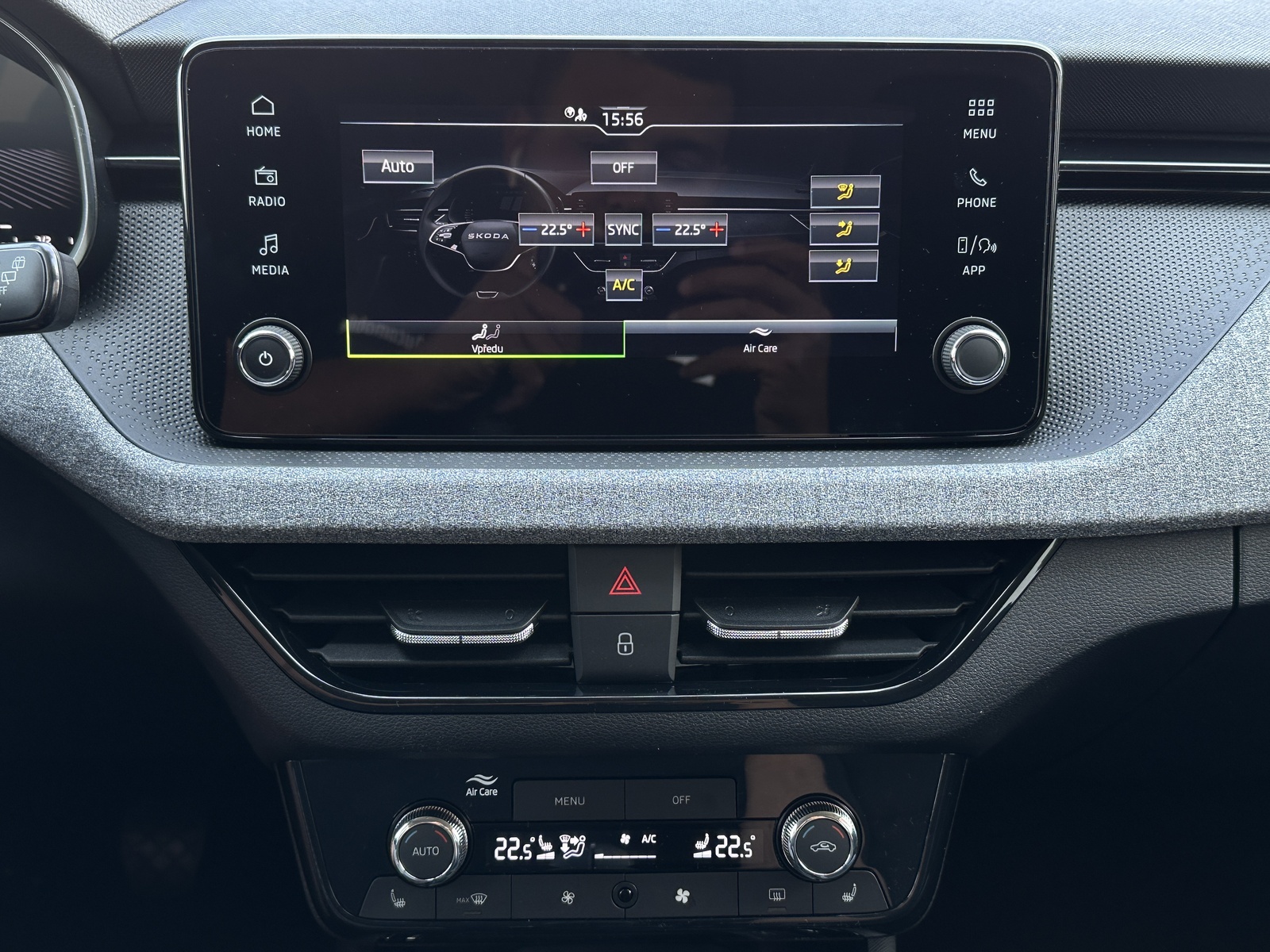 387/11064 Škoda Kamiq 1.0TSi 70kW/95PS, 5st. Manuální převodovka, Tovární záruka Škoda Auto 5let/100.000km, Výbava vozu: Paket Interiér PLUS - (Dvouzónová automatická klimatizace - Climatronic, Bezdrátový Smartlink, 8x reproduktor, 2x USB-C vzadu), Sunset - zatmavená zadní okna, Kola z lehkých slitin ALU Škoda "MONTADO" 6Jx16" černá/leštěná, Interiér Loft – černá/šedá, Potah sedadel – látka, LED světlomety s LED denním svícením, Upozornění na únavu řidiče, LED zadní světla, Asistent rozjezdu do kopce, Přední mlhové světlomety, Tempomat, Front Assist – varování a brzdění při hrozící kolizi s vozidly, chodci a cyklisty, 6x airbag, Deaktivace airbagu spolujezdce, Asistent udržování jízdního pruhu – Lane Assist, 3x ISOFIX a Top Tether – 1x vpředu, 2x vzadu, Zadní parkovací senzory – PDC, Rozpoznávání dopravních značek, Virtual Cockpit Mini 8", Startování tlačítkem a centrální zamykání s dálkovým ovládáním, Senzor světla, Loketní opěrka, Vnější zpětná zrcátka elektricky nastavitelná a vyhřívaná, Elektrická okna vpředu i vzadu, 2x USB-C, Deštník ve dveřích řidiče, Sada na opravu pneumatik, Multifunkční kožený volant, Hlavice řadicí páky a madlo ruční brzdy z kůže, Vyhřívaná přední sedadla, Výškově nastavitelné sedadlo řidiče i spolujezdce, Bederní opěrky na předních sedadlech, Infotainment Media 8" – (Bluetooth, 4 reproduktory, DAB), Nouzové volání SOS eCall+, Zadní parkovací kamera, 2x USB-C vzadu, Bezdrátový SmartLink, 8 reproduktorů, Nový vůz ČR, Servisní kniha + dokumentace Škoda Auto, Možnost odpočtu DPH 21%, Skladem - ihned k odběru.