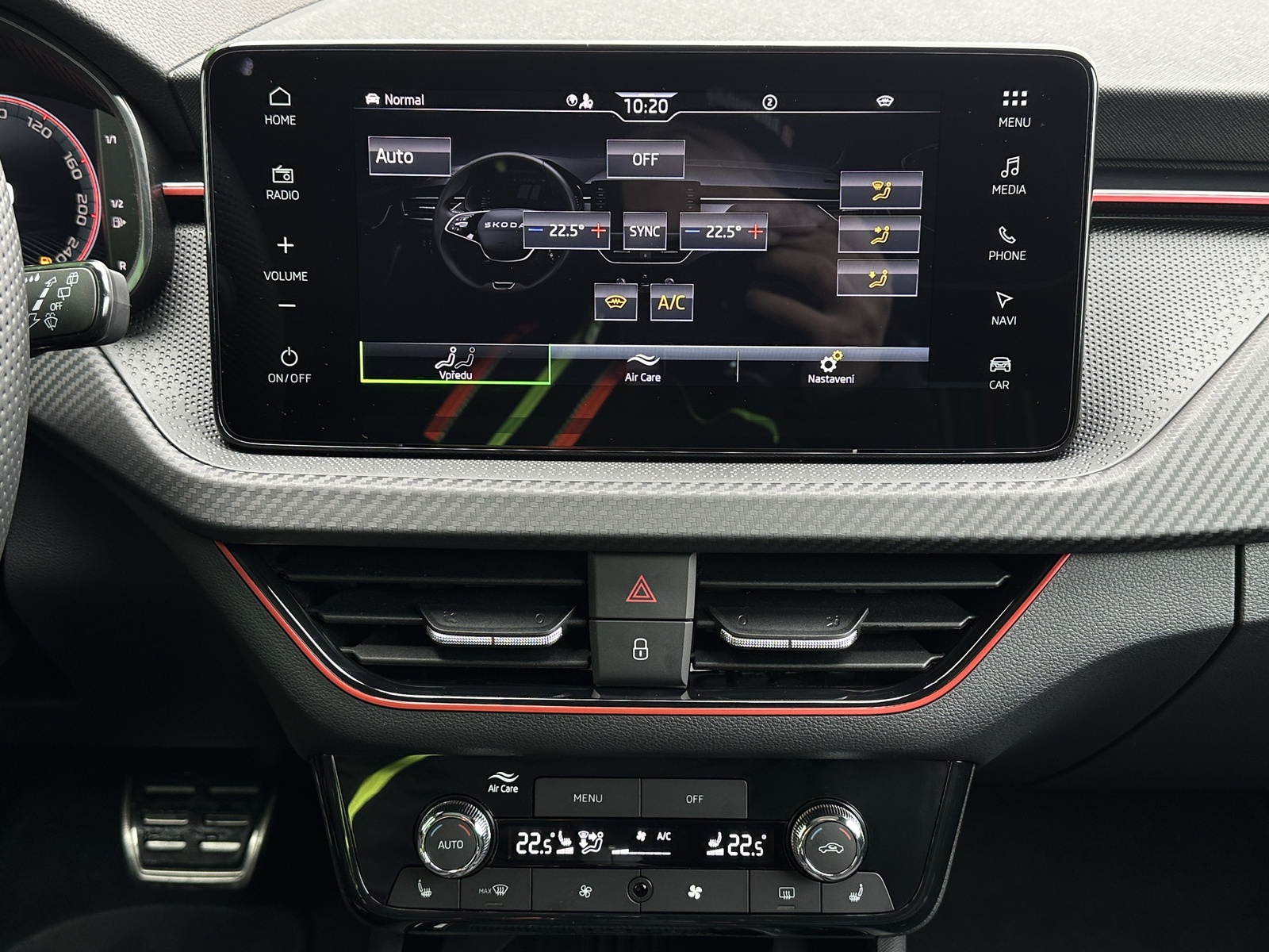 183/11138 Škoda Kamiq Monte Carlo 1.5TSi 110kW/150PS, 7st. Automatická převodovka DSG, Tovární záruka Škoda Auto 5let/100.000km, Výbava vozu: Tažné zařízení sklopné - el. odjistitelné, Paket NAVI - (Infotainment s navigací, Webradio, Virtuální Cockpit, Digitální asistentka Laura), Paket City PREMIUM - (Parkovací kamera vzadu, Parkovací senzory vpředu - PDC/P, KESSY s alarmem, Volba jízdního režimu, Virtuální pedál, Virtuální cockpit, Automatické parkování), Asistovaná jízda 1.5 PLUS - (Adaptivní tempomat - ACC, Adaptivní asistent vedení v jízdním pruhu - Adaptivní Lane Assist, Asistent hlídání mrtvého úhlu - Side Assist), Vyhřívané čelní sklo, Dvojitá podlaha v zavazadlovém prostoru, Kola z lehkých slitin ALU Škoda "URSA" 7Jx18" Černá/Leštěná, Panoramatická střecha, Parkovací senzory vpředu a vzadu – PDC P/Z, Asistent varování a brzdění při hrozící kolizi s vozidly, chodci a cyklisty - Front Assist, Asistent rozpoznání únavy řidiče, Asistent rozjezdu do kopce, Rozpoznávání dopravních značek, Systém Start/Stop, Bezklíčové odemykání a startování - KESSY, Vyhřívaný multifunkční kožený volant pro DSG s pádly pod volantem - výškově a podélně nastavitelný, Kožená hlavice řadicí páky a madlo ruční brzdy, Sportovní přední sedadla, Bederní opěrky na předních sedadlech, Výškově nastavitelné sedadlo řidiče a spolujezdce, Dvouzónová automatická klimatizace - Climatronic, Vyhřívaná přední sedadla s oddělenou regulací, Loketní opěrka s Jumbo Boxem, Zadní loketní opěrka, Sportovní interiér Monte Carlo s černou stropnicí, Potah sedadel – látka, Vnitřní zpětné zrcátko s automatickým stmíváním, Elektrické ovládání oken vpředu i vzadu, Zatmavená zadní okna - Sunset, Vnější zpětná zrcátka elektricky sklopná, nastavitelná a vyhřívaná, Bezdrátový Smartlink, Bluetooth, DAB, 8x reproduktor, Bezdrátové nabíjení telefonu, 2x USB-C a 12 V zásuvka vpředu i vzadu, Ambientní LED osvětlení interiéru, Matrix-LED přední světlomety, Mlhové světlomety, LED zadní světla s animovanými ukazateli směru jízdy, Senzor světla a deště, Kontrola tlaku v pneumatikách, Sada na opravu pneumatik, 3x Isofix a Top Tether, ABS, ESP, 6x Airbag, Deaktivace airbagu spolujezdce, Nouzové volání SOS - eCall, Sportovní kryty pedálů, Dekorativní prahové lišty, Černě lakované doplňky karoserie, Střešní nosič, Zatížení bržděného tažného zařízení - 1250kg, Zatížení nebržděného tažného zařízení - 640kg, NOVÝ VŮZ, Servisní kniha + dokumentace Škoda Auto, Možnost odpočtu DPH 21%, Skladem - ihned k odběru.