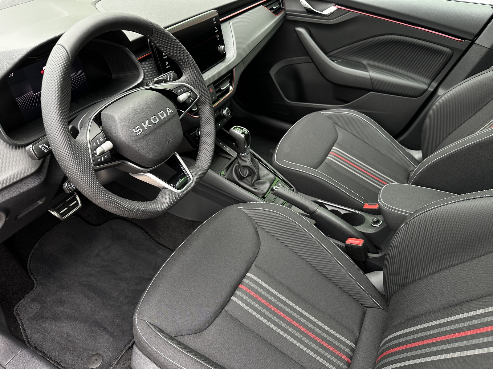 362/11174 Škoda Kamiq Monte Carlo 1.0TSi DSG 85kW/116PS, 7st. Automatická převodovka DSG, Tovární záruka Škoda Auto 5let/100.000km, Výbava vozu: Paket Asistovaná jízda 1.5 PLUS - (Adaptivní tempomat - ACC, Lane Assist Plus - Adaptivní vedení v jízdním pruhu, Side Assist - asistent varování mrtvého úhlu), Dvojitá podlaha zavazadlového prostoru, Kola z lehkých slitin ALU Škoda "URSA" 7Jx18" Černá/Leštěná, Vyhřívané čelní sklo, Matrix-LED přední světlomety, Panoramatická střecha, Interiér – sportovní Monte Carlo s černou stropnicí, Černě lakované doplňky karoserie, LED zadní světla s animovanými směrovkami, Vyhřívaný sportovní multifunkční kožený volant – pro DSG s pádly pod volantem, Sportovní kryty pedálů, Dekorativní prahové lišty, KESSY – bezklíčové odemykání a startování, Volba jízdních režimů, Zadní parkovací kamera, Parkovací senzory vpředu a vzadu – PDC, Mlhové světlomety, Elektricky sklopná vnější zrcátka s automatickým stmíváním, 2x USB-C vzadu, Dešťový senzor, Světelný senzor, Vnitřní zpětné zrcátko s automatickým stmíváním, Bezdrátové nabíjení pro Smartphone, Zadní loketní opěrka, Loketní opěrka s Jumbo Boxem vpředu, Dvouzónová automatická klimatizace Climatronic, Vyhřívaná přední sedadla, Bederní opěrky na předních sedadlech, Výškově nastavitelná sedadla řidiče a spolujezdce, Kožená hlavice řadicí páky a madlo ruční brzdy, Elektrické ovládání oken vpředu i vzadu, 12V zásuvka vpředu a vzadu, 2x USB-C, 8 reproduktorů, Bluetooth, DAB, Bezdrátový Smartlink - zrcadlení aplikací z mobilního telefonu na Infotainment vozu, Front Assist – varování a brzdění při hrozící kolizi s vozidly, chodci a cyklisty, Rozpoznávání dopravních značek, Upozornění na únavu řidiče, Asistent rozjezdu do kopce, Virtual Cockpit, 6x airbag, 3x Isofix a Top Tether, Deaktivace airbagu spolujezdce, Nouzové volání SOS - eCall, Potah sedadel – látka, Sunset – zatmavená zadní okna, Nový vůz s registrací, Servisní kniha + dokumentace Škoda Auto, Možnost odpočtu DPH 21%, Termín odběru a předání od 15.4.2026.