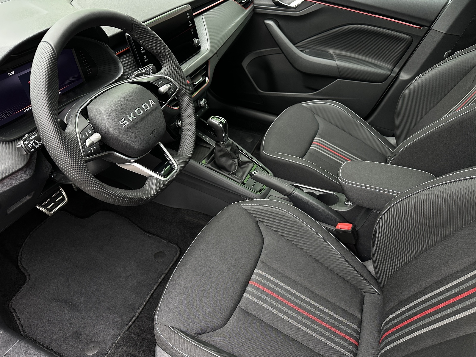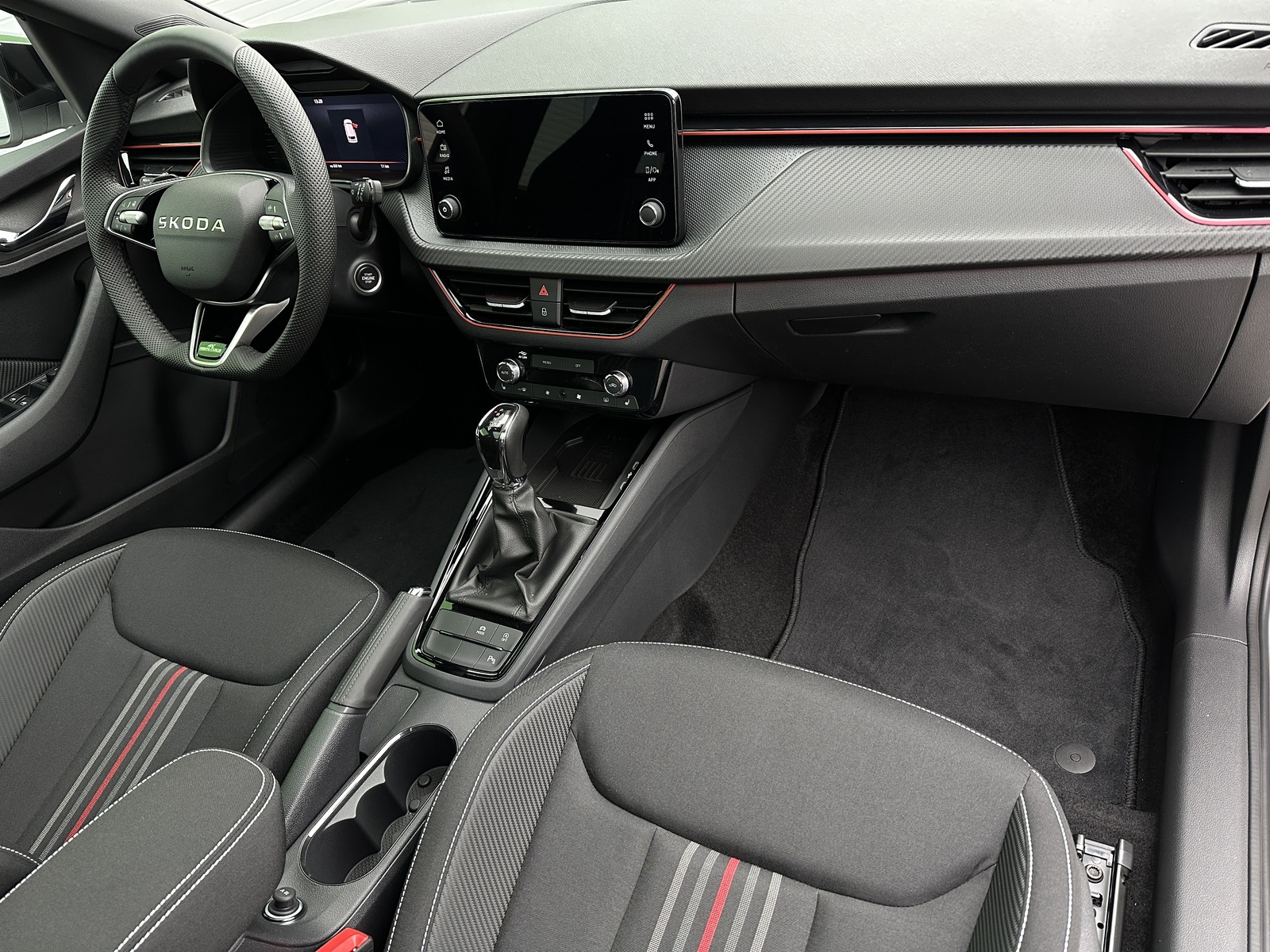 49/11180 Škoda Kamiq Monte Carlo 1.0TSi DSG 85kW/116PS, 7st. Automatická převodovka DSG, Tovární záruka Škoda Auto 5let/100.000km, Výbava vozu: Paket Asistovaná jízda 1.5 PLUS - (Adaptivní tempomat - ACC, Lane Assist Plus - Adaptivní vedení v jízdním pruhu, Side Assist - asistent varování mrtvého úhlu), Dvojitá podlaha zavazadlového prostoru, Kola z lehkých slitin ALU Škoda "URSA" 7Jx18" Černá/Leštěná, Vyhřívané čelní sklo, Matrix-LED přední světlomety, Panoramatická střecha, Interiér – sportovní Monte Carlo s černou stropnicí, Černě lakované doplňky karoserie, LED zadní světla s animovanými směrovkami, Vyhřívaný sportovní multifunkční kožený volant – pro DSG s pádly pod volantem, Sportovní kryty pedálů, Dekorativní prahové lišty, KESSY – bezklíčové odemykání a startování, Volba jízdních režimů, Zadní parkovací kamera, Parkovací senzory vpředu a vzadu – PDC, Mlhové světlomety, Elektricky sklopná vnější zrcátka s automatickým stmíváním, 2x USB-C vzadu, Dešťový senzor, Světelný senzor, Vnitřní zpětné zrcátko s automatickým stmíváním, Bezdrátové nabíjení pro Smartphone, Zadní loketní opěrka, Loketní opěrka s Jumbo Boxem vpředu, Dvouzónová automatická klimatizace Climatronic, Vyhřívaná přední sedadla, Bederní opěrky na předních sedadlech, Výškově nastavitelná sedadla řidiče a spolujezdce, Kožená hlavice řadicí páky a madlo ruční brzdy, Elektrické ovládání oken vpředu i vzadu, 12V zásuvka vpředu a vzadu, 2x USB-C, 8 reproduktorů, Bluetooth, DAB, Bezdrátový Smartlink - zrcadlení aplikací z mobilního telefonu na Infotainment vozu, Front Assist – varování a brzdění při hrozící kolizi s vozidly, chodci a cyklisty, Rozpoznávání dopravních značek, Upozornění na únavu řidiče, Asistent rozjezdu do kopce, Virtual Cockpit, 6x airbag, 3x Isofix a Top Tether, Deaktivace airbagu spolujezdce, Nouzové volání SOS - eCall, Potah sedadel – látka, Sunset – zatmavená zadní okna, Nový vůz s registrací, Servisní kniha + dokumentace Škoda Auto, Možnost odpočtu DPH 21%, Termín odběru a předání od 15.4.2026.