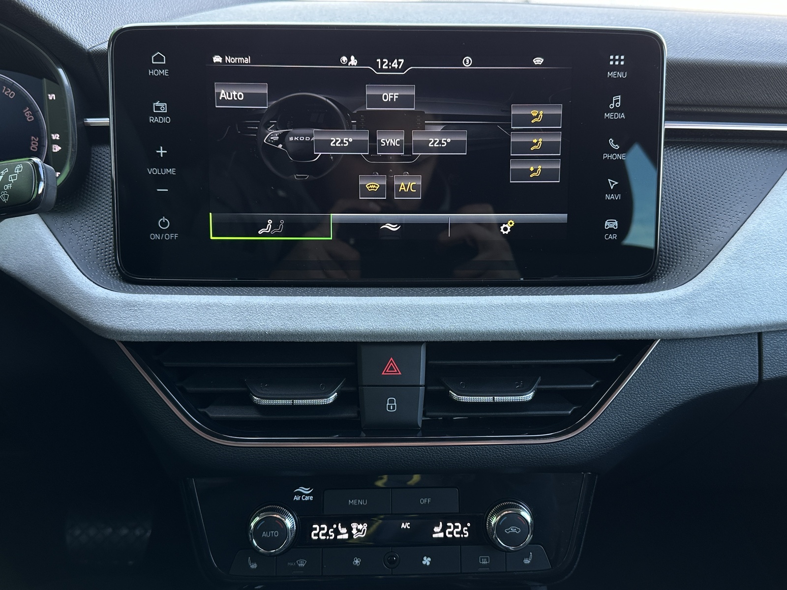 407/11238 Škoda Kamiq Premium 1.5TSi 110kW/150PS, 7st. Automatická převodovka DSG, Tovární záruka Škoda Auto 5let/100.000km, Výbava vozu: Paket Asistovaná jízda 1.5 PLUS - (Adaptivní tempomat - ACC, Lane Assist Plus - Adaptivní vedení v jízdním pruhu, Side Assist - asistent varování mrtvého úhlu), Paket NAVI - (Infotainment s navigací, Webradio, Virtuální Cockpit, Digitální asistentka Laura), Dvojitá podlaha zavazadlového prostoru, Kola z lehkých slitin ALU Škoda "KAJAM AERO" 6,5J×17" stříbrná, Vyhřívané čelní sklo, LED světlomety s LED denním svícením, Upozornění na únavu řidiče, LED zadní světla, Asistent rozjezdu do kopce, Přední mlhové světlomety, Tempomat, Front Assist – s varováním a brzděním při hrozící kolizi s vozidly, chodci a cyklisty, 6× Airbag, Deaktivace airbagu spolujezdce, Lane Assist – Asistent udržování v jízdním pruhu, 3× ISOFIX a Top Tether – 1× vpředu, 2× vzadu, Zadní parkovací senzory – PDC/Z, Rozpoznávání dopravních značek, Startování tlačítkem a centrální zamykání s dálkovým ovládáním, Světelný senzor, Loketní opěrka s Jumbo Boxem, Elektrické ovládání oken vpředu i vzadu, 2× USB-C, 12V zásuvka vpředu i v zavazadlovém prostoru, Sada na opravu pneumatik, Vyhřívaná přední sedadla, Hlavice řadicí páky a madlo ruční brzdy z kůže, Výškově nastavitelná sedadla řidiče a spolujezdce, Bederní opěrky na předních sedadlech, Nouzový systém tísňového volání SOS eCall+, Dekorativní obložení ze šedé Suedia, rámečky v měděném provedení, Čalounění sedadel – látka, Dvoubarevné LED ambientní osvětlení, Střešní nosič – stříbrný, TOP LED zadní světla s animovanými směrovkami, Corner funkce mlhových světlometů, Elektricky sklopná vnější zpětná zrcátka s automatickým stmíváním na straně řidiče, Vnitřní zpětné zrcátko s automatickým stmíváním, Dešťový senzor, Bezdrátové nabíjení mobilních telefonů s chlazením, Zadní loketní opěrka, Vyhřívaný multifunkční kožený volant pro DSG s pádly řazení pod volantem, Sunset – zatmavená zadní okna, Dvouzónová automatická klimatizace Climatronic, Infotainment – 8 reproduktorů, bezdrátový SmartLink, Side Assist – Asistent hlídání mrtvého úhlu, Zadní parkovací kamera – KAMERA, Přední parkovací senzory – PDC/P, Alarm, Virtuální kokpit 10", Virtuální pedál – elektrické otevírání víka kufru pohybem nohy pod zavazadlovým prostorem, KESSY – bezklíčové zamykání a startování, Volba jízdního režimu, Nový vůz ČR, Servisní kniha + dokumentace Škoda Auto, Možnost odpočtu DPH 21%, Skladem - ihned k odběru.