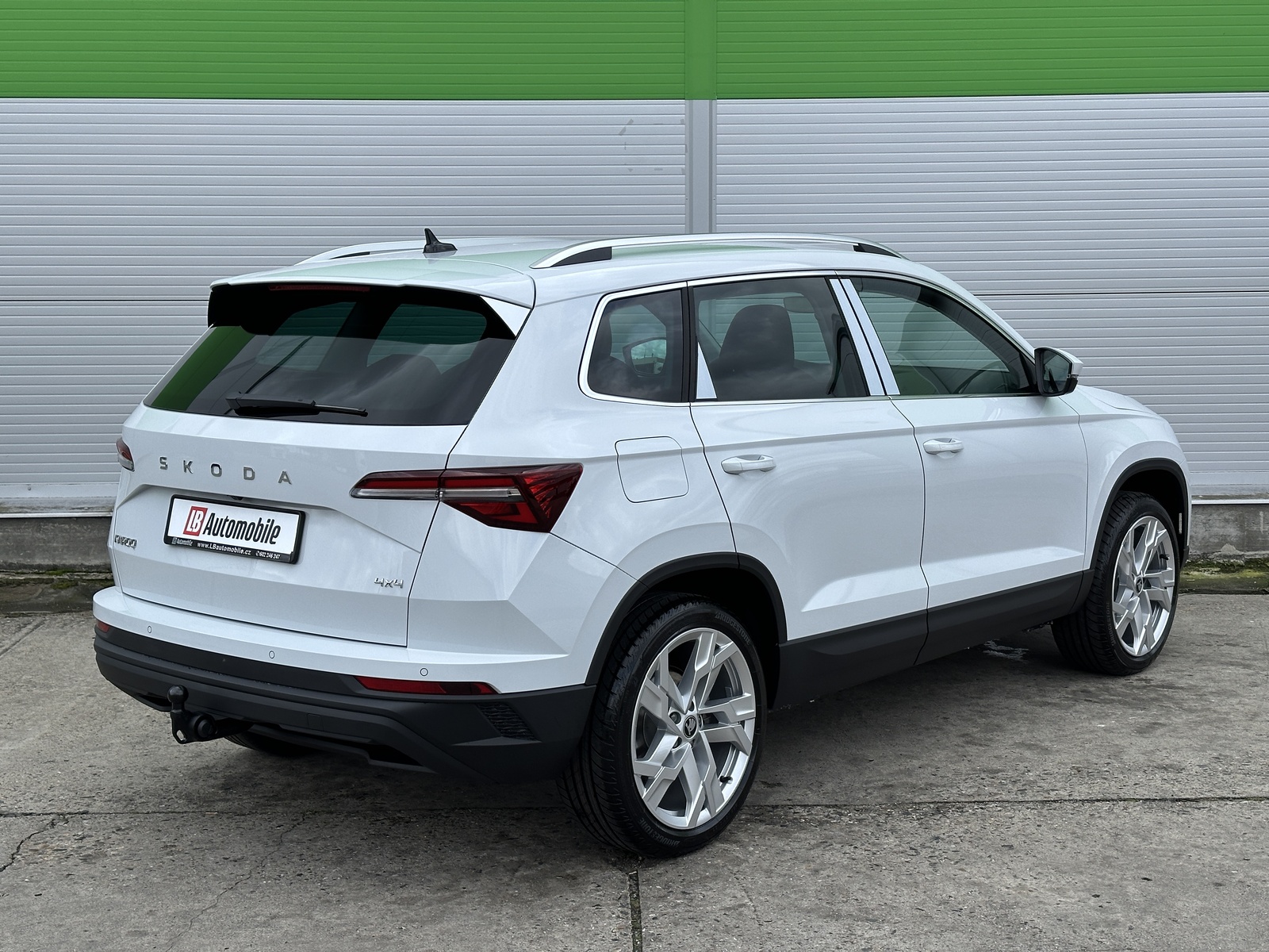5/10692 Škoda Karoq 2.0TDi 4x4 DSG 110kW/150PS, Pohon všech kol 4x4, 7st. Automatická převodovka DSG, Tovární záruka Škoda Auto 5let/100.000km, Výbava vozu: Nezávislé topení s dálkovým ovládáním - Webasto, Tažné zařízení sklopné - el. odjistitelné, Kola z lehkých slitin ALU Škoda "SAGITARIUS" 8Jx19, 230V zásuvka a nabíjecí port USB-C pro cestující vzadu, Interiér Lounge – černý, Čalounění sedadel – Suedia/Kůže, Ambientní LED osvětlení, Matrix-LED světlomety, Asistovaná jízda 1.5 PLUS (Prediktivní adaptivní tempomat ACC, Adaptivní asistent pro udržování jízdního pruhu, Asistent mrtvého úhlu – Side Assist), Infotainment s navigací 9", Bluetooth, Webrádio, Digitální asistentka Laura, Bezdrátový SmartLink, Adaptivní tempomat ACC, Parkovací senzory vpředu a vzadu – PDC, Ostřikovače světlometů, Zadní parkovací kamera, KESSY – bezklíčové odemykání a startování, Nabíjecí box pro smartphone, Virtuální pedál, Virtuální kokpit 10", Vyhřívaná přední a zadní sedadla, Vyhřívané čelní sklo, Elektrické otvírání zavazadlového prostoru, Volba jízdního režimu, LED zadní světla s animovanými ukazateli směru jízdy, Front Assist (varování a brzdění při hrozící kolizi s vozidly, chodci a cyklisty), 7x airbag, Asistent pro udržování jízdního pruhu – Lane Assist, Rozpoznávání dopravních značek, Přední mlhovky, Asistent rozjezdu do kopce, Systém rozpoznání únavy řidiče, 2x ISOFIX a Top Tether vzadu, Vnější zpětná zrcátka el. nastavitelná, sklopná, vyhřívaná s automatickým stmíváním na straně řidiče, Zadní loketní opěrka s držákem nápojů, Automatické stmívání vnitřního zpětného zrcátka, Elektronická parkovací brzda, Elektricky ovládaná přední a zadní okna, Sada na opravu pneumatik, Přední loketní opěrka, 12V zásuvka, Dvouzónová klimatizace Climatronic, Výškově nastavitelná sedadla řidiče a spolujezdce s bederní opěrkou, Sunset – zatmavená okna, Nouzový systém SOS eCall+, Vyhřívaný multifunkční kožený volant pro DSG s pádly, Nový vůz, Servisní kniha + kompletní dokumentace Škoda Auto, Možnost odpočtu DPH 21%, Skladem - ihned k odběru.