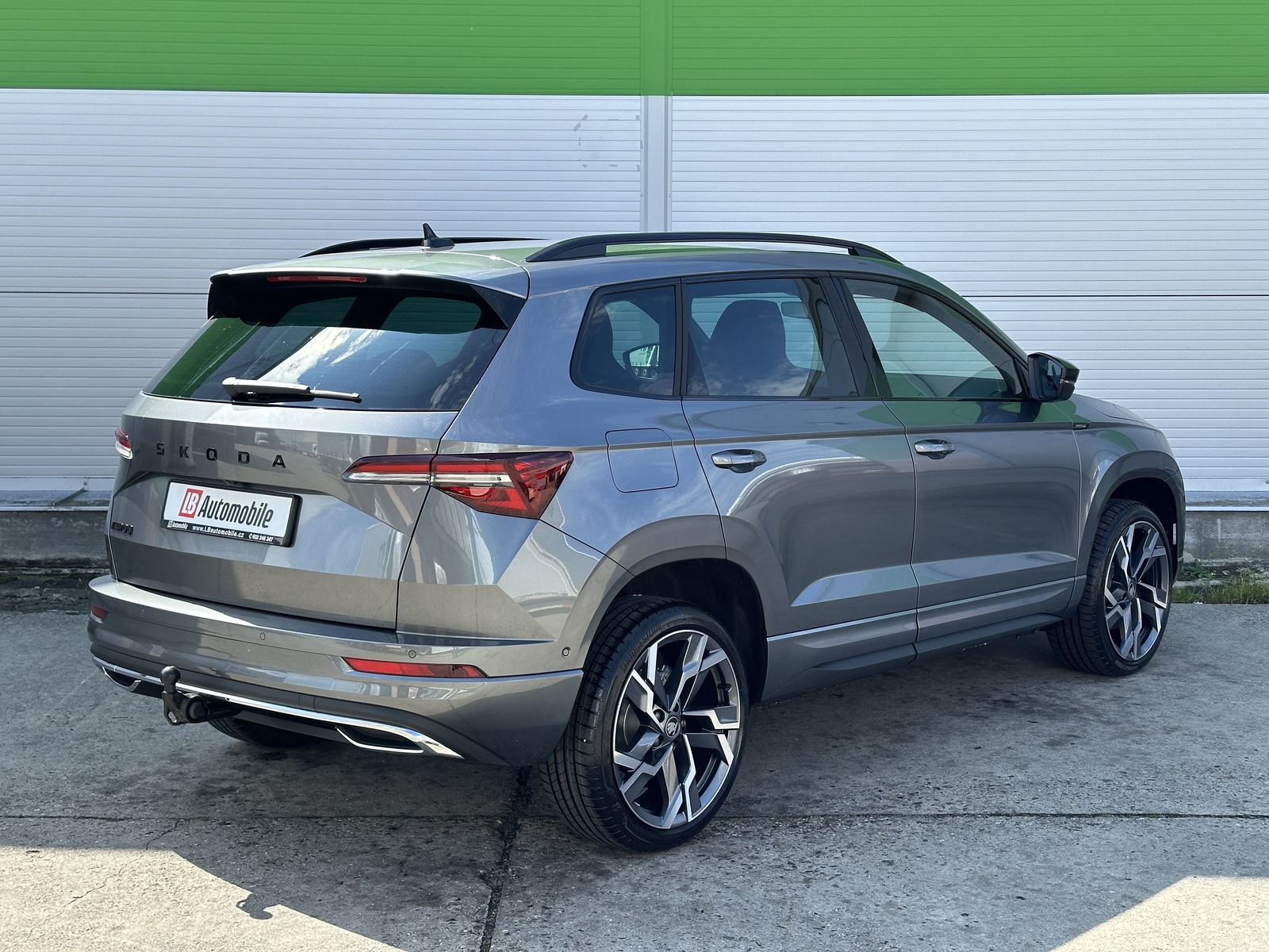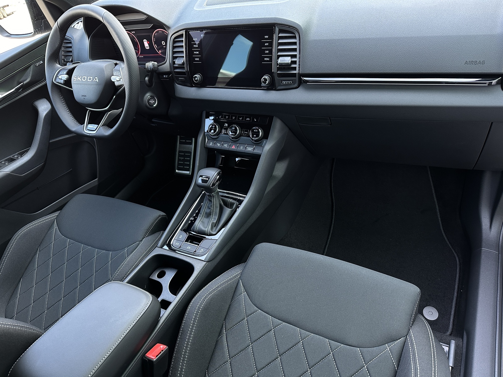 352/10908 Škoda Karoq Sportline 1.5TSi DSG 110kW/150PS, 7st. Automatická převodovka, Tovární záruka Škoda Auto 5let/100.000km, Šedá Graphite metalíza, Výbava vozu: Tažné zařízení sklopné - el. odjistitelné, Kola z lehkých slitin ALU Škoda "SAGITARIUS" 8Jx19" Antracitová/Leštěná, 230V zásuvka a nabíjecí port USB-C pro cestující vzadu, Asistovaná jízda 2.0 - (Prediktivní tempomat - ACC, Rozpoznávání dopravních značek, Adaptivní asistent pro udržování jízdního pruhu – Lane Assist+, Asistent hlídání mrtvého úhlu – Side Assist, Automatické parkování), Panoramatický kamerový systém 360°KAMERA, Parkovací senzory přední a zadní - PDC P/Z, Asistent varování a brzdění při hrozící kolizi s vozidly, chodci a cyklisty - Front Assist, Asistent nouzového zastavení - Emergency Assist, Asistent pro jízdu v zácpě, Asistent rozpoznání únavy řidiče, Asistent rozjezdu do kopce, Systém Start/Stop, Volba jízdního režimu, Bezklíčové odemykání a startování - KESSY, Dvouzónová automatická klimatizace - Climatronic, Vyhřívané čelní sklo, Vyhřívané trysky ostřikovačů, Vyhřívaný multifunkční kožený volant pro DSG s pádly pod volantem - výškově a podélně nastavitelný, Kožená hlavice řadicí páky, Výškově nastavitelná sportovní přední sedadla s bederními opěrkami, Vyhřívaná sedadla vpředu i vzadu, Loketní opěrka s Jumbo Boxem, Zadní loketní opěrka, Potah sedadel - látka, Automaticky zatmavovací vnitřní zpětné zrcátko, Elektrické ovládání oken vpředu i vzadu, Zatmavená zadní okna - Sunset, Vnější zpětná zrcátka elektricky sklopná, nastavitelná a vyhřívaná, Infotainment 8" s navigací, Bezdrátový Smartlink, Bluetooth, Hlasové ovládání - digitální asistentka Laura, Soundsystem CANTON - (10x reproduktor, Digitální ekvalizér), DAB - Digitální příjem rádia, Virtual Cockpit 10", Bezdrátové nabíjení telefonu, 2x USB-C vpředu, USB-C pro vnitřní zpětné zrcátko, Ambientní LED osvětlení interiéru, Matrix-LED hlavní světlomety, Ostřikovače předních světlometů, Top-LED zadní světla s animovanými směrovými světly, Mlhová světla, Senzor světla a deště, Kontrola tlaku v pneumatikách, Centrální zamykání s dálkovým ovládáním, Isofix a Top Tether - 2x vzadu, ABS, ESP, 8x Airbag, Deaktivace airbagu spolujezdce, Nouzové volání SOS - eCall, Dvojitá podlaha zavazadlového prosotru, Virtuální pedál - otevírání víka kufru pohybem nohy pod zavazadlovým prostorem, Sportovní kryty pedálů, Střešní nosič, Dekorativní prahové lišty, Černě lakované doplňky karoserie, Zatížení bržděného tažného zařízení - 1500kg, Zatížení nebržděného tažného zařízení - 700kg, Nový vůz skladem s registrací 15. 08. 2025, Servisní kniha + dokumentace Škoda Auto, Možnost odpočtu DPH 21%, Skladem - ihned k odběru.