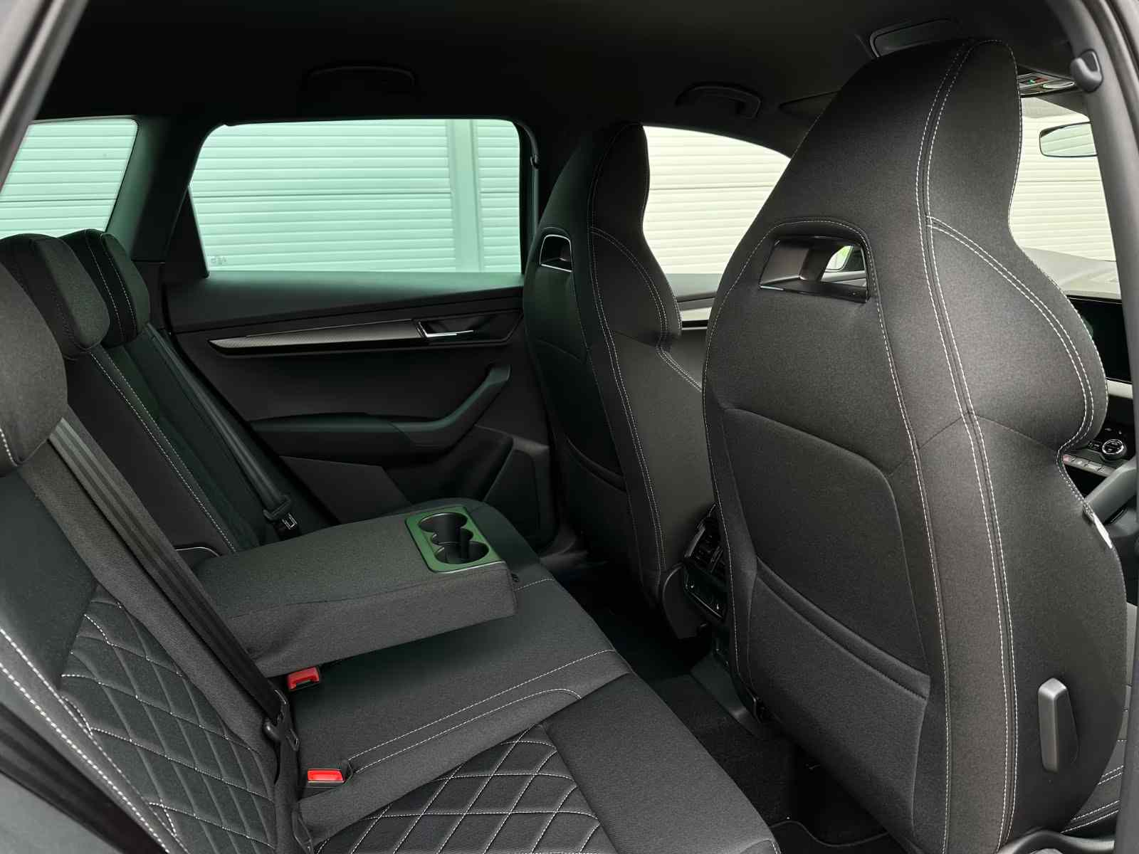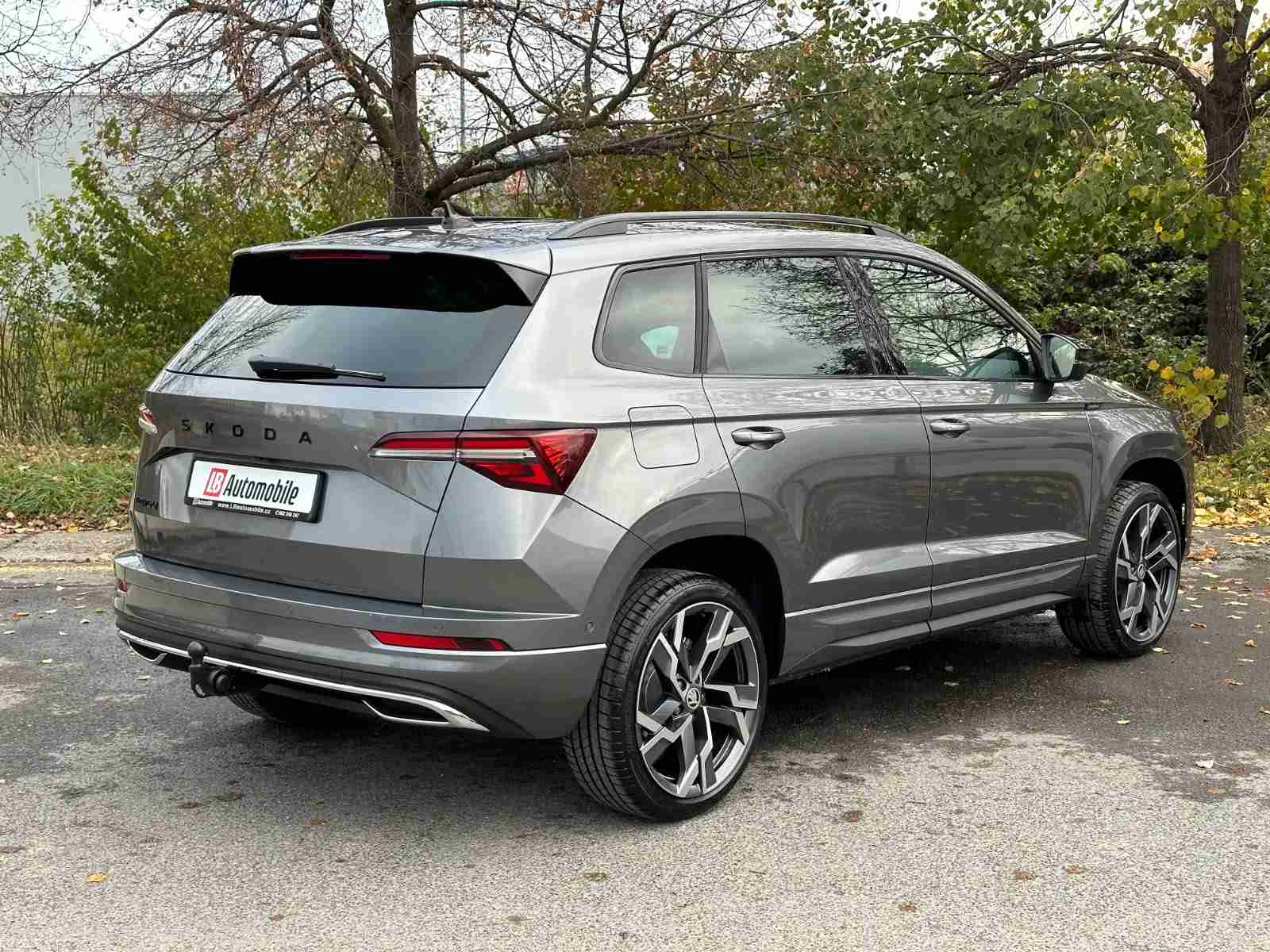 146/11082 Škoda Karoq Sportline 1.5TSi DSG 110kW/150PS, 7st. Automatická převodovka DSG, Tovární záruka Škoda Auto 5let/100.000km, Výbava vozu: Paket Drive PLUS - (Adaptivní podvozek - DCC, Progresivní řízení, Hliníkové sportovní pedály, Off-Road funkce pro volbu jízdního režimu), Tažné zařízení sklopné - el. odjistitelné, Kola z lehkých slitin ALU Škoda "SAGITARIUS" 8Jx19" Antracitová/Leštěná, Infotainment s Navigací 9", Asistovaná jízda 2.0 - (Prediktivní tempomat - ACC, Rozpoznávání dopravních značek, Adaptivní asistent pro udržování jízdního pruhu – Lane Assist+, Asistent hlídání mrtvého úhlu – Side Assist, Automatické parkování), Panoramatický kamerový systém 360°KAMERA, Parkovací senzory přední a zadní - PDC P/Z, Asistent varování a brzdění při hrozící kolizi s vozidly, chodci a cyklisty - Front Assist, Asistent nouzového zastavení - Emergency Assist, Asistent pro jízdu v zácpě, Asistent rozpoznání únavy řidiče, Asistent rozjezdu do kopce, Systém Start/Stop, Volba jízdního režimu, Bezklíčové odemykání a startování - KESSY, Dvouzónová automatická klimatizace - Climatronic, Vyhřívané čelní sklo, Vyhřívané trysky ostřikovačů, Vyhřívaný multifunkční kožený volant pro DSG s pádly pod volantem - výškově a podélně nastavitelný, Kožená hlavice řadicí páky, Výškově nastavitelná sportovní přední sedadla s bederními opěrkami, Vyhřívaná sedadla vpředu i vzadu, Loketní opěrka s Jumbo Boxem, Zadní loketní opěrka, Potah sedadel - látka, Automaticky zatmavovací vnitřní zpětné zrcátko, Elektrické ovládání oken vpředu i vzadu, Zatmavená zadní okna - Sunset, Vnější zpětná zrcátka elektricky sklopná, nastavitelná a vyhřívaná, Infotainment 8" s navigací, Bezdrátový Smartlink, Bluetooth, Hlasové ovládání - digitální asistentka Laura, Soundsystem CANTON - (10x reproduktor, Digitální ekvalizér), DAB - Digitální příjem rádia, Virtual Cockpit 10", Bezdrátové nabíjení telefonu, 2x USB-C vpředu, USB-C pro vnitřní zpětné zrcátko, Ambientní LED osvětlení interiéru, Matrix-LED hlavní světlomety, Ostřikovače předních světlometů, Top-LED zadní světla s animovanými směrovými světly, Mlhová světla, Senzor světla a deště, Kontrola tlaku v pneumatikách, Centrální zamykání s dálkovým ovládáním, Isofix a Top Tether - 2x vzadu, ABS, ESP, 8x Airbag, Deaktivace airbagu spolujezdce, Nouzové volání SOS - eCall, Dvojitá podlaha zavazadlového prosotru, Virtuální pedál - otevírání víka kufru pohybem nohy pod zavazadlovým prostorem, Sportovní kryty pedálů, Střešní nosič, Dekorativní prahové lišty, Černě lakované doplňky karoserie, Zatížení bržděného tažného zařízení - 1500kg, Zatížení nebržděného tažného zařízení - 700kg, Nový vůz ČR, Servisní kniha + dokumentace Škoda Auto, Možnost odpočtu DPH 21%, Skladem - ihned kodběru.