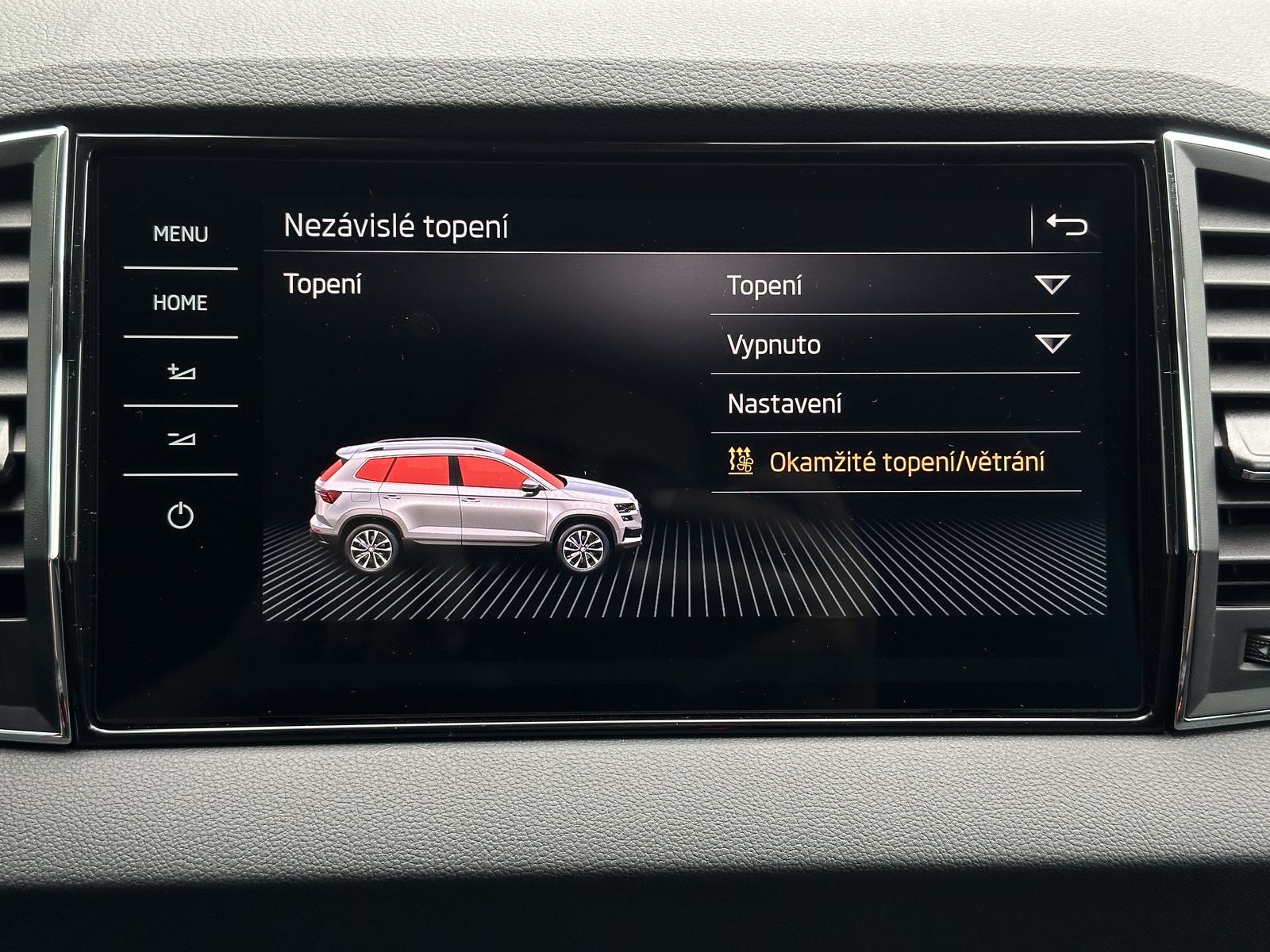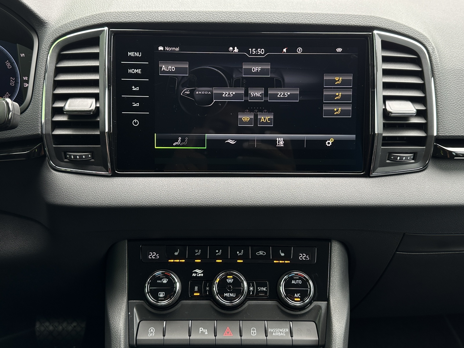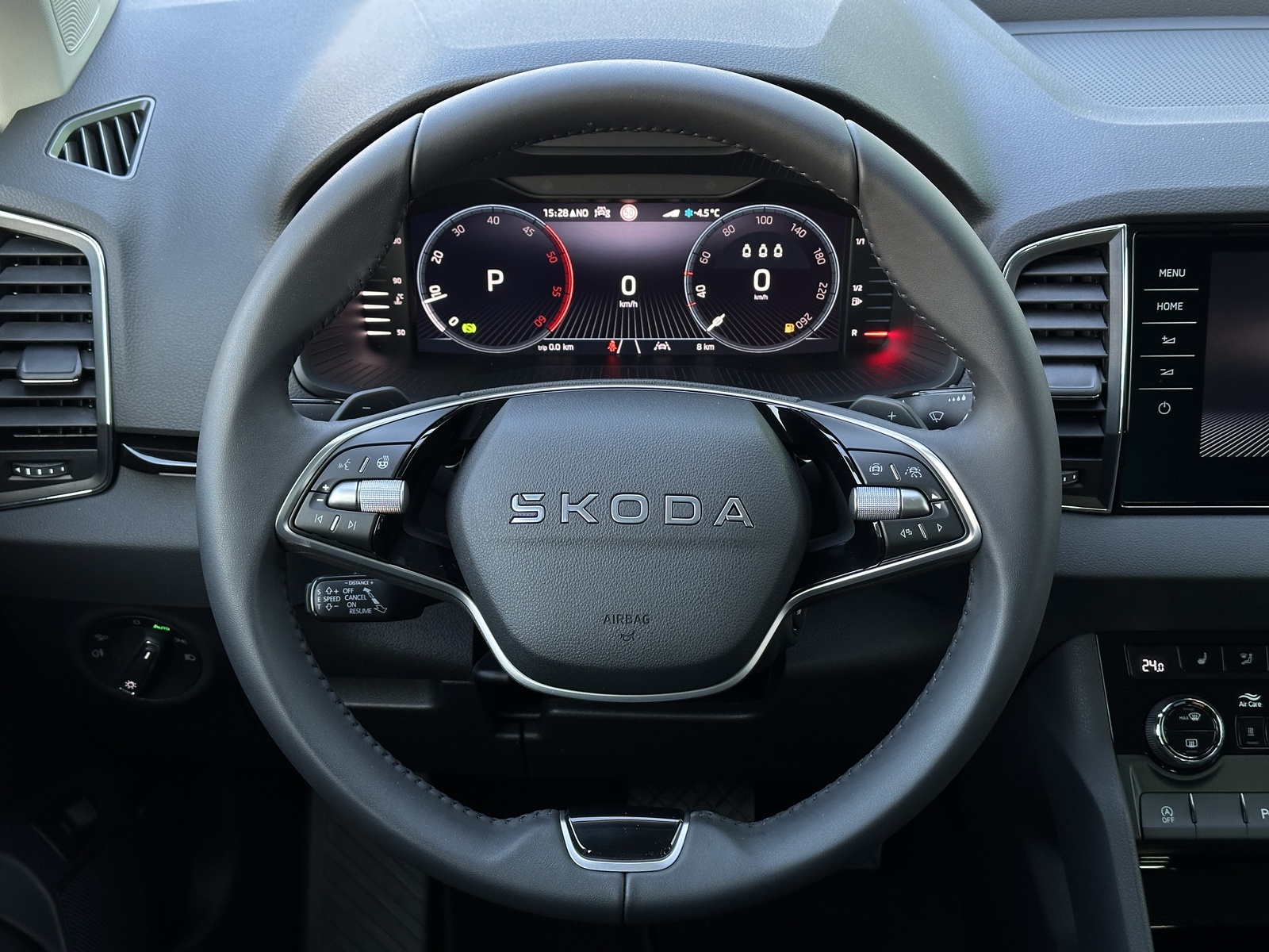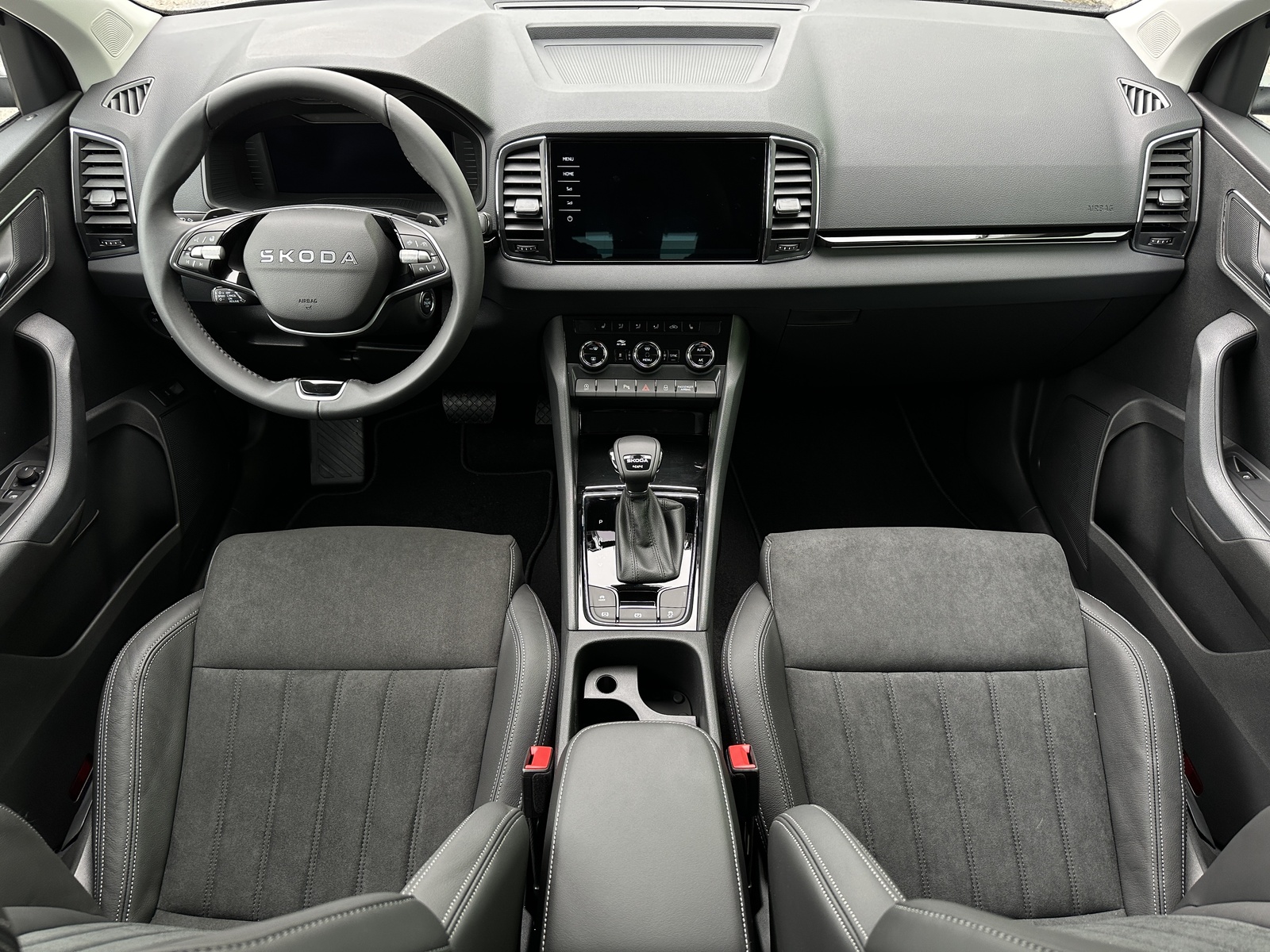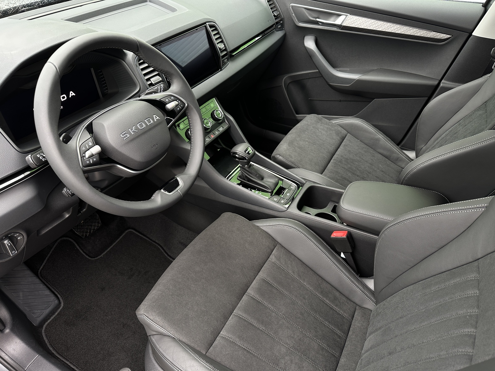143/11087 Škoda Karoq 2.0TDi DSG 4x4 110kW/150PS, Pohon všech kol 4x4, 7st. Automatická převodovka DSG, Tovární záruka Škoda Auto 5let/100.000km, Výbava vozu: Nezávislé topení s dálkovým ovládáním - Webasto, Tažné zařízení sklopné - el. odjistitelné, Dvojitá podlaha v zavazadlovém prostoru, Kola z lehkých slitin ALU Škoda "SAGITARIUS" 8Jx19, 230V zásuvka a nabíjecí port USB-C pro cestující vzadu, Interiér Lounge – černý, Čalounění sedadel – Suedia/Kůže, Ambientní LED osvětlení, Matrix-LED světlomety, Asistovaná jízda 1.5 PLUS (Prediktivní adaptivní tempomat ACC, Adaptivní asistent pro udržování jízdního pruhu, Asistent mrtvého úhlu – Side Assist), Infotainment s navigací 9", Bluetooth, Webrádio, Digitální asistentka Laura, Bezdrátový SmartLink, Adaptivní tempomat ACC, Parkovací senzory vpředu a vzadu – PDC P/Z, Ostřikovače světlometů, Zadní parkovací KAMERA, KESSY – bezklíčové odemykání a startování, Nabíjecí box pro smartphone, Virtuální pedál, Virtuální kokpit 10", Vyhřívaná přední a zadní sedadla, Vyhřívané čelní sklo, Elektrické otvírání zavazadlového prostoru, Volba jízdního režimu, LED zadní světla s animovanými ukazateli směru jízdy, Front Assist (varování a brzdění při hrozící kolizi s vozidly, chodci a cyklisty), 7x airbag, Asistent pro udržování jízdního pruhu – Lane Assist, Rozpoznávání dopravních značek, Přední mlhovky, Asistent rozjezdu do kopce, Systém rozpoznání únavy řidiče, 2x ISOFIX a Top Tether vzadu, Vnější zpětná zrcátka el. nastavitelná, sklopná, vyhřívaná s automatickým stmíváním na straně řidiče, Zadní loketní opěrka s držákem nápojů, Automatické stmívání vnitřního zpětného zrcátka, Elektronická parkovací brzda, Elektricky ovládaná přední a zadní okna, Sada na opravu pneumatik, Přední loketní opěrka, 12V zásuvka, Dvouzónová klimatizace Climatronic, Výškově nastavitelná sedadla řidiče a spolujezdce s bederní opěrkou, Sunset – zatmavená okna, Nouzový systém SOS eCall+, Vyhřívaný multifunkční kožený volant pro DSG s pádly, Nový vůz, Servisní kniha + kompletní dokumentace Škoda Auto, Možnost odpočtu DPH 21%, Skladem - ihned k odběru.