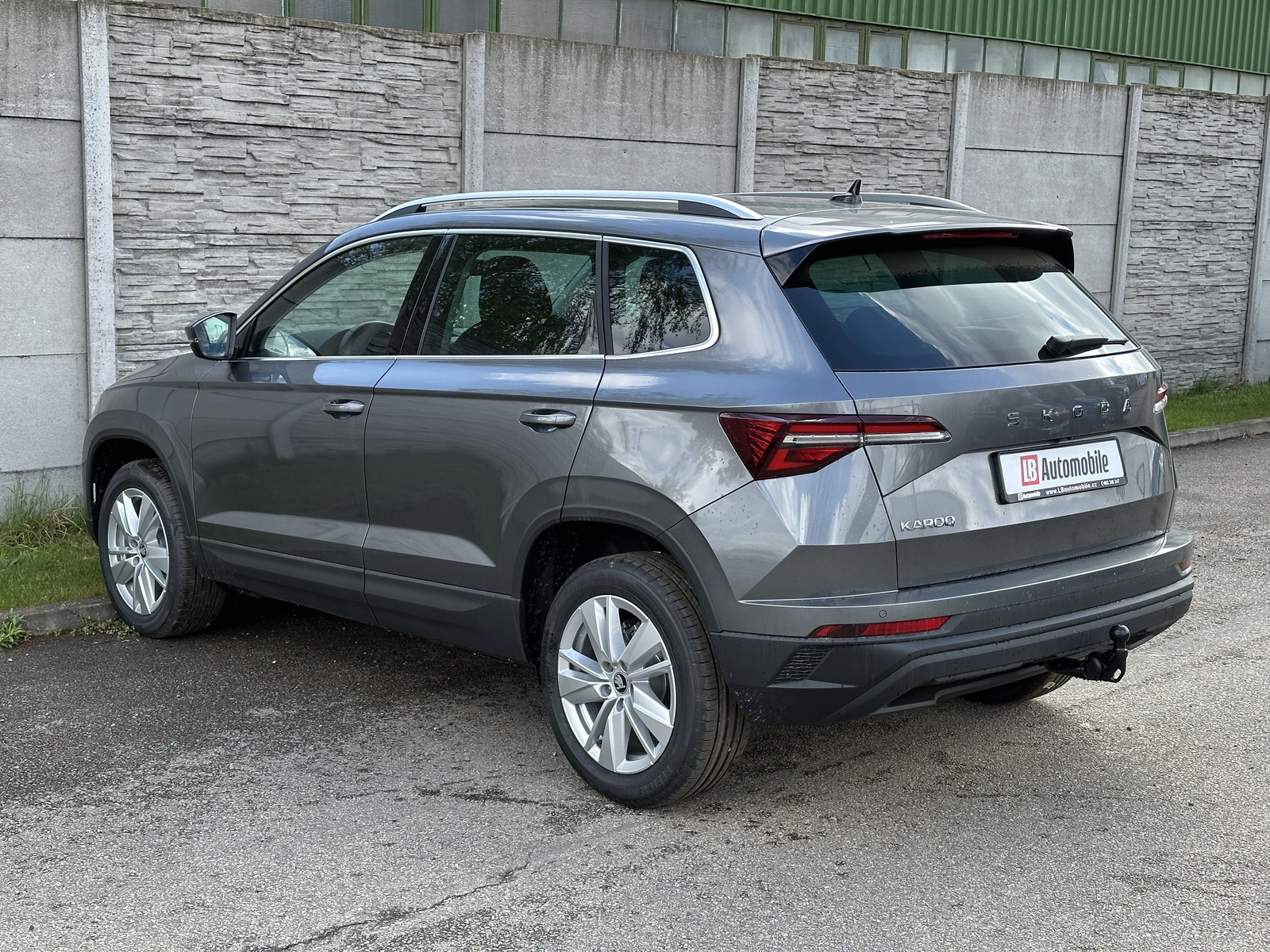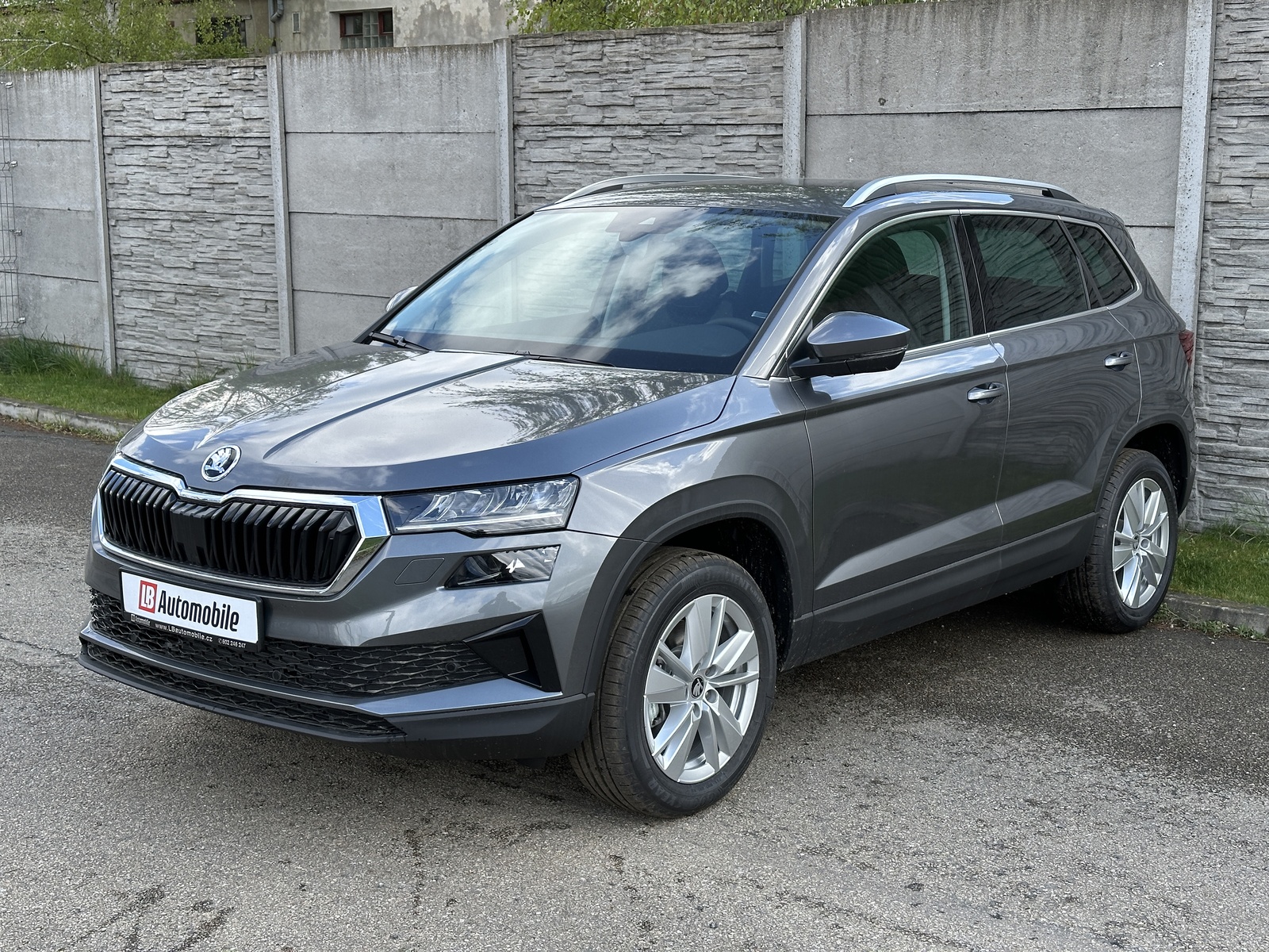 78/11274 Škoda Karoq Top & Selection 1.5TSi DSG 110 kW/150 PS, 7st. Automatická převodovka DSG, Tovární záruka Škoda Auto 5let/100.000km, Výbava vozu: Infotainment NAVI 8", Zásuvka 230 V a USB-C nabíjecí port pro cestující vzadu, Dvojitá podlaha v zavazadlovém prostoru, Tažné zařízení sklopné - Elektricky odjistitelné, Parkovací kamera vzadu, Parkovací senzory vpředu a vzadu - PDC P/Z, Asistent udržování v jízdním pruhu - Lane Assist, Asistent varování a brzdění při hrozící kolizi s vozidly, chodci a cyklisty - Front Assist, Asistent rozpoznání únavy řidiče, Asistent rozjezdu do kopce, Rozpoznávání dopravních značek, Volba jízdního režimu, Systém Start/Stop, Adaptivní tempomat - ACC, Vyhřívaný multifunkční kožený volant pro DSG s pádly pod volantem - Výškově a podélně nastavitelný, Bezklíčové zamykání a startování - KESSY, Hlavice řadicí páky z kůže, Elektronická parkovací brzda, Bederní opěrky na předních sedadlech, Výškově nastavitelné sedadlo řidiče a spolujezdce, Dvouzónová automatická klimatizace - Climatronic, Vyhřívaná přední a zadní sedadla s oddělenou regulací, Přední loketní opěrka s Jumbo Boxem, Zadní loketní opěrka, Potah sedadel - Látka, Vyhřívané čelní sklo, Vnitřní zpětné zrcátko s automatickým stmíváním, Elektrické ovládání oken vpředu i vzadu, Zatmavená zadní okna - Sunset, Vnější zpětná zrcátka elektricky nastavitelná, sklopná a vyhřívaná, Virtuální Cockpit 10", Bezdrátový SmartLink, Bluetooth, Webové rádio, Hlasové ovládání - Digitální asistentka Laura, Bezdrátové nabíjení telefonu, LED přední světlomety, Přední mlhové světlomety, Top-LED zadní světlomety s animovanými ukazateli směru jízdy, Ostřikovače světlometů, Světelný senzor, Dešťový senzor, Virtuální pedál - Otevírání víka kufru pohybem nohy pod zavazadlovým prostorem, Sada na opravu pneumatik, Kola z lehkých slitin ALU Škoda "SCUTUS" 7Jx17", ABS, ESP, 8x Airbag, Deaktivace airbagu spolujezdce, 2x Isofix a Top Tether vzadu, Centrální zamykání s dálkovým ovládáním, Nouzové volání SOS - eCall, Střešní nosiče - Stříbrné, Zatížení bržděného tažného zařízení - 1.500 kg, Zatížení nebržděného tažného zařízení - 700 kg, Nový vůz ČR s registrací 24. 10. 2025, Servisní kniha + dokumentace Škoda Auto, Možnost odpočtu DPH 21%, Termín odběru a předání od 25. 04. 2026.