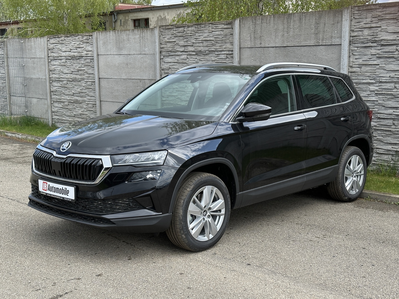 266/11277 Škoda Karoq Top & Selection 1.5TSi DSG 110 kW/150 PS, 7st. Automatická převodovka DSG, Tovární záruka Škoda Auto 5let/100.000km, Výbava vozu: Infotainment NAVI 8", Zásuvka 230 V a USB-C nabíjecí port pro cestující vzadu, Dvojitá podlaha v zavazadlovém prostoru, Tažné zařízení sklopné - Elektricky odjistitelné, Parkovací kamera vzadu, Parkovací senzory vpředu a vzadu - PDC P/Z, Asistent udržování v jízdním pruhu - Lane Assist, Asistent varování a brzdění při hrozící kolizi s vozidly, chodci a cyklisty - Front Assist, Asistent rozpoznání únavy řidiče, Asistent rozjezdu do kopce, Rozpoznávání dopravních značek, Volba jízdního režimu, Systém Start/Stop, Adaptivní tempomat - ACC, Vyhřívaný multifunkční kožený volant pro DSG s pádly pod volantem - Výškově a podélně nastavitelný, Bezklíčové zamykání a startování - KESSY, Hlavice řadicí páky z kůže, Elektronická parkovací brzda, Bederní opěrky na předních sedadlech, Výškově nastavitelné sedadlo řidiče a spolujezdce, Dvouzónová automatická klimatizace - Climatronic, Vyhřívaná přední a zadní sedadla s oddělenou regulací, Přední loketní opěrka s Jumbo Boxem, Zadní loketní opěrka, Potah sedadel - Látka, Vyhřívané čelní sklo, Vnitřní zpětné zrcátko s automatickým stmíváním, Elektrické ovládání oken vpředu i vzadu, Zatmavená zadní okna - Sunset, Vnější zpětná zrcátka elektricky nastavitelná, sklopná a vyhřívaná, Virtuální Cockpit 10", Bezdrátový SmartLink, Bluetooth, Webové rádio, Hlasové ovládání - Digitální asistentka Laura, Bezdrátové nabíjení telefonu, LED přední světlomety, Přední mlhové světlomety, Top-LED zadní světlomety s animovanými ukazateli směru jízdy, Ostřikovače světlometů, Světelný senzor, Dešťový senzor, Virtuální pedál - Otevírání víka kufru pohybem nohy pod zavazadlovým prostorem, Sada na opravu pneumatik, Kola z lehkých slitin ALU Škoda "SCUTUS" 7Jx17", ABS, ESP, 8x Airbag, Deaktivace airbagu spolujezdce, 2x Isofix a Top Tether vzadu, Centrální zamykání s dálkovým ovládáním, Nouzové volání SOS - eCall, Střešní nosiče - Stříbrné, Zatížení bržděného tažného zařízení - 1.500 kg, Zatížení nebržděného tažného zařízení - 700 kg, Nový vůz ČR s registrací 24. 10. 2025, Servisní kniha + dokumentace Škoda Auto, Možnost odpočtu DPH 21%, Termín odběru a předání od 25. 04. 2026.