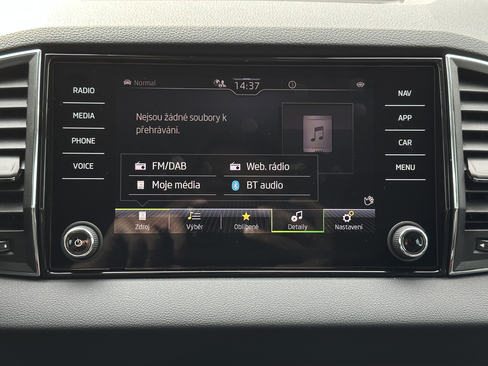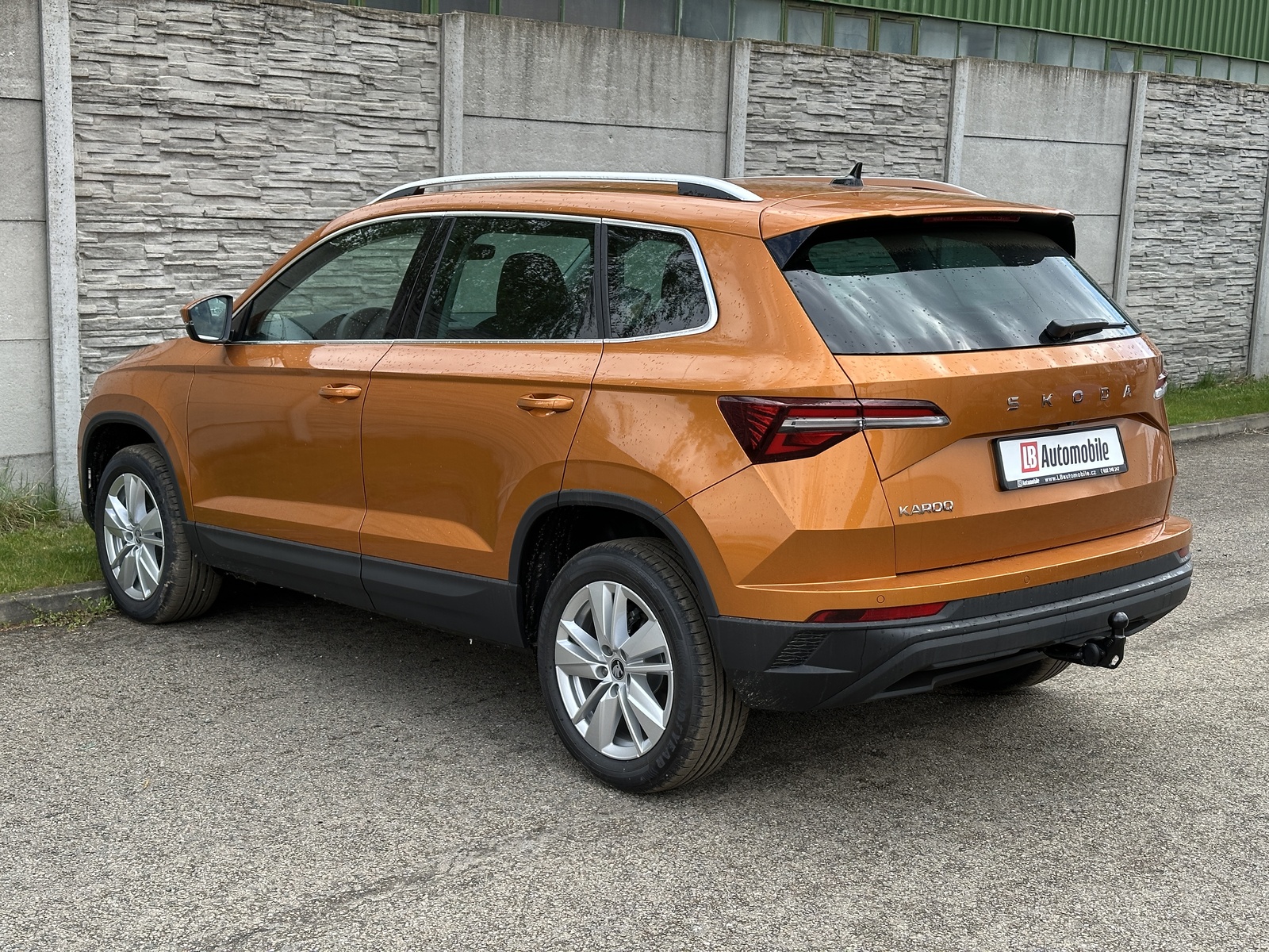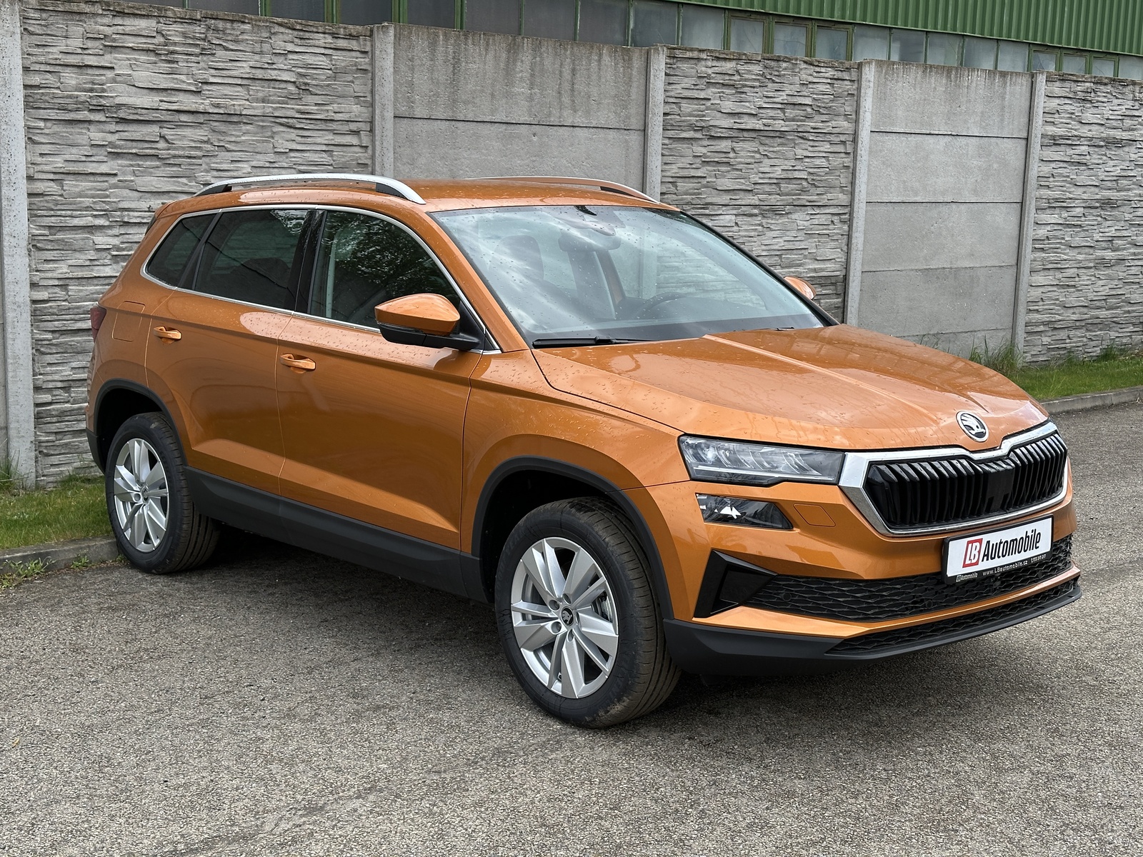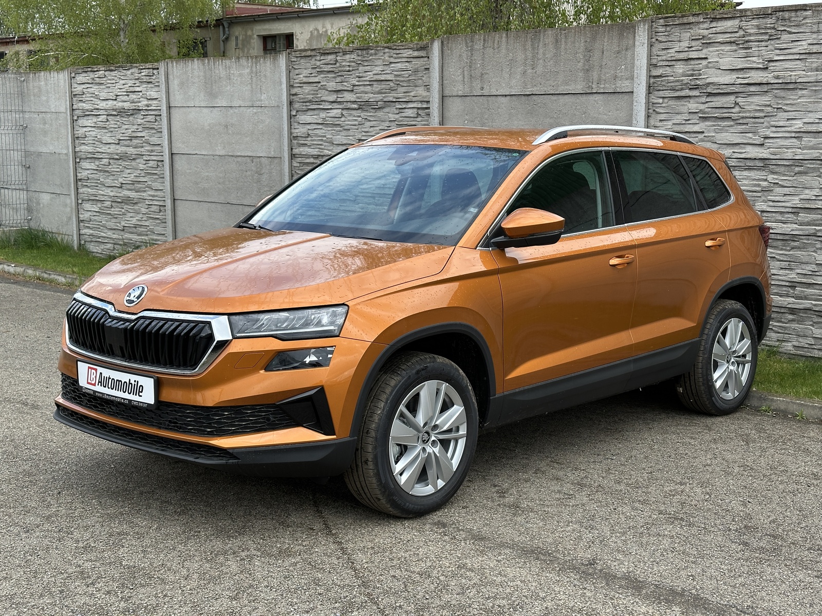410/11283 Škoda Karoq Top & Selection 1.5TSi DSG 110 kW/150 PS, 7st. Automatická převodovka DSG, Tovární záruka Škoda Auto 5let/100.000km, Výbava vozu: Infotainment NAVI 8", Zásuvka 230 V a USB-C nabíjecí port pro cestující vzadu, Dvojitá podlaha v zavazadlovém prostoru, Tažné zařízení sklopné - Elektricky odjistitelné, Parkovací kamera vzadu, Parkovací senzory vpředu a vzadu - PDC P/Z, Asistent udržování v jízdním pruhu - Lane Assist, Asistent varování a brzdění při hrozící kolizi s vozidly, chodci a cyklisty - Front Assist, Asistent rozpoznání únavy řidiče, Asistent rozjezdu do kopce, Rozpoznávání dopravních značek, Volba jízdního režimu, Systém Start/Stop, Adaptivní tempomat - ACC, Vyhřívaný multifunkční kožený volant pro DSG s pádly pod volantem - Výškově a podélně nastavitelný, Bezklíčové zamykání a startování - KESSY, Hlavice řadicí páky z kůže, Elektronická parkovací brzda, Bederní opěrky na předních sedadlech, Výškově nastavitelné sedadlo řidiče a spolujezdce, Dvouzónová automatická klimatizace - Climatronic, Vyhřívaná přední a zadní sedadla s oddělenou regulací, Přední loketní opěrka s Jumbo Boxem, Zadní loketní opěrka, Potah sedadel - Látka, Vyhřívané čelní sklo, Vnitřní zpětné zrcátko s automatickým stmíváním, Elektrické ovládání oken vpředu i vzadu, Zatmavená zadní okna - Sunset, Vnější zpětná zrcátka elektricky nastavitelná, sklopná a vyhřívaná, Virtuální Cockpit 10", Bezdrátový SmartLink, Bluetooth, Webové rádio, Hlasové ovládání - Digitální asistentka Laura, Bezdrátové nabíjení telefonu, LED přední světlomety, Přední mlhové světlomety, Top-LED zadní světlomety s animovanými ukazateli směru jízdy, Ostřikovače světlometů, Světelný senzor, Dešťový senzor, Virtuální pedál - Otevírání víka kufru pohybem nohy pod zavazadlovým prostorem, Sada na opravu pneumatik, Kola z lehkých slitin ALU Škoda "SCUTUS" 7Jx17", ABS, ESP, 8x Airbag, Deaktivace airbagu spolujezdce, 2x Isofix a Top Tether vzadu, Centrální zamykání s dálkovým ovládáním, Nouzové volání SOS - eCall, Střešní nosiče - Stříbrné, Zatížení bržděného tažného zařízení - 1.500 kg, Zatížení nebržděného tažného zařízení - 700 kg, Nový vůz ČR s registrací 24. 10. 2025, Servisní kniha + dokumentace Škoda Auto, Možnost odpočtu DPH 21%, Termín odběru a předání od 14. 05. 2026.
