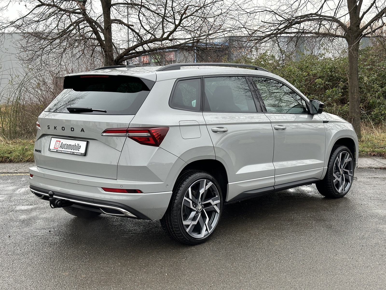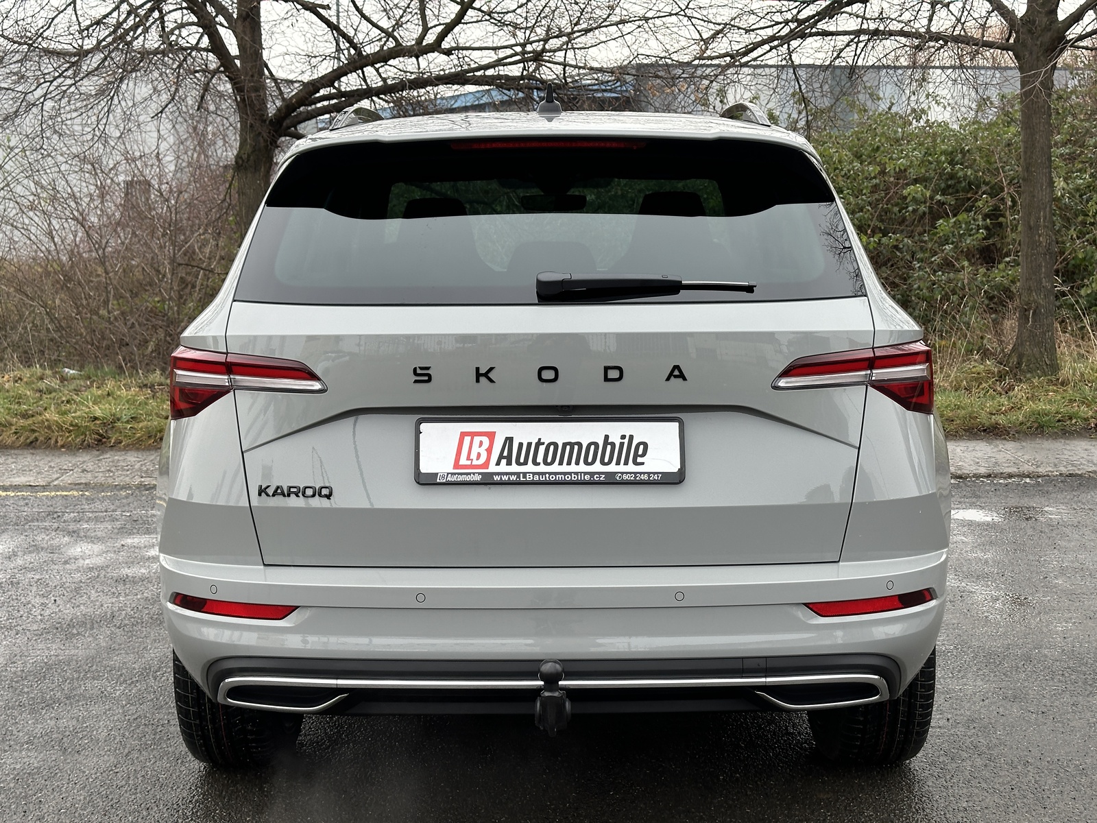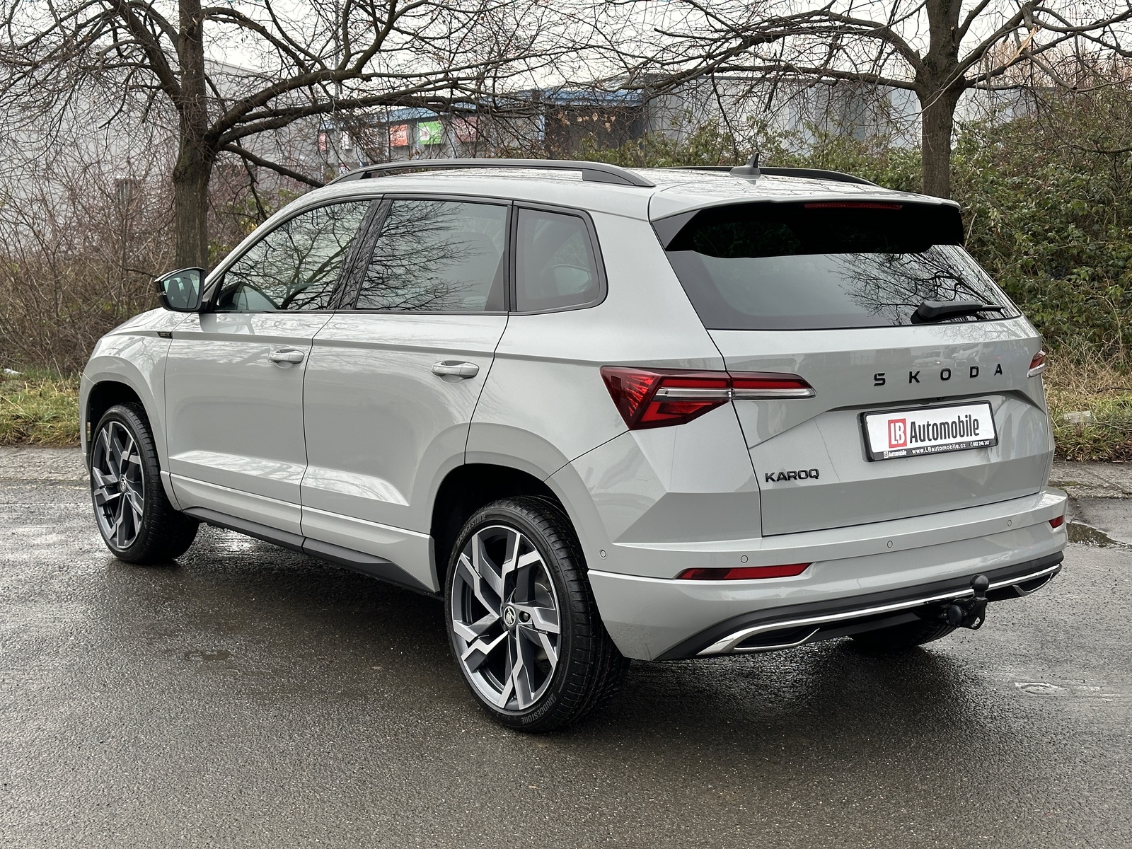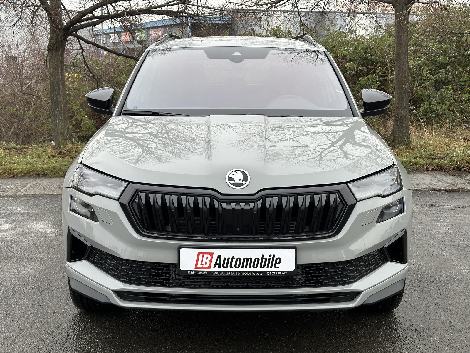 323/11295 Škoda Karoq Sportline 1.5TSi DSG 110kW/150PS, 7st. Automatická převodovka, Tovární záruka Škoda Auto 5let/100.000km, Výbava vozu: Tažné zařízení sklopné - el. odjistitelné, Kola z lehkých slitin ALU Škoda "SAGITARIUS" 8Jx19" Antracitová/Leštěná, 230V zásuvka a nabíjecí port USB-C pro cestující vzadu, Asistovaná jízda 2.0 - (Prediktivní tempomat - ACC, Rozpoznávání dopravních značek, Adaptivní asistent pro udržování jízdního pruhu – Lane Assist+, Asistent hlídání mrtvého úhlu – Side Assist, Automatické parkování), Panoramatický kamerový systém 360°KAMERA, Parkovací senzory přední a zadní - PDC P/Z, Asistent varování a brzdění při hrozící kolizi s vozidly, chodci a cyklisty - Front Assist, Asistent nouzového zastavení - Emergency Assist, Asistent pro jízdu v zácpě, Asistent rozpoznání únavy řidiče, Asistent rozjezdu do kopce, Systém Start/Stop, Volba jízdního režimu, Bezklíčové odemykání a startování - KESSY, Dvouzónová automatická klimatizace - Climatronic, Vyhřívané čelní sklo, Vyhřívané trysky ostřikovačů, Vyhřívaný multifunkční kožený volant pro DSG s pádly pod volantem - výškově a podélně nastavitelný, Kožená hlavice řadicí páky, Výškově nastavitelná sportovní přední sedadla s bederními opěrkami, Vyhřívaná sedadla vpředu i vzadu, Loketní opěrka s Jumbo Boxem, Zadní loketní opěrka, Potah sedadel - látka, Automaticky zatmavovací vnitřní zpětné zrcátko, Elektrické ovládání oken vpředu i vzadu, Zatmavená zadní okna - Sunset, Vnější zpětná zrcátka elektricky sklopná, nastavitelná a vyhřívaná, Infotainment 8" s navigací, Bezdrátový Smartlink, Bluetooth, Hlasové ovládání - digitální asistentka Laura, Soundsystem CANTON - (10x reproduktor, Digitální ekvalizér), DAB - Digitální příjem rádia, Virtual Cockpit 10", Bezdrátové nabíjení telefonu, 2x USB-C vpředu, USB-C pro vnitřní zpětné zrcátko, Ambientní LED osvětlení interiéru, Matrix-LED hlavní světlomety, Ostřikovače předních světlometů, Top-LED zadní světla s animovanými směrovými světly, Mlhová světla, Senzor světla a deště, Kontrola tlaku v pneumatikách, Centrální zamykání s dálkovým ovládáním, Isofix a Top Tether - 2x vzadu, ABS, ESP, 8x Airbag, Deaktivace airbagu spolujezdce, Nouzové volání SOS - eCall, Dvojitá podlaha zavazadlového prosotru, Virtuální pedál - otevírání víka kufru pohybem nohy pod zavazadlovým prostorem, Sportovní kryty pedálů, Střešní nosič, Dekorativní prahové lišty, Černě lakované doplňky karoserie, Zatížení bržděného tažného zařízení - 1500kg, Zatížení nebržděného tažného zařízení - 700kg, Servisní kniha + dokumentace Škoda Auto, Možnost odpočtu DPH 21%, Skladem - ihned k odběru.