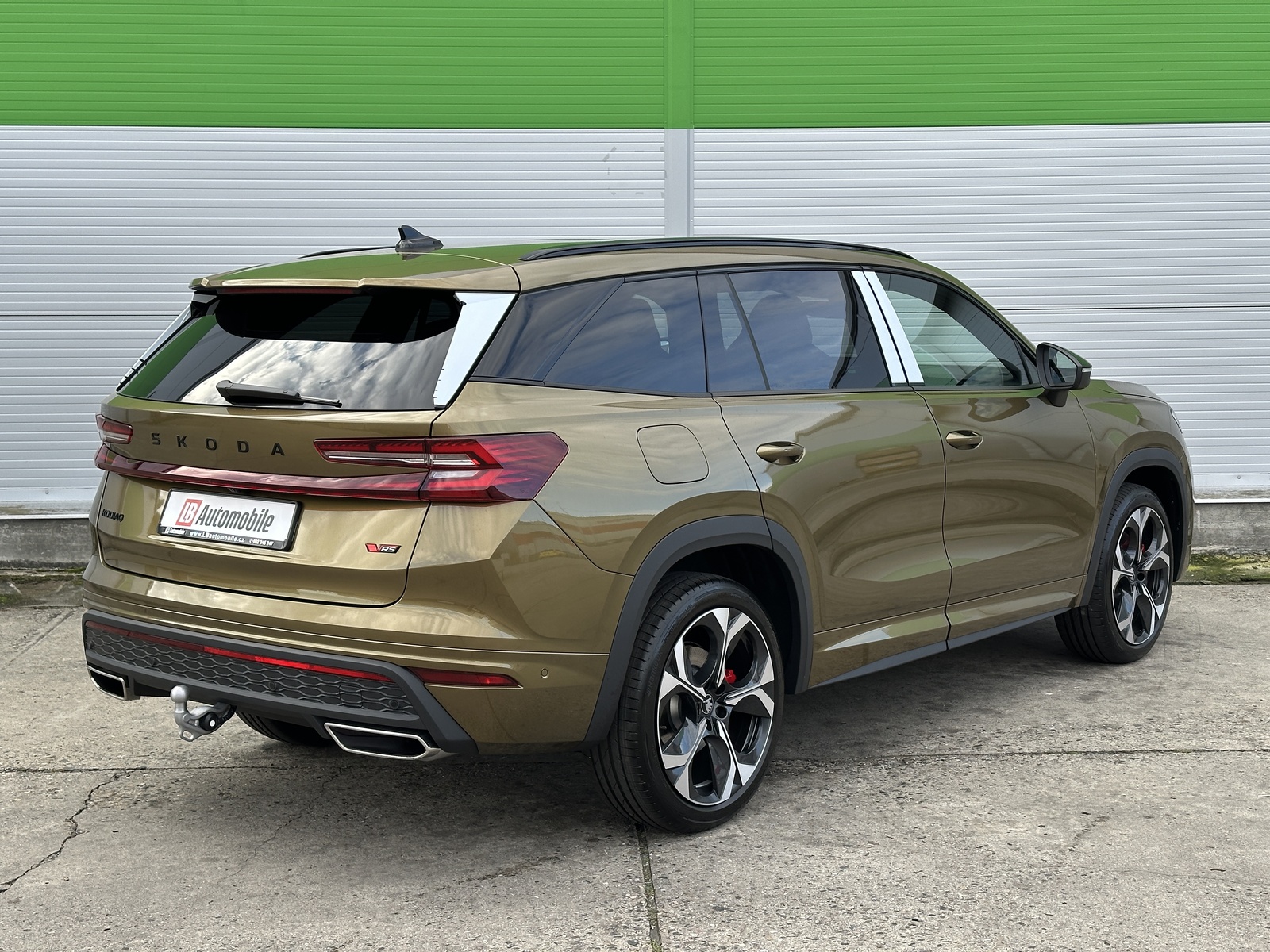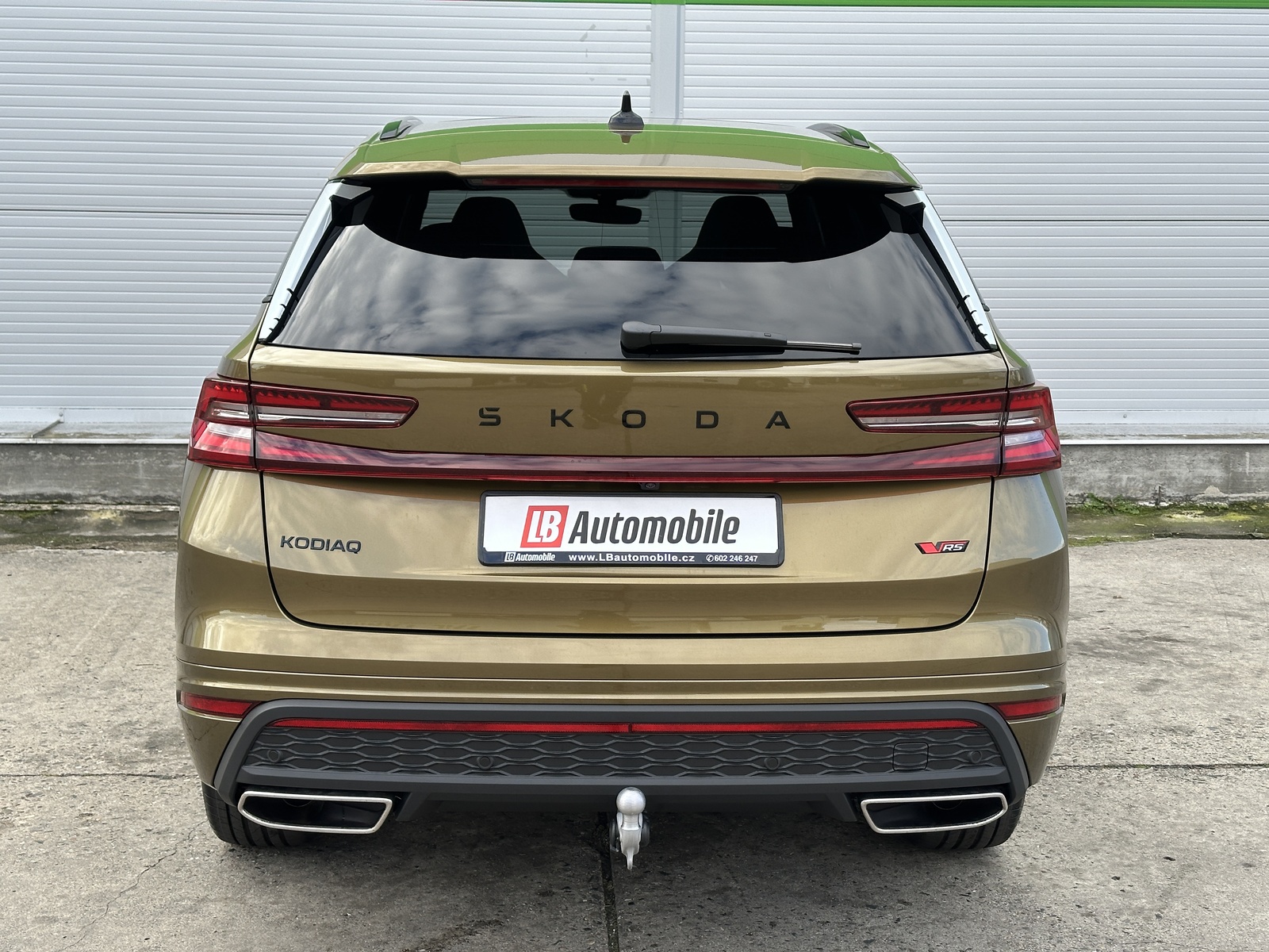 30/10695 Škoda Kodiaq RS 4x4 DSG 2.0TSi 195kW/265PS, 7st. Automatická převodovka DSG, Pohon všech kol 4x4, Tovární záruka Škoda Auto 5let/100.000km, Výbava vozu: Panoramatické střešní okno, Nezávislé topení - Webasto, Interiér RS Suite - Kožená sedadla s odvětráváním vpředu, Tažné zařízení sklopné - el.odjistitelné s Trailer Assist, 3.řada sedadel, Kola z lehkých slitin ALU Škoda "ELIAS" 8Jx20" černá/leštěná, Sportovní nárazníky RS, Adaptivní podvozek DCC+, Progresivní řízení, Volba jízdního režimu, Elektricky nastavitelná přední sedadla s pamětí, Offroad režim, Vyhřívané čelní sklo, Asistovaná jízda 2.5 PLUS - (Prediktivní tempomat, Adaptivní vedení v jízdním pruhu - Lane Assist+, Asistent jízdy v koloně, Nouzový asistent, Automatické parkování, Uložený parkovací manévr, Panoramatický kamerový systém, Proaktivní ochrana cestujících), Osvětlená maska chladiče s logem RS, Head-Up displej, Soundsystem CANTON - 14 reproduktorů včetně subwooferu, Virtuální pedál, Ocelové rezervní kolo, Vyhřívaná zadní sedadla, Vyhřívaný multifunkční sportovní kožený volant, Akustická boční okna vpředu, Infotainment Navi 13" - Webrádio, Čistič obrazovky, KESSY s alarmem - bezklíčové zamykání a startování, Elektrické otevírání zavazadlového prostoru, Matrix-LED přední světlomety, LED zadní světla s animovanými směrovkami, Ambientní osvětlení, Vyhřívaná přední sedadla, Třízónová klimatizace Climatronic, Tónovaná skla a Sunset, Multifunkční panel s otočnými ovladači Smart Dials, Rozpoznávání dopravních značek s ISA kontrolou rychlosti, Front Assist - s varováním a brzděním při hrozící kolizi s vozidly, chodci a cyklisty, Asistence při průjezdu křižovatkou, Asistent mrtvého úhlu - Side Assist, Antikolizní asistent, Kontrola tlaku v pneumatikách, Asistent rozjezdu do kopce, Parkovací senzory vpředu a vzadu - PDC, Upozornění na únavu a pozornost řidiče, 7x airbag, 2x i-Size a 2x Top Tether vzadu a 1x i-Size vpředu pro spolujezdce, Bezdrátové nabíjení pro dva telefony, Nouzové volání SOS eCall, Virtuální Cockpit 10", Senzor světla a deště, Vnější zpětná zrcátka - elektricky nastavitelná, sklopná, vyhřívaná a automaticky zatmavovací na straně řidiče, Elektronická parkovací brzda s funkcí Auto Hold, Elektrické ovládání oken vpředu a vzadu, Středová konzola s držáky nápojů, 12V zásuvka vpředu, 5x USB-C - 2x vpředu, 2x vzadu, 1x u vnitřního zpětného zrcátka, Deštník ve dveřích řidiče, Zadní loketní opěrka, Sada na opravu pneumatik, Nový vůz s registrací, Servisní kniha + dokumentace Škoda Auto, Možnost odpočtu DPH 21%, Skladem - ihned k odběru.