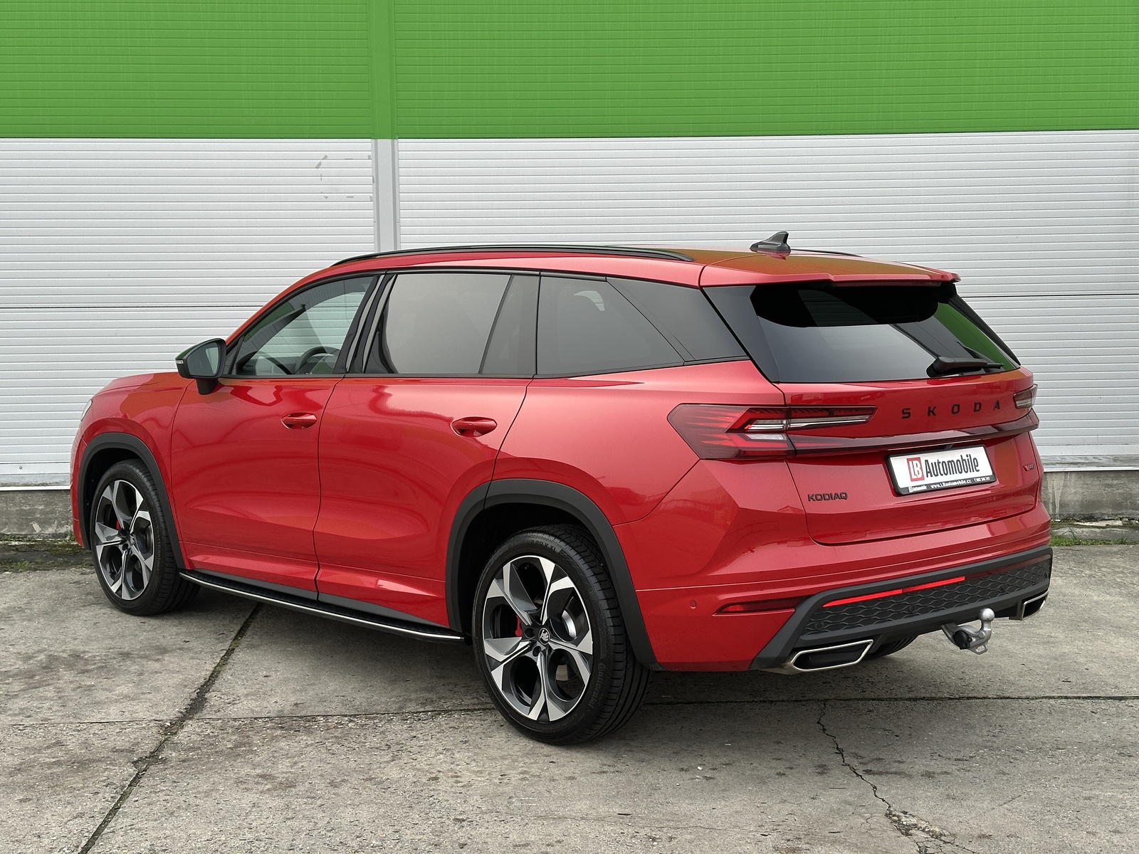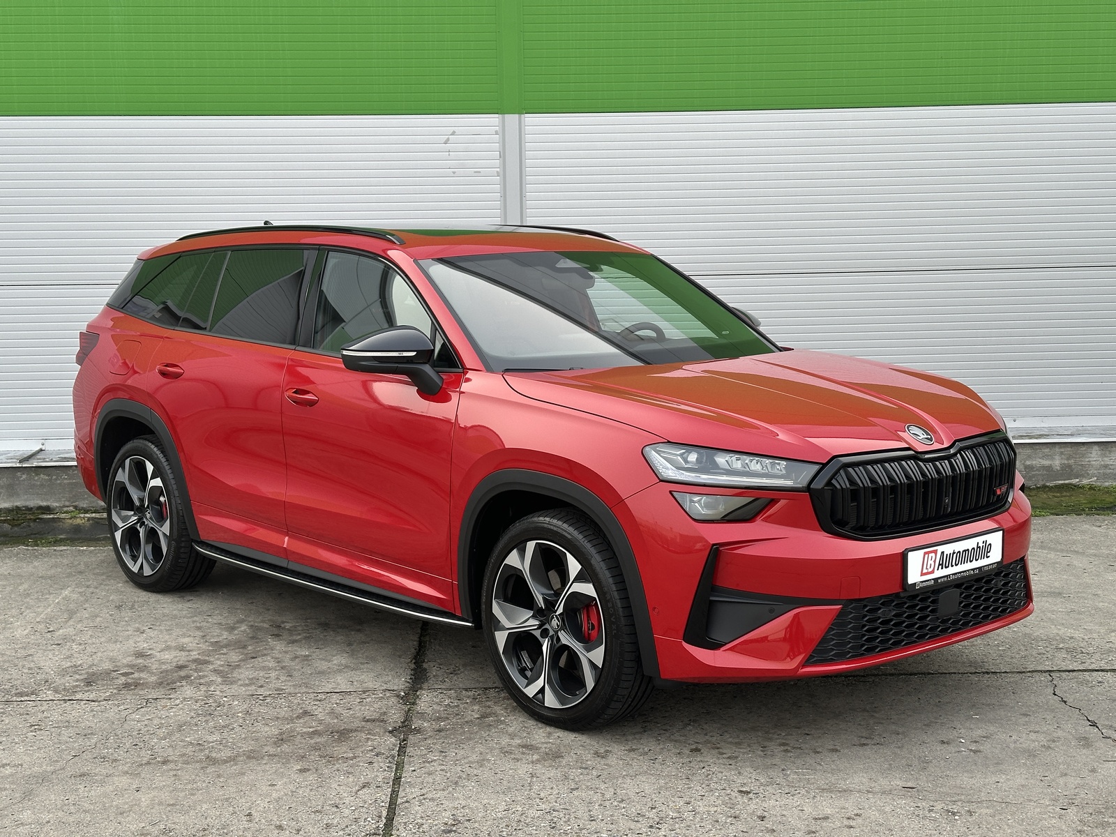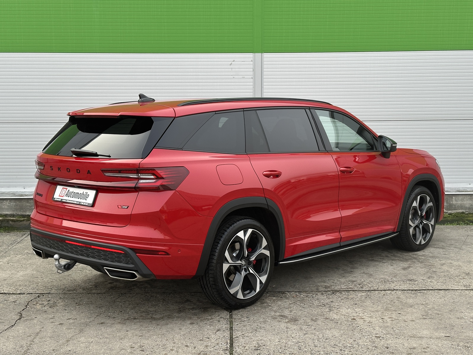 15/10836 Škoda Kodiaq RS 4x4 DSG 2.0TSi 195kW/265PS, 7st. Automatická převodovka DSG, Pohon všech kol 4x4, Tovární záruka Škoda Auto 5let/100.000km, Výbava vozu: Paket Family - (Sluneční rolety zadních bočních oken, Boční airbagy vzadu, Držák telefonu a tabletu, Ochrana hran dveří, Odkládací přihrádka za středovou konzolou, Odpadkový koš), Panoramatické střešní okno - PANORAMA, Dvojitá podlaha zavazadlového prostoru, Nezávislé topení - Webasto, Interiér RS Suite - Kožená sedadla s odvětráváním vpředu, Tažné zařízení sklopné - elektricky odjistitelné s asistentem pro jízdu s přívěsem, Kola z lehkých slitin ALU Škoda "ELIAS" 8Jx20" černá/leštěná, Sportovní nárazníky RS, Adaptivní podvozek DCC+, Progresivní řízení, Volba jízdního režimu, Elektricky nastavitelná přední sedadla s pamětí, Offroad režim, Vyhřívané čelní sklo, Asistovaná jízda 2.5 PLUS - (Prediktivní tempomat, Adaptivní vedení v jízdním pruhu - Lane Assist+, Asistent jízdy v koloně, Nouzový asistent , Automatické parkování, Uložený parkovací manévr, Panoramatický kamerový systém, Proaktivní ochrana cestujících), Osvětlená maska chladiče s logem RS, Head-Up displej, Soundsystem CANTON - 14 reproduktorů včetně subwooferu, Virtuální pedál - otevírání víka kufru pohybem nohy pod zavazadlovým prostorem, Ocelové rezervní kolo, Vyhřívaná zadní sedadla, Vyhřívaný multifunkční sportovní kožený volant, Akustická boční okna vpředu, Infotainment Navi 13" - Webrádio, čistič obrazovky, KESSY s alarmem - bezklíčové zamykání a startování, Elektrické otevírání zavazadlového prostoru, Matrix-LED přední světlomety, LED zadní světla s animovanými směrovkami, Ambientní LED osvětlení, Vyhřívaná přední sedadla, Třízónová automatická klimatizace Climatronic, Tónovaná skla a zatmavená zadní okna - Sunset, Multifunkční panel s otočnými ovladači Smart Dials, Rozpoznávání dopravních značek s ISA kontrolou rychlosti, Front Assist - asistent s varováním a brzděním při hrozící kolizi s vozidly, chodci a cyklisty, Asistence při průjezdu křižovatkou, Asistent mrtvého úhlu - Side Assist, Antikolizní asistent, Senzor tlaku v pneumatikách, Asistent rozjezdu do kopce, Parkovací senzory vpředu a vzadu - PDC, Upozornění na únavu a pozornost řidiče, 7x airbag, 2x i-Size a 2x Top Tether vzadu a 1x i-Size vpředu pro spolujezdce, Bezdrátové nabíjení pro dva telefony, Nouzové volání SOS eCall, Virtuální Cockpit 10", Senzor světla a deště, Vnější zpětná zrcátka - elektricky nastavitelná, sklopná, vyhřívaná a automaticky zatmavovací na straně řidiče, Elektronická parkovací brzda s funkcí Auto Hold, Elektrické ovládání oken vpředu a vzadu, Středová konzola s držáky nápojů, 12V zásuvka vpředu, 5x USB-C - 2x vpředu, 2x vzadu, 1x u vnitřního zpětného zrcátka, Deštník ve dveřích řidiče, Zadní loketní opěrka, Sada na opravu pneumatik, Zánovní vůz, Servisní kniha + dokumentace Škoda Auto, Možnost odpočtu DPH 21%, Skladem - ihned k odběru.