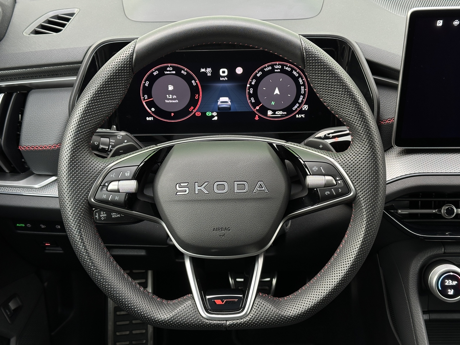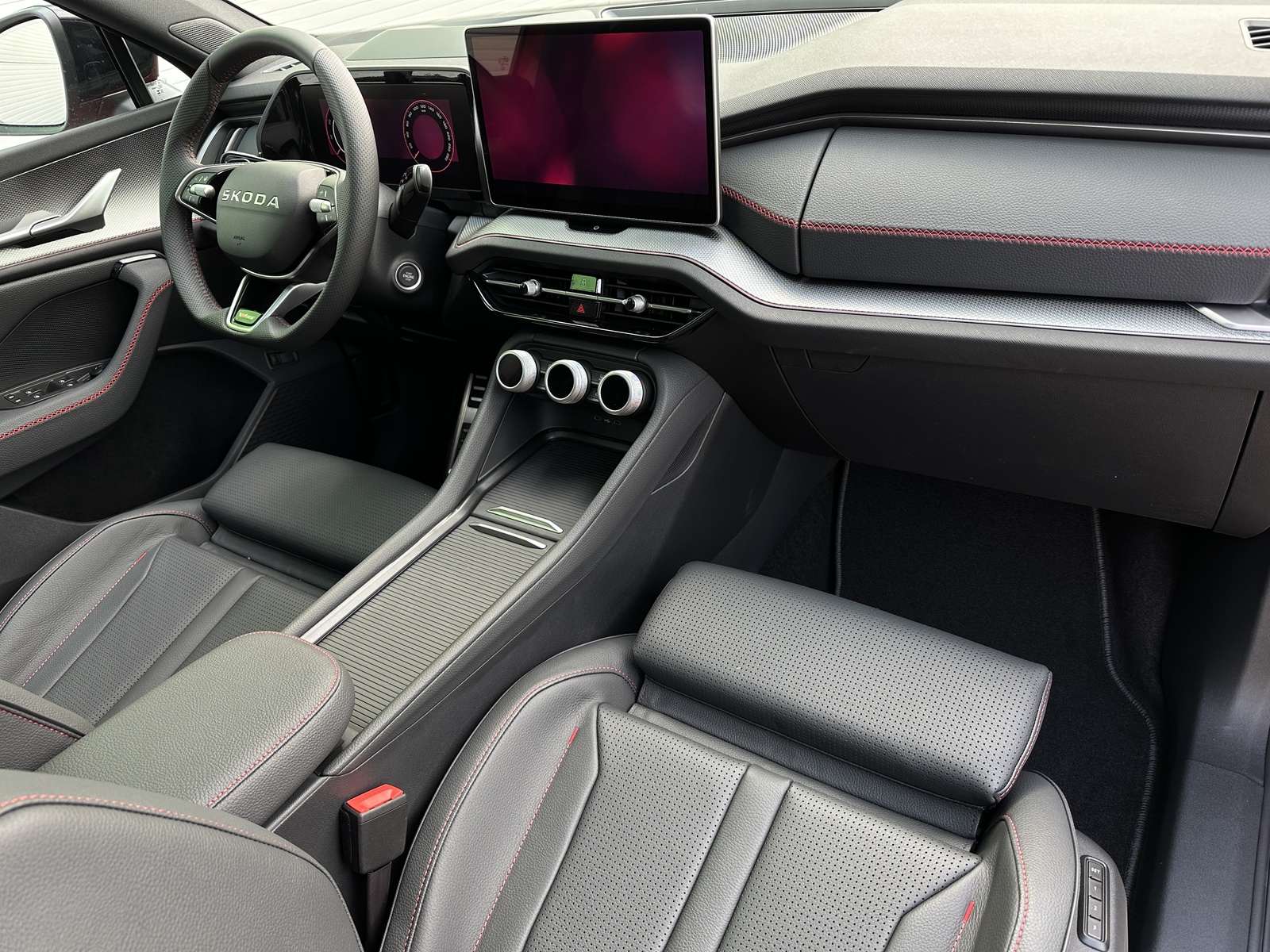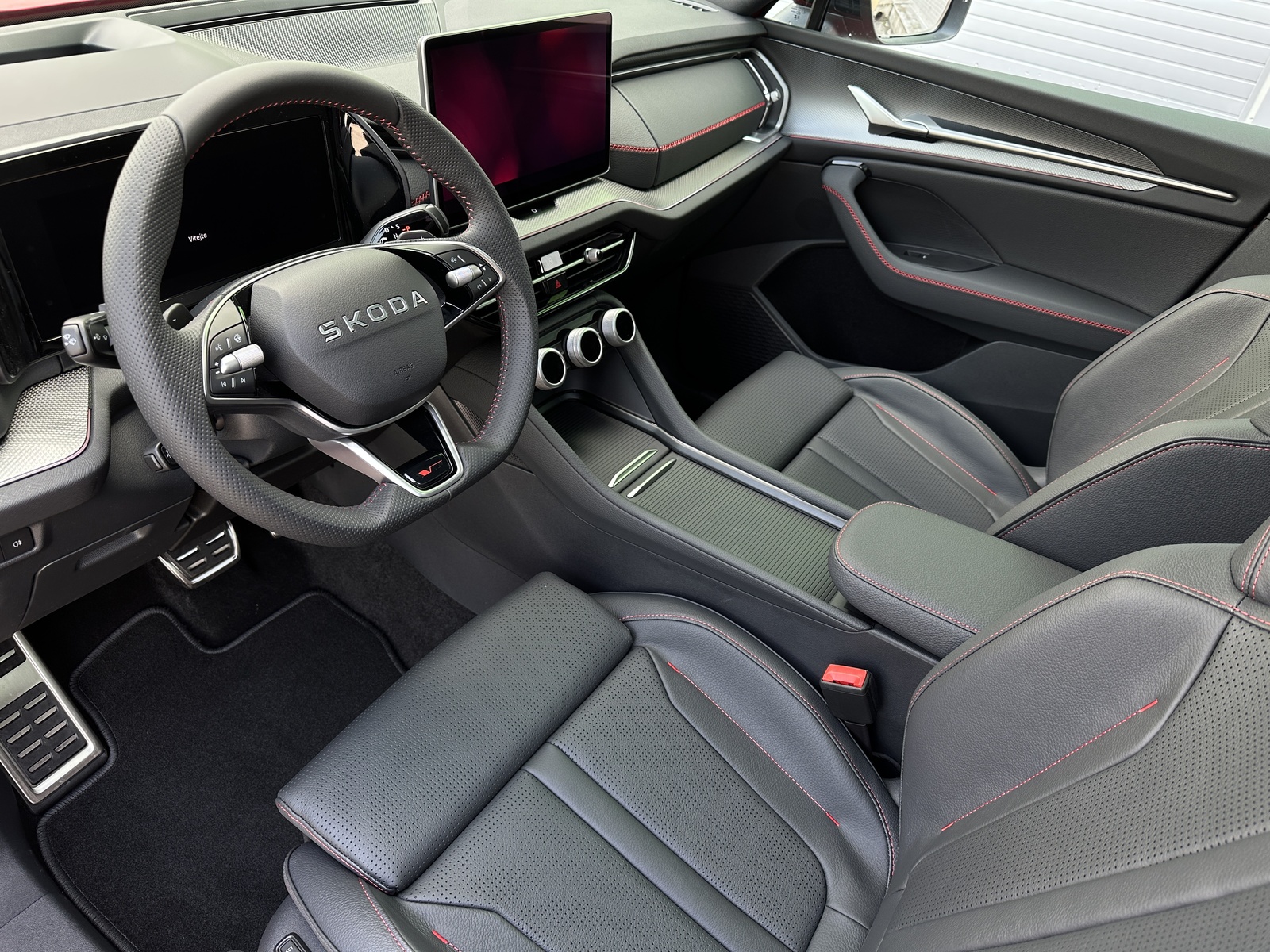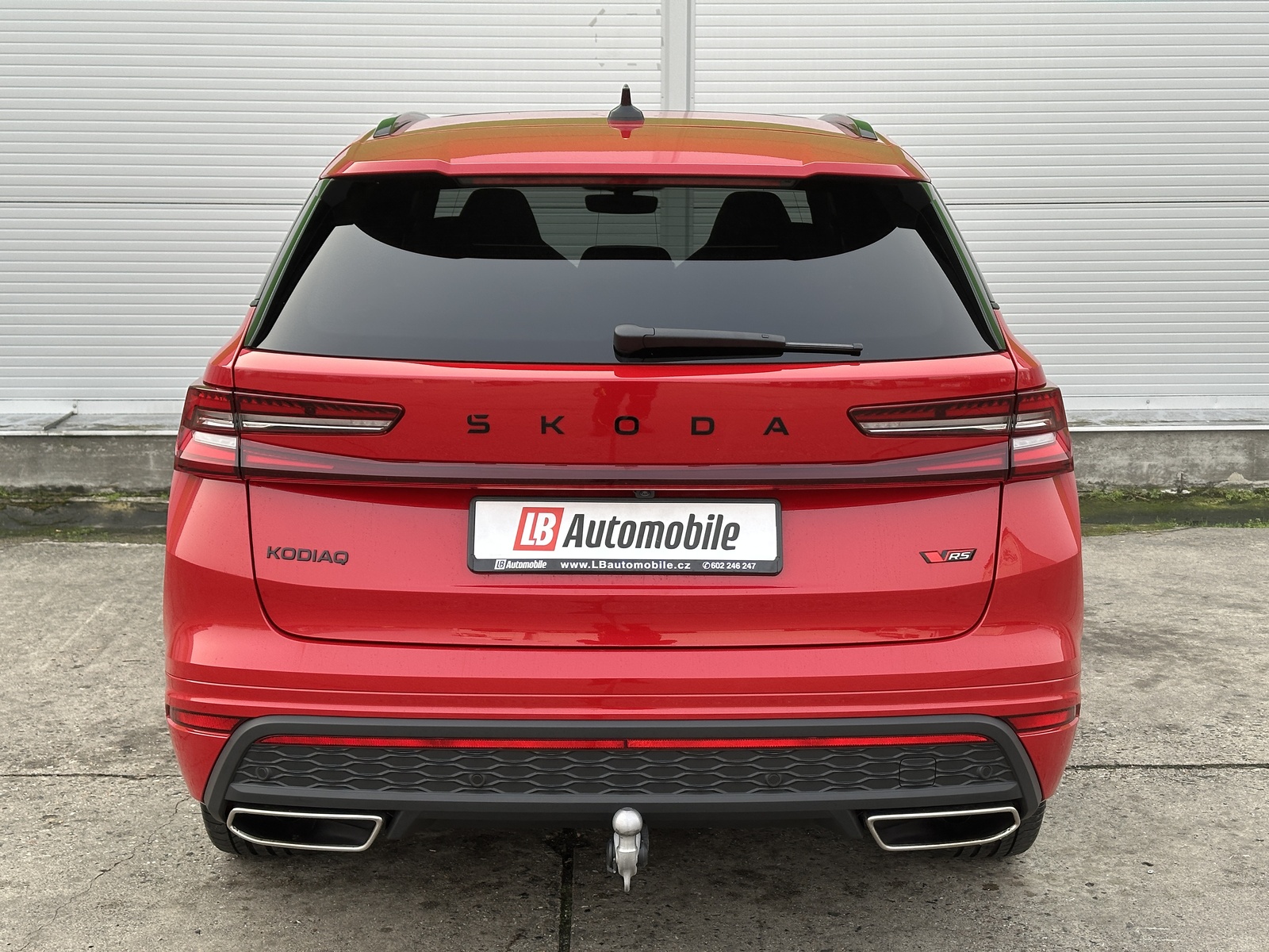 15/10836 Škoda Kodiaq RS 4x4 DSG 2.0TSi 195kW/265PS, 7st. Automatická převodovka DSG, Pohon všech kol 4x4, Tovární záruka Škoda Auto 5let/100.000km, Výbava vozu: Paket Family - (Sluneční rolety zadních bočních oken, Boční airbagy vzadu, Držák telefonu a tabletu, Ochrana hran dveří, Odkládací přihrádka za středovou konzolou, Odpadkový koš), Panoramatické střešní okno - PANORAMA, Dvojitá podlaha zavazadlového prostoru, Nezávislé topení - Webasto, Interiér RS Suite - Kožená sedadla s odvětráváním vpředu, Tažné zařízení sklopné - elektricky odjistitelné s asistentem pro jízdu s přívěsem, Kola z lehkých slitin ALU Škoda "ELIAS" 8Jx20" černá/leštěná, Sportovní nárazníky RS, Adaptivní podvozek DCC+, Progresivní řízení, Volba jízdního režimu, Elektricky nastavitelná přední sedadla s pamětí, Offroad režim, Vyhřívané čelní sklo, Asistovaná jízda 2.5 PLUS - (Prediktivní tempomat, Adaptivní vedení v jízdním pruhu - Lane Assist+, Asistent jízdy v koloně, Nouzový asistent , Automatické parkování, Uložený parkovací manévr, Panoramatický kamerový systém, Proaktivní ochrana cestujících), Osvětlená maska chladiče s logem RS, Head-Up displej, Soundsystem CANTON - 14 reproduktorů včetně subwooferu, Virtuální pedál - otevírání víka kufru pohybem nohy pod zavazadlovým prostorem, Ocelové rezervní kolo, Vyhřívaná zadní sedadla, Vyhřívaný multifunkční sportovní kožený volant, Akustická boční okna vpředu, Infotainment Navi 13" - Webrádio, čistič obrazovky, KESSY s alarmem - bezklíčové zamykání a startování, Elektrické otevírání zavazadlového prostoru, Matrix-LED přední světlomety, LED zadní světla s animovanými směrovkami, Ambientní LED osvětlení, Vyhřívaná přední sedadla, Třízónová automatická klimatizace Climatronic, Tónovaná skla a zatmavená zadní okna - Sunset, Multifunkční panel s otočnými ovladači Smart Dials, Rozpoznávání dopravních značek s ISA kontrolou rychlosti, Front Assist - asistent s varováním a brzděním při hrozící kolizi s vozidly, chodci a cyklisty, Asistence při průjezdu křižovatkou, Asistent mrtvého úhlu - Side Assist, Antikolizní asistent, Senzor tlaku v pneumatikách, Asistent rozjezdu do kopce, Parkovací senzory vpředu a vzadu - PDC, Upozornění na únavu a pozornost řidiče, 7x airbag, 2x i-Size a 2x Top Tether vzadu a 1x i-Size vpředu pro spolujezdce, Bezdrátové nabíjení pro dva telefony, Nouzové volání SOS eCall, Virtuální Cockpit 10", Senzor světla a deště, Vnější zpětná zrcátka - elektricky nastavitelná, sklopná, vyhřívaná a automaticky zatmavovací na straně řidiče, Elektronická parkovací brzda s funkcí Auto Hold, Elektrické ovládání oken vpředu a vzadu, Středová konzola s držáky nápojů, 12V zásuvka vpředu, 5x USB-C - 2x vpředu, 2x vzadu, 1x u vnitřního zpětného zrcátka, Deštník ve dveřích řidiče, Zadní loketní opěrka, Sada na opravu pneumatik, Zánovní vůz, Servisní kniha + dokumentace Škoda Auto, Možnost odpočtu DPH 21%, Skladem - ihned k odběru.
