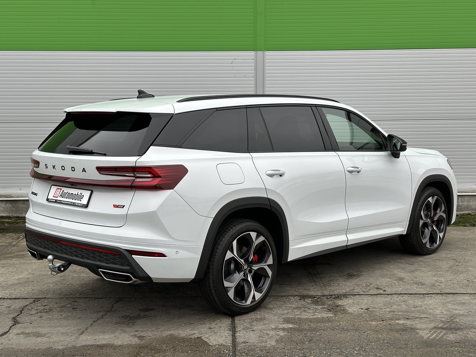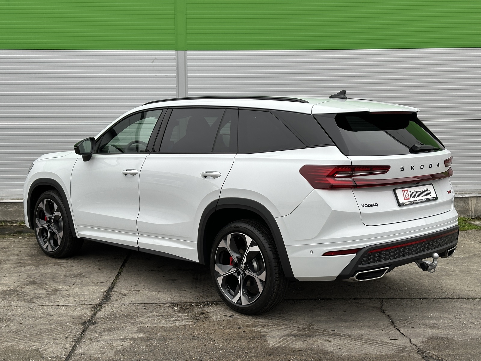 303/10941 Škoda Kodiaq RS 4x4 DSG 2.0TSi 195kW/265PS, Pohon všech kol 4x4, 7st. Automatická převodovka DSG, Tovární záruka Škoda Auto 5let/100.000km, Výbava vozu: Paket Family - (Sluneční rolety zadních bočních oken, Boční airbagy vzadu, Držák telefonu a tabletu, Ochrana hran dveří, Odkládací přihrádka za středovou konzolou, Odpadkový koš), Nezávislé topení - Webasto, Tažné zařízení sklopné - elektricky odjistitelné s asistentem pro manévrování s přívěsem, Kola z lehkých slitin ALU Škoda "ELIAS" 8Jx20" černá/leštěná, Sportovní nárazníky RS, Interiér RS - Suedia/umělá kůže, Adaptivní podvozek DCC+, Progresivní řízení, Volba jízdního režimu, Elektricky nastavitelná přední sedadla s pamětí, Offroad režim, Vyhřívané čelní sklo, Asistovaná jízda 2.5 PLUS - (Prediktivní tempomat, Adaptivní vedení v jízdním pruhu - Lane Assist+, Asistent jízdy v koloně, Nouzový asistent, Automatické parkování, Uložený parkovací manévr, Panoramatický kamerový systém - 360°KAMERA, Proaktivní ochrana cestujících), Osvětlená maska chladiče s logem RS, Head-Up displej, Soundsystém CANTON - 14 reproduktorů včetně Subwooferu, Virtuální pedál, Ocelové rezervní kolo, Vyhřívaná zadní sedadla, Vyhřívaný multifunkční sportovní kožený volant, Akustická boční okna vpředu, Infotainment Navi 13" - Webrádio, čistič obrazovky, KESSY s alarmem - bezklíčové zamykání a startování, Elektrické otevírání zavazadlového prostoru, Matrix-LED přední světlomety, LED zadní světla s animovanými směrovkami, Ambientní osvětlení, Vyhřívaná přední sedadla, Třízónová klimatizace Climatronic, Tónovaná skla a Sunset - zatmavená zadní okna, Multifunkční panel s otočnými ovladači Smart Dials, Rozpoznávání dopravních značek s ISA kontrolou rychlosti, Front Assist - asistent varování a brzdění při hrozící kolizi s vozidly, chodci a cyklisty, Asistence při průjezdu křižovatkou, Asistent mrtvého úhlu - Side Assist, Antikolizní asistent, Kontrola tlaku v pneumatikách, Asistent rozjezdu do kopce, Parkovací senzory vpředu a vzadu - PDC, Upozornění na únavu a pozornost řidiče, 7x airbag, 2x i-Size a 2x Top Tether vzadu a 1x i-Size vpředu pro spolujezdce, Bezdrátové nabíjení pro dva telefony, Nouzové volání SOS - eCall, Virtuální Cockpit 10", Senzor světla a deště, Vnější zpětná zrcátka - elektricky nastavitelná, sklopná, vyhřívaná a automaticky zatmavovací na straně řidiče, Elektronická parkovací brzda s funkcí Auto Hold, Elektrické ovládání oken vpředu a vzadu, Středová konzola s držáky nápojů, 12V zásuvka vpředu, 5x USB-C - 2x vpředu, 2x vzadu, 1x u vnitřního zpětného zrcátka, Deštník ve dveřích řidiče, Zadní loketní opěrka, Sada na opravu pneumatik, Nový vůz ČR, Servisní kniha + dokumentace Škoda Auto, Možnost odpočtu DPH 21%, Skladem - ihned k odběru.