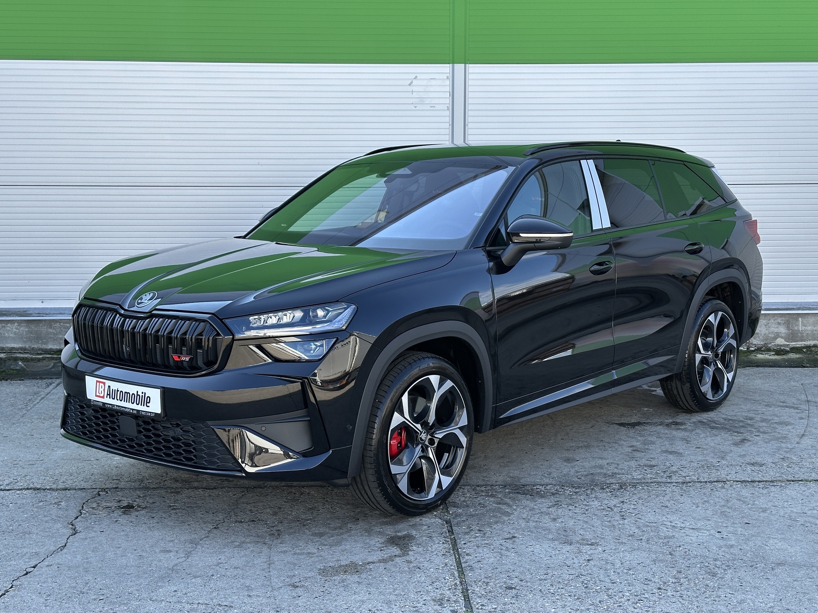 203/11026 Škoda Kodiaq RS DSG 4x4 7 MÍST, 2.0TSi 195kW/265PS, 7st. Automatická převodovka DSG, Pohon všech kol 4x4, Tovární záruka Škoda Auto 5let/100.000km, Výbava vozu: Panoramatické střešní okno, Nezávislé topení - Webasto, Tažné zařízení sklopné - el.odjistitelné s Trailer Assist pro manévrování s přívěsem, 3.řada sedadel, Kola z lehkých slitin ALU Škoda "ELIAS" 8Jx20" černá/leštěná, Sportovní nárazníky RS, Adaptivní podvozek DCC+, Progresivní řízení, Volba jízdního režimu, Elektricky nastavitelná přední sedadla s pamětí, Offroad režim, Vyhřívané čelní sklo, Asistovaná jízda 2.5 PLUS - (Prediktivní tempomat, Adaptivní vedení v jízdním pruhu - Lane Assist+, Asistent jízdy v koloně, Nouzový asistent, Automatické parkování, Uložený parkovací manévr, Panoramatický kamerový systém, Proaktivní ochrana cestujících), Osvětlená maska chladiče s logem RS, Head-Up displej, Soundsystem CANTON - 14 reproduktorů včetně subwooferu, Virtuální pedál, Ocelové rezervní kolo, Vyhřívaná zadní sedadla, Vyhřívaný multifunkční sportovní kožený volant, Akustická boční okna vpředu, Infotainment NAVI 13" - Webrádio, Čistič obrazovky, KESSY s alarmem - bezklíčové zamykání a startování, Elektrické otevírání zavazadlového prostoru, Matrix-LED přední světlomety, LED zadní světla s animovanými směrovkami, Ambientní osvětlení, Vyhřívaná přední sedadla, Třízónová klimatizace Climatronic, Tónovaná skla a Sunset, Multifunkční panel s otočnými ovladači Smart Dials, Rozpoznávání dopravních značek s ISA kontrolou rychlosti, Front Assist - s varováním a brzděním při hrozící kolizi s vozidly, chodci a cyklisty, Asistence při průjezdu křižovatkou, Asistent mrtvého úhlu - Side Assist, Antikolizní asistent, Kontrola tlaku v pneumatikách, Asistent rozjezdu do kopce, Parkovací senzory vpředu a vzadu - PDC P/Z, Upozornění na únavu a pozornost řidiče, 7x airbag, 2x i-Size a 2x Top Tether vzadu a 1x i-Size vpředu pro spolujezdce, Bezdrátové nabíjení pro dva telefony, Nouzové volání SOS eCall, Virtuální Cockpit 10", Senzor světla a deště, Vnější zpětná zrcátka - elektricky nastavitelná, sklopná, vyhřívaná a automaticky zatmavovací na straně řidiče, Elektronická parkovací brzda s funkcí Auto Hold, Elektrické ovládání oken vpředu a vzadu, Středová konzola s držáky nápojů, 12V zásuvka vpředu, 5x USB-C - 2x vpředu, 2x vzadu, 1x u vnitřního zpětného zrcátka, Deštník ve dveřích řidiče, Zadní loketní opěrka, Sada na opravu pneumatik, Nový vůz s registrací, NOVÉ ČR, Servisní kniha + dokumentace Škoda Auto, Možnost odpočtu DPH 21%, Termín odběru a převzetí 11.03.2026.
