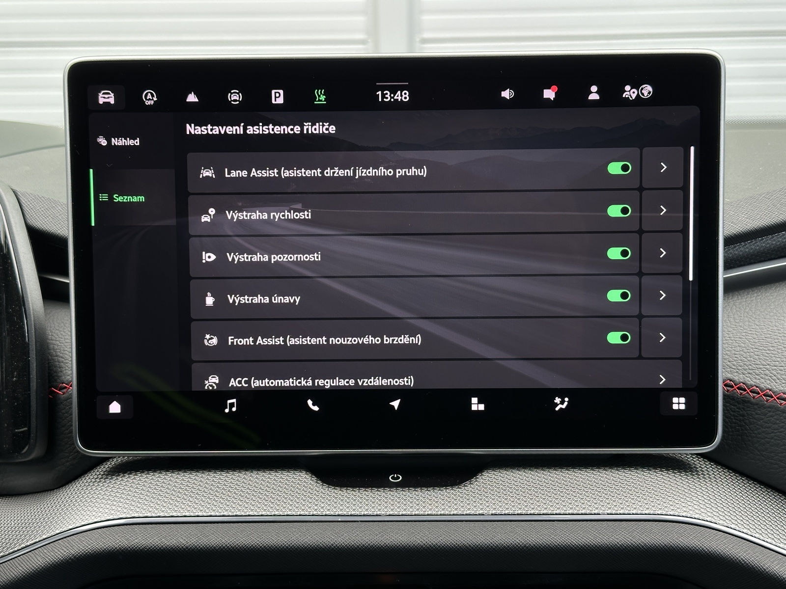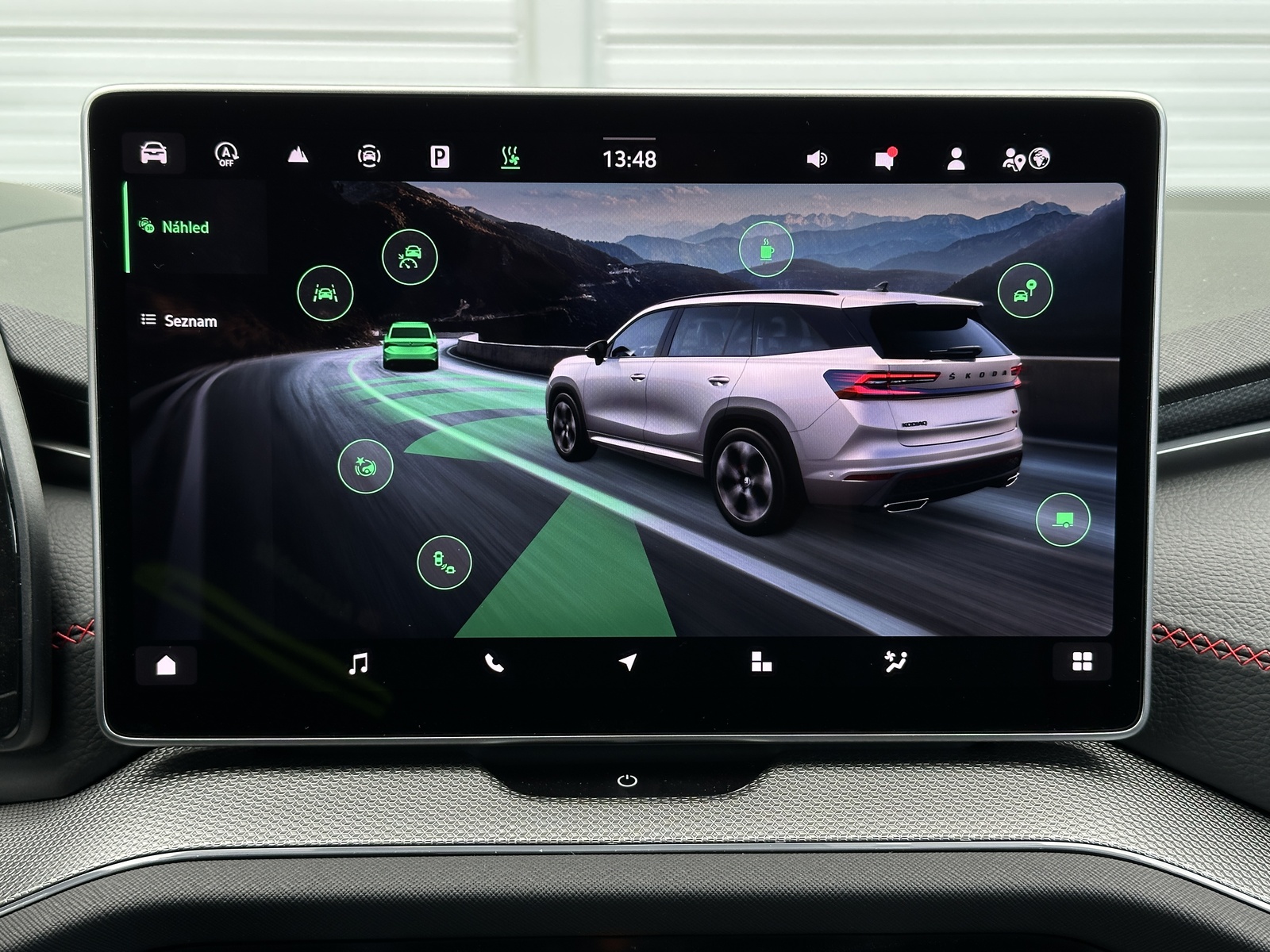 ABS, Adaptivní regulace podvozku, adaptivní tempomat, airbag, alarm, Ambientní LED osvětlení interiéru, Android Auto, Apple Car Play, Asistent pro jízdu v koloně, Asistent pro odbočování, Asistent pro vedení vozu v jízdních pruzích, Asistent při jízdě ze svahu, asistent rozjezdu do kopce, Asistent stability přívěsu (TSA), Asistent udržování odstupu, Asistent změny jízdního pruhu, automatická klimatizace, automatická převodovka, automatická uzávěrka diferenciálu, automatické svícení, autorádio, Bezdrátová nabíječka mobilních telefonů (Qi), bezklíčkové ovládání, bluetooth, centrální zamykání, dálkové centrální zamykání, deaktivace airbagu spolujezdce, dělená zadní sedadla, Denní svícení, Digitální příjem rádia (DAB), Digitální přístrojová deska, Digitální přístrojový štít, Dotykové ovládání palubního počítače, EDS, Elektrické dovírání zavazadlového prostoru, Elektrické tažné zařízení, Elektrochromatické vnitřní zpětné zrcátko, Elektronická uzávěrka diferenciálu (EDS), el. ovládání oken, el. ovládání zrcátek, el. ovládaný kufr, El. parkovací brzda, el. seřiditelná sedadla, El. seřiditelné sedadlo řidiče, el. sklopná zrcátka, el. startér, ESP, Head-up display, Hlasové ovládání palubního počítače, hlídání mrtvého úhlu, imobilizér, isofix, kožená sedadla, kožené čalounění, LED adaptivní světlomety, LED denní svícení, LED matrixové světlomety, LED světlomety plnohodnotné, litá kola, Malý kožený paket, Mobilní připojení, multifunkční volant, nastavitelná sedadla, nastavitelný volant, natáčecí světlomety, navigační systém, nezávislé topení, nouzové brždění, Odvětrávání sedadel, Ochrana proti odcizení a vloupání, originál autorádio, Originální autorádio, Pádla řazení na volantu, palubní počítač, Pamět nastavení sedadla řidiče, parkovací asistent, parkovací kamera, parkovací senzory, Parkovací senzory přední, Parkovací senzory zadní, podélný posuv sedadel, pohon 4 x 4, posilovač řízení, Prediktivní tempomat, Premiový audiosystém, protiprokluzový systém kol (ASR), Přístrojová deska s barevným displejem, rádio, regulace při jízdě ze svahu, regulace tuhosti podvozku, rezervní kolo, Roletky na zadní okna, Rozpoznávání dopravních značek, satelitní navigace, senzor stěračů, senzor tlaku v pneumatikách, sledování jízdního pruhu, sledování únavy řidiče, sportovní sedadla, Start/Stop systém, střešní nosič, Systém nouzového zastavení, tažné zařízení, tónovaná skla, USB, uzávěrka mezinápravového diferenciálu, venkovní teploměr, Volba jízdního režimu, vyhřívaná sedadla, Vyhřívaná zadní sedadla, vyhřívaná zrcátka, vyhřívané čelní sklo, vyhřívaný volant, výškově nastavitelná sedadla, výškově nastavitelné sedadlo řidiče, Zadní loketní opěrka, zadní stěrač, záruka, Zatmavená zadní skla, 360° monitorovací systém (AVM)