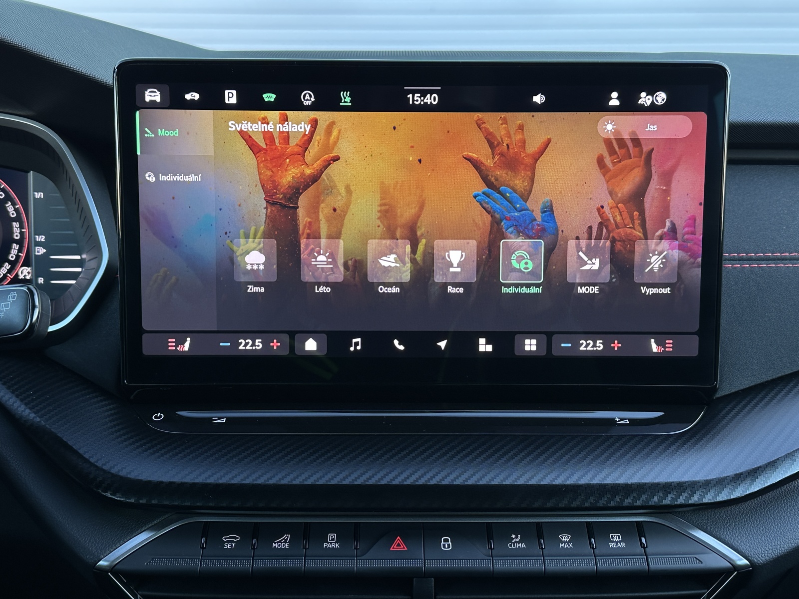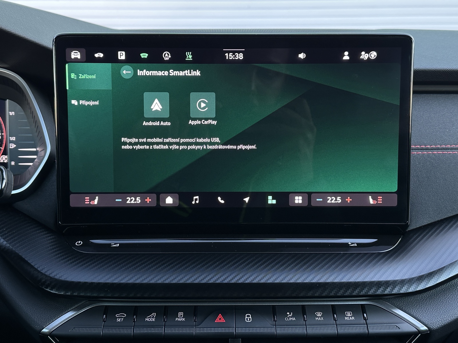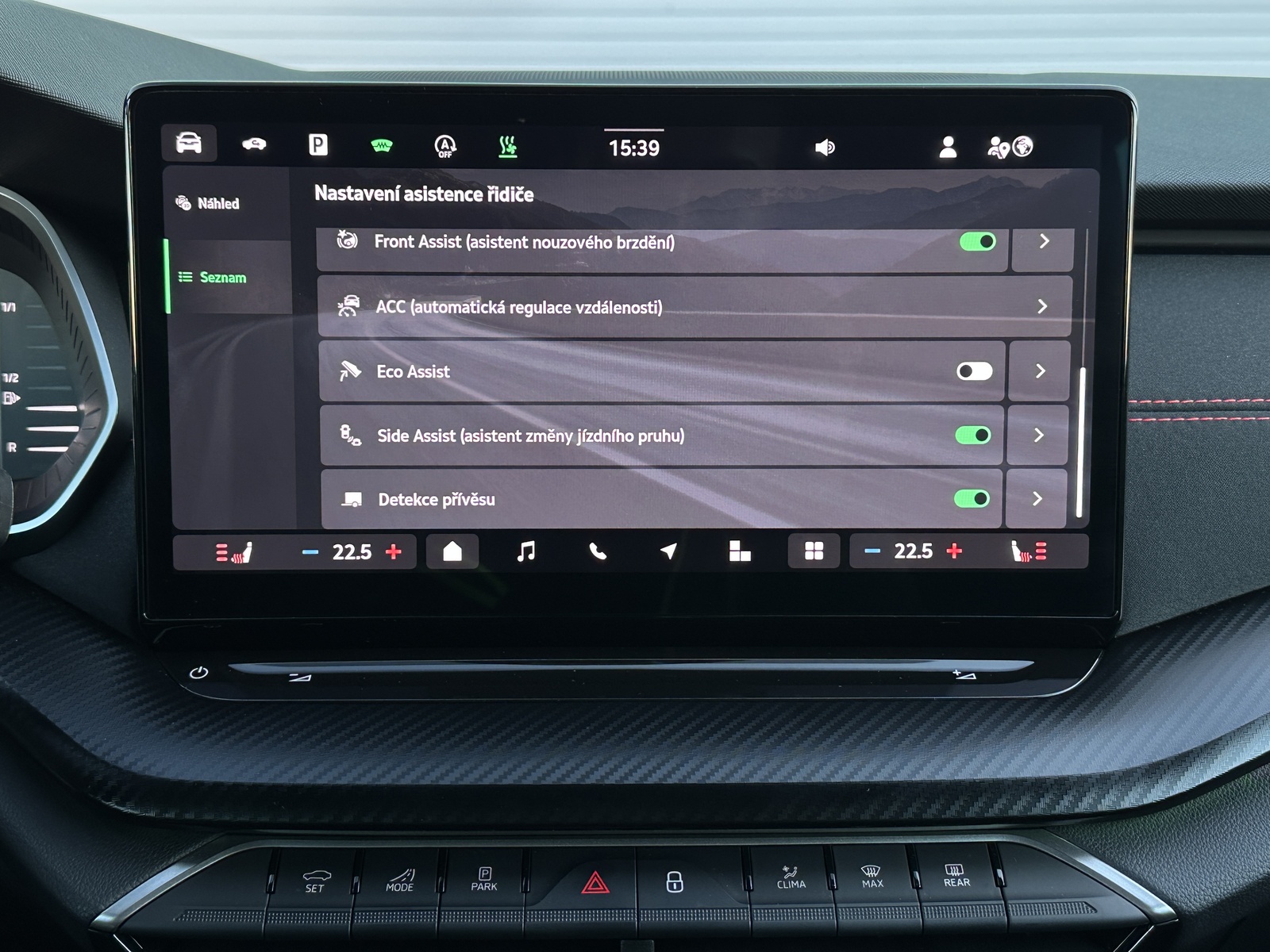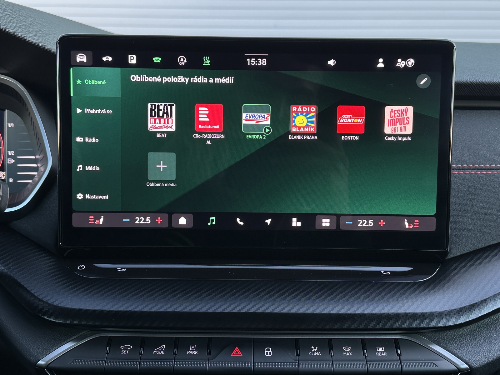 ABS, Adaptivní regulace podvozku, adaptivní tempomat, airbag, alarm, Ambientní LED osvětlení interiéru, Android Auto, Apple Car Play, Asistent pro jízdu v koloně, Asistent pro odbočování, Asistent pro vedení vozu v jízdních pruzích, asistent rozjezdu do kopce, Asistent udržování odstupu, Asistent změny jízdního pruhu, automatická klimatizace, automatická převodovka, automatické svícení, autorádio, Bezdrátová nabíječka mobilních telefonů (Qi), bezklíčkové ovládání, bluetooth, centrální zamykání, dálkové centrální zamykání, deaktivace airbagu spolujezdce, dělená zadní sedadla, Denní svícení, Digitální příjem rádia (DAB), Digitální přístrojová deska, Dotykové ovládání palubního počítače, dvouzónová klimatizace, Elektrické dovírání zavazadlového prostoru, Elektrické tažné zařízení, Elektrochromatické vnitřní zpětné zrcátko, el. ovládání oken, el. ovládání zrcátek, el. ovládaný kufr, El. parkovací brzda, el. sklopná zrcátka, el. startér, ESP, Hlasové ovládání palubního počítače, hlídání mrtvého úhlu, imobilizér, isofix, LED adaptivní světlomety, LED denní svícení, LED matrixové světlomety, LED světlomety plnohodnotné, litá kola, Malý kožený paket, mlhovky, Mobilní připojení, multifunkční volant, nastavitelná sedadla, nastavitelný volant, natáčecí světlomety, navigační systém, nezávislé topení, nouzové brždění, originál autorádio, Originální autorádio, ostřikovače světlometů, Pádla řazení na volantu, palubní počítač, panoramatická střecha, parkovací kamera, parkovací senzory, Parkovací senzory přední, Parkovací senzory zadní, podélný posuv sedadel, posilovač řízení, Prediktivní tempomat, Premiový audiosystém, protiprokluzový systém kol (ASR), Přístrojová deska s barevným displejem, rádio, regulace tuhosti podvozku, rezervní kolo, Rozpoznávání dopravních značek, satelitní navigace, senzor stěračů, senzor tlaku v pneumatikách, sledování jízdního pruhu, sledování únavy řidiče, sportovní podvozek, sportovní sedadla, Start/Stop systém, střešní nosič, střešní okno, Systém nouzového zastavení, tažné zařízení, tempomat, tónovaná skla, USB, venkovní teploměr, Volba jízdního režimu, vyhřívaná sedadla, vyhřívaná zrcátka, vyhřívané čelní sklo, Vyhřívané trysky ostřikovačů skla, vyhřívaný volant, výškově nastavitelná sedadla, výškově nastavitelné sedadlo řidiče, Zadní loketní opěrka, zadní stěrač, záruka, Zatmavená zadní skla, 8 x airbag