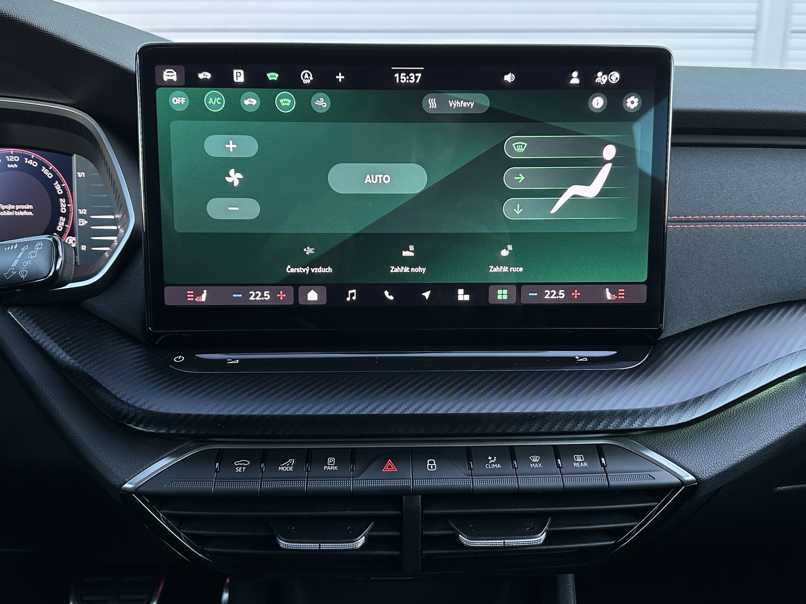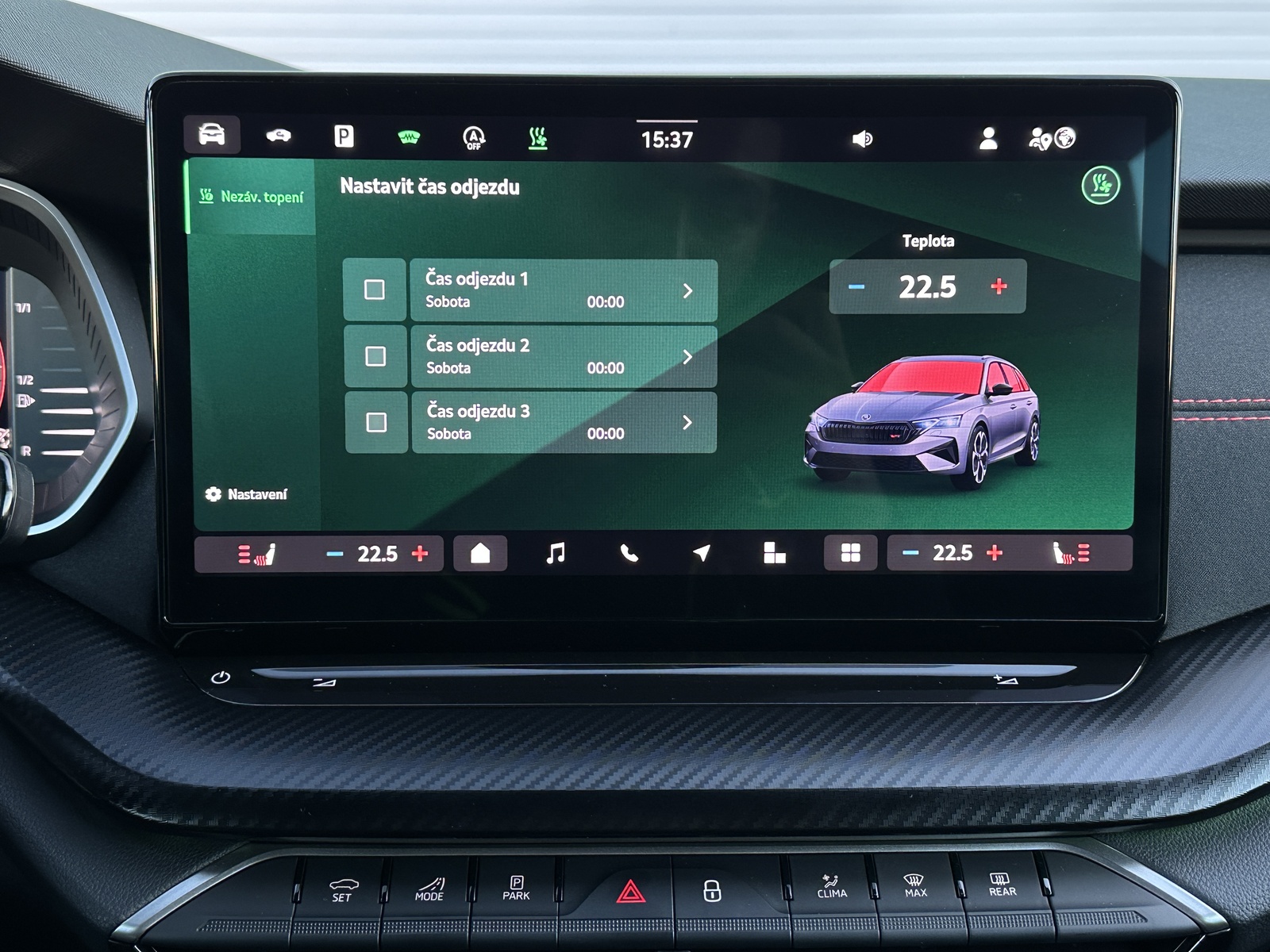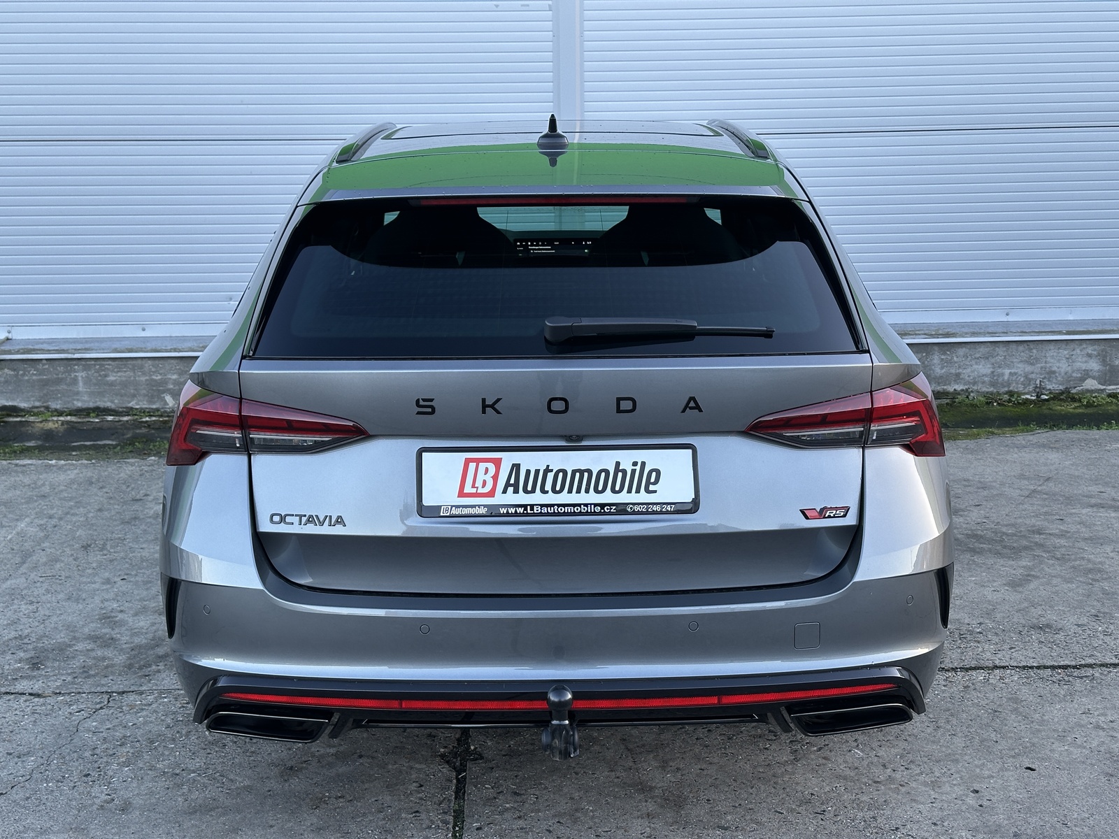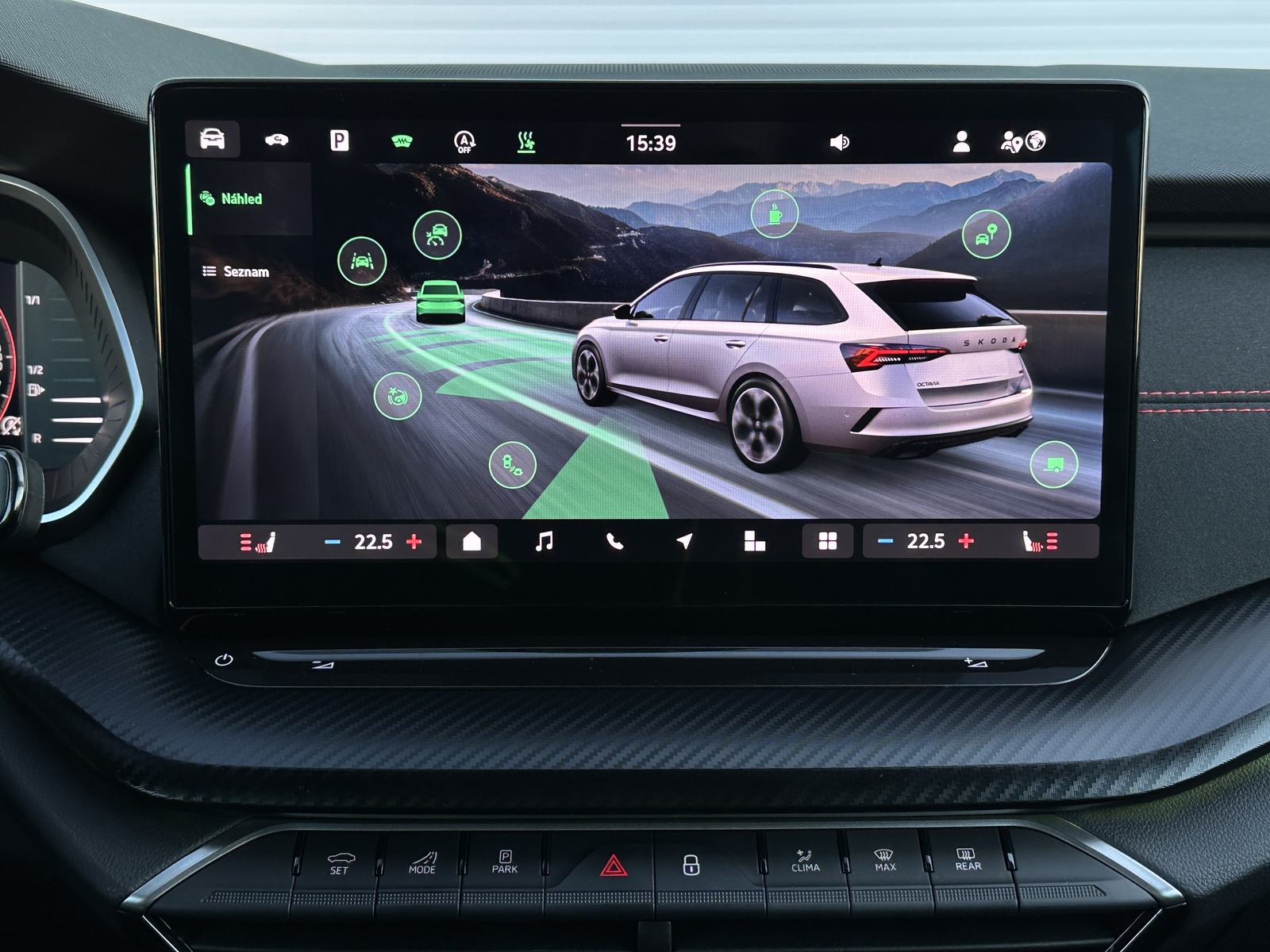 160/10843 Škoda Octavia RS Combi 2.0TSi DSG 195kW/265PS, 7st. Automatická převodovka DSG, Tovární záruka Škoda Auto 5let/100.000km, Výbava vozu: Panoramatické střešní okno, Adaptivní podvozek - DCC, Nezávislé topení - Webasto, Kola z lehkých slitin Škoda ALU "ELIAS" 7.5Jx19" Leštěná, Tažné zařízení sklopné - el. odjistitelné, Asistovaná jízda 1.5 PLUS - (Adaptivní asistent pro udržování v jízdním pruhu - Lane Assist, Asistent pro sledování mrtvého úhlu - Side Assist), Front Assist - varování a nouzové brzdění v případě hrozící srážky s vozidly, chodci a cyklisty, Asistent rozpoznávání dopravních značek, Elektronicky sklopná vnější zpětná zrcátka, vyhřívaná s automatickým zatmavováním na straně řidiče, Asistent průjezdu křižovatkou, Světelný a dešťový senzor, Kontrola tlaku v pneumatikách, Asistent rozjezdu do kopce, Asistent rozpoznání únavy řidiče, Progresivní řízení, Volba jízdního režimu, Přední a zadní parkovací senzory - PDC, Zadní parkovací kamera, Prediktivní tempomat - ACC, Dvouzónová automatická klimatizace Climatronic, Vyhřívané čelní sklo, Virtuální Pedál - otevírání víka kufru pohybem nohy pod zavazadlovým prostorem, Virtuální Cockpit 10", Infotainment s Navigací 13", Start/Stop systém, Centrální zamykání, Dálkové centrální zamykání, Imobilizér, Alarm, Systém nouzového volání SOS eCall+, Matrix-LED přední světlomety, Top-LED zadní světla s animovanými ukazateli směru jízdy, Ambientní LED osvětlení interiéru, KESSY s alarmem - bezklíčové odemykání a startování, Výškově nastavitelná sedadla řidiče a spolujezdce, Bederní opěrky na předních sedadlech, Vyhřívaná přední sedadla, Potah sedadel - látka, Ostřikovače předních světlometů, Digitální asistent Laura, Elektrické stahování předních a zadních oken, Automaticky stmívatelné vnitřní zpětné zrcátko, DAB - Digitální příjem rádia, Palubní počítač, Mobilní připojení, Digitální přístrojová deska, Bezdrátový Smartlink, Soundsystém CANTON, Bezdrátové nabíjení telefonu s chlazením, 2x USB-C vpředu, 8x Airbag, 12V zásuvka v zavazadlovém prostoru, 2x Isofix a 2x Top Tether vzadu, Vyhřívaný multifunkční sportovní kožený volant pro DSG s pádly řazení pod volantem, Ocelové rezervní kolo, Servisní kniha + dokumentace Škoda Auto, Možnost odpočtu DPH 21%, Skladem - ihned k odběru.
