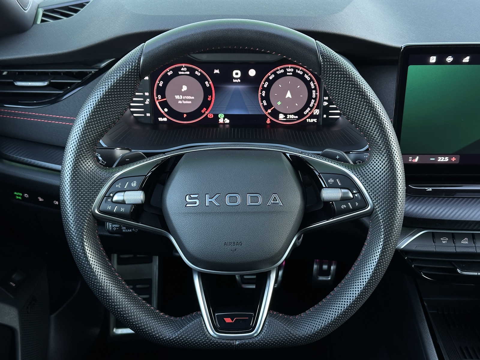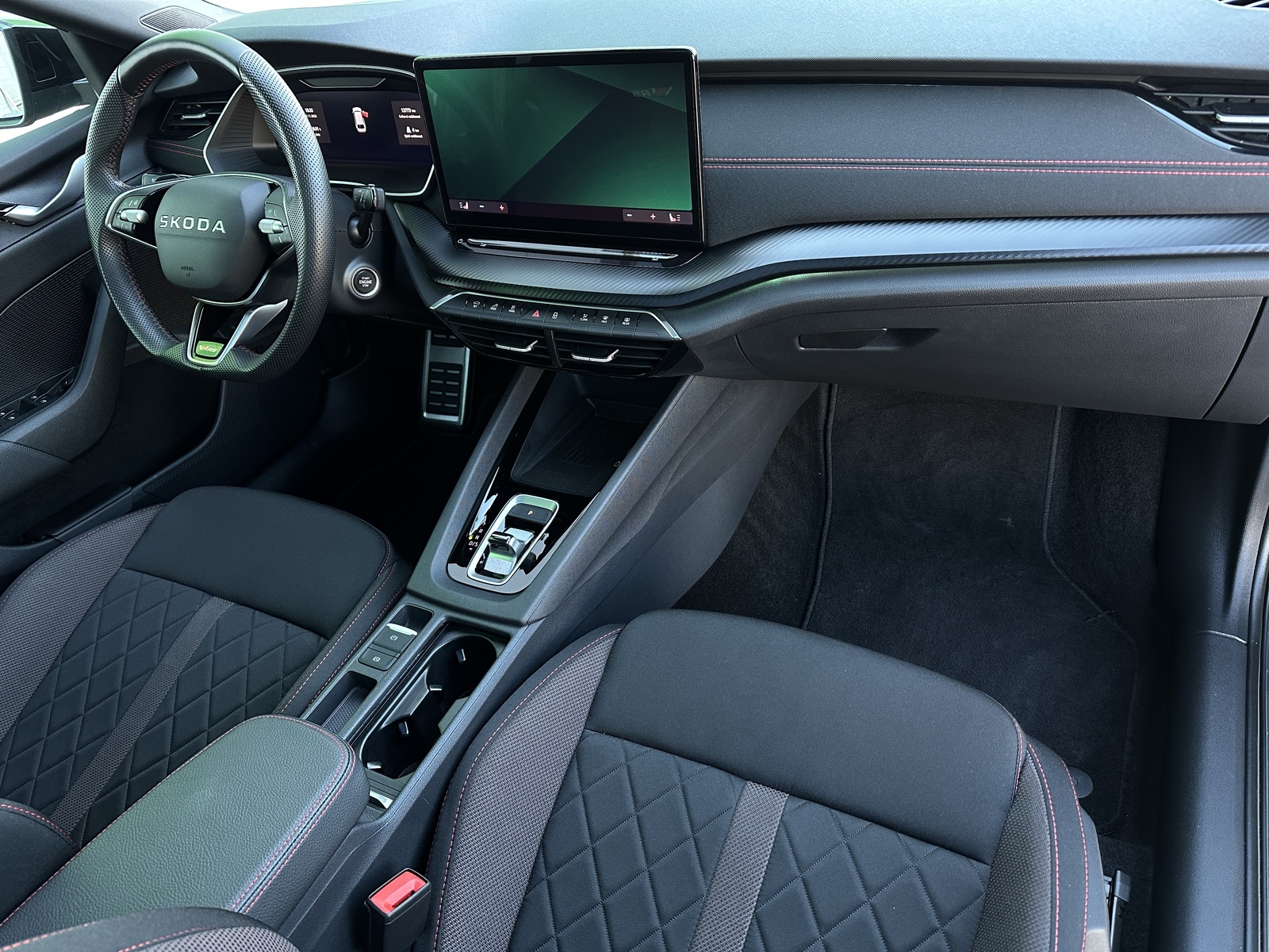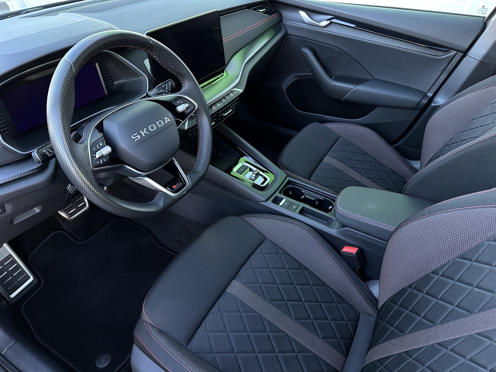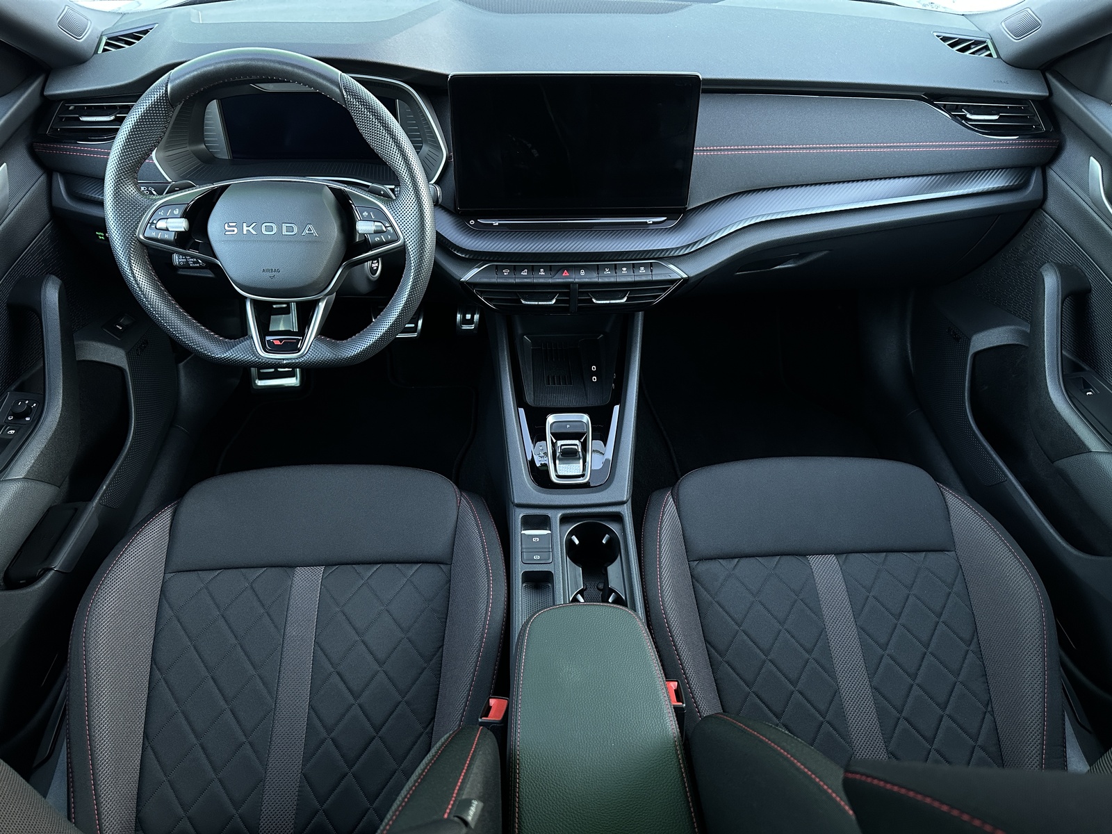 160/10843 Škoda Octavia RS Combi 2.0TSi DSG 195kW/265PS, 7st. Automatická převodovka DSG, Tovární záruka Škoda Auto 5let/100.000km, Výbava vozu: Panoramatické střešní okno, Adaptivní podvozek - DCC, Nezávislé topení - Webasto, Kola z lehkých slitin Škoda ALU "ELIAS" 7.5Jx19" Leštěná, Tažné zařízení sklopné - el. odjistitelné, Asistovaná jízda 1.5 PLUS - (Adaptivní asistent pro udržování v jízdním pruhu - Lane Assist, Asistent pro sledování mrtvého úhlu - Side Assist), Front Assist - varování a nouzové brzdění v případě hrozící srážky s vozidly, chodci a cyklisty, Asistent rozpoznávání dopravních značek, Elektronicky sklopná vnější zpětná zrcátka, vyhřívaná s automatickým zatmavováním na straně řidiče, Asistent průjezdu křižovatkou, Světelný a dešťový senzor, Kontrola tlaku v pneumatikách, Asistent rozjezdu do kopce, Asistent rozpoznání únavy řidiče, Progresivní řízení, Volba jízdního režimu, Přední a zadní parkovací senzory - PDC, Zadní parkovací kamera, Prediktivní tempomat - ACC, Dvouzónová automatická klimatizace Climatronic, Vyhřívané čelní sklo, Virtuální Pedál - otevírání víka kufru pohybem nohy pod zavazadlovým prostorem, Virtuální Cockpit 10", Infotainment s Navigací 13", Start/Stop systém, Centrální zamykání, Dálkové centrální zamykání, Imobilizér, Alarm, Systém nouzového volání SOS eCall+, Matrix-LED přední světlomety, Top-LED zadní světla s animovanými ukazateli směru jízdy, Ambientní LED osvětlení interiéru, KESSY s alarmem - bezklíčové odemykání a startování, Výškově nastavitelná sedadla řidiče a spolujezdce, Bederní opěrky na předních sedadlech, Vyhřívaná přední sedadla, Potah sedadel - látka, Ostřikovače předních světlometů, Digitální asistent Laura, Elektrické stahování předních a zadních oken, Automaticky stmívatelné vnitřní zpětné zrcátko, DAB - Digitální příjem rádia, Palubní počítač, Mobilní připojení, Digitální přístrojová deska, Bezdrátový Smartlink, Soundsystém CANTON, Bezdrátové nabíjení telefonu s chlazením, 2x USB-C vpředu, 8x Airbag, 12V zásuvka v zavazadlovém prostoru, 2x Isofix a 2x Top Tether vzadu, Vyhřívaný multifunkční sportovní kožený volant pro DSG s pádly řazení pod volantem, Ocelové rezervní kolo, Servisní kniha + dokumentace Škoda Auto, Možnost odpočtu DPH 21%, Skladem - ihned k odběru.