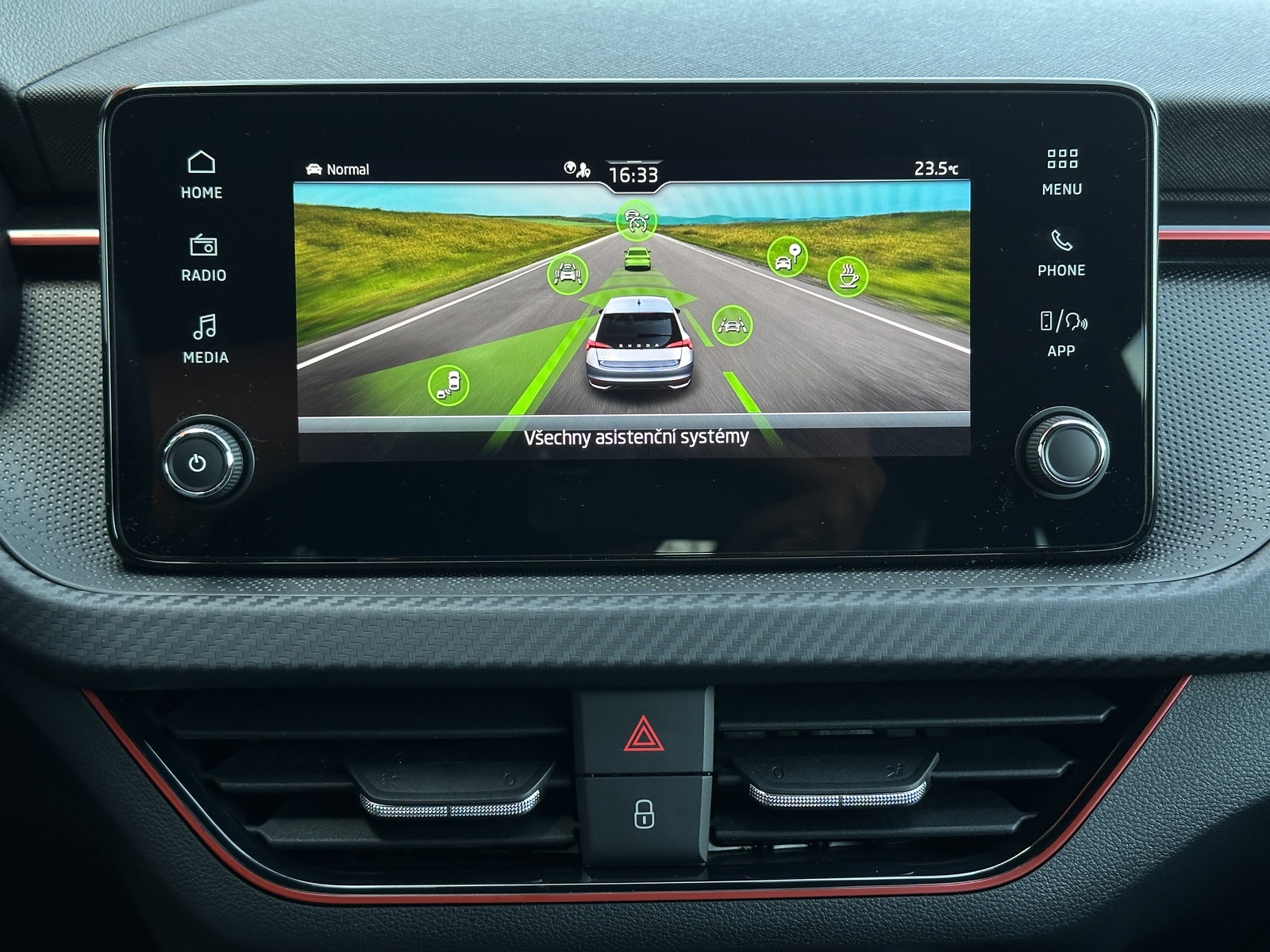 159/10585 Paket City PREMIUM - (Zadní parkovací kamera, Parkovací senzory vpředu - PDC, KESSY s alarmem, Volba jízdního režimu, Virtuální pedál - otevírání víka kufru pohybem nohy pod zavazadlovým prostorem, Virtuální Cockpit, Automatické parkování), Asistovaná jízda 1.5 PLUS - (Adaptivní tempomat - ACC, Adaptivní vedení v jízdním pruhu - Lane Assist+, Hlídání mrtvého úhlu - Side Assist), Ocelové rezervní kolo, Matrix-LED přední světlomety, Panoramatická střecha, Interiér – sportovní Monte Carlo s černou stropnicí, Černě lakované doplňky karoserie, LED zadní světla s animovanými směrovkami, Vyhřívaný sportovní multifunkční kožený volant – pro DSG s pádly pod volantem, Sportovní kryty pedálů, Dekorativní prahové lišty, KESSY – bezklíčové odemykání a startování, Volba jízdních režimů, Zadní parkovací kamera , Parkovací senzory vpředu a vzadu – PDC, Mlhové světlomety, Elektricky sklopná vnější zrcátka s automatickým stmíváním, 2x USB-C vzadu, Dešťový senzor, Světelný senzor, Vnitřní zpětné zrcátko s automatickým stmíváním, Bezdrátové nabíjení pro Smartphone, Zadní loketní opěrka, Loketní opěrka s Jumbo Boxem vpředu, Dvouzónová automatická klimatizace Climatronic, Vyhřívaná přední sedadla, Bederní opěrky na předních sedadlech, Výškově nastavitelná sedadla řidiče a spolujezdce, Kožená hlavice řadicí páky a madlo ruční brzdy, Vyhřívané trysky ostřikovačů čelního skla, Elektrické ovládání oken vpředu i vzadu, 12V zásuvka vpředu a vzadu, 2x USB-C, 8 reproduktorů, Bluetooth, 4 reproduktory, DAB, Bezdrátový Smartlink - zrcadlení aplikací z mobilního telefonu na Infotainment vozu, Front Assist – varování a brzdění při hrozící kolizi s vozidly, chodci a cyklisty, Rozpoznávání dopravních značek, Upozornění na únavu řidiče, Asistent rozjezdu do kopce, Virtualní Cockpit, 6x airbag, 3x Isofix a Top Tether, Deaktivace airbagu spolujezdce, Nouzový volání SOS eCall+, Potah sedadel – látka, Sunset – zatmavená zadní okna, Servisní kniha + dokumentace Škoda Auto, Možnost odpočtu DPH 21%, Skladem - ihned k odběru.